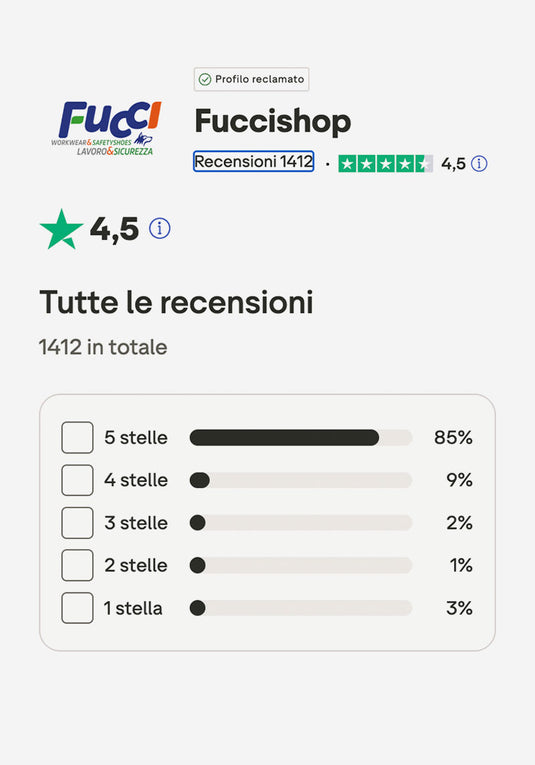 Fuccishop è un'azienda italiana leader nell'antinfortunistica, abbigliamento professionale e fai-da-te. Con oltre trent'anni di esperienza e una sede fisica ad Andria dal 2018, oggi è un punto di riferimento e-commerce per privati e imprese.