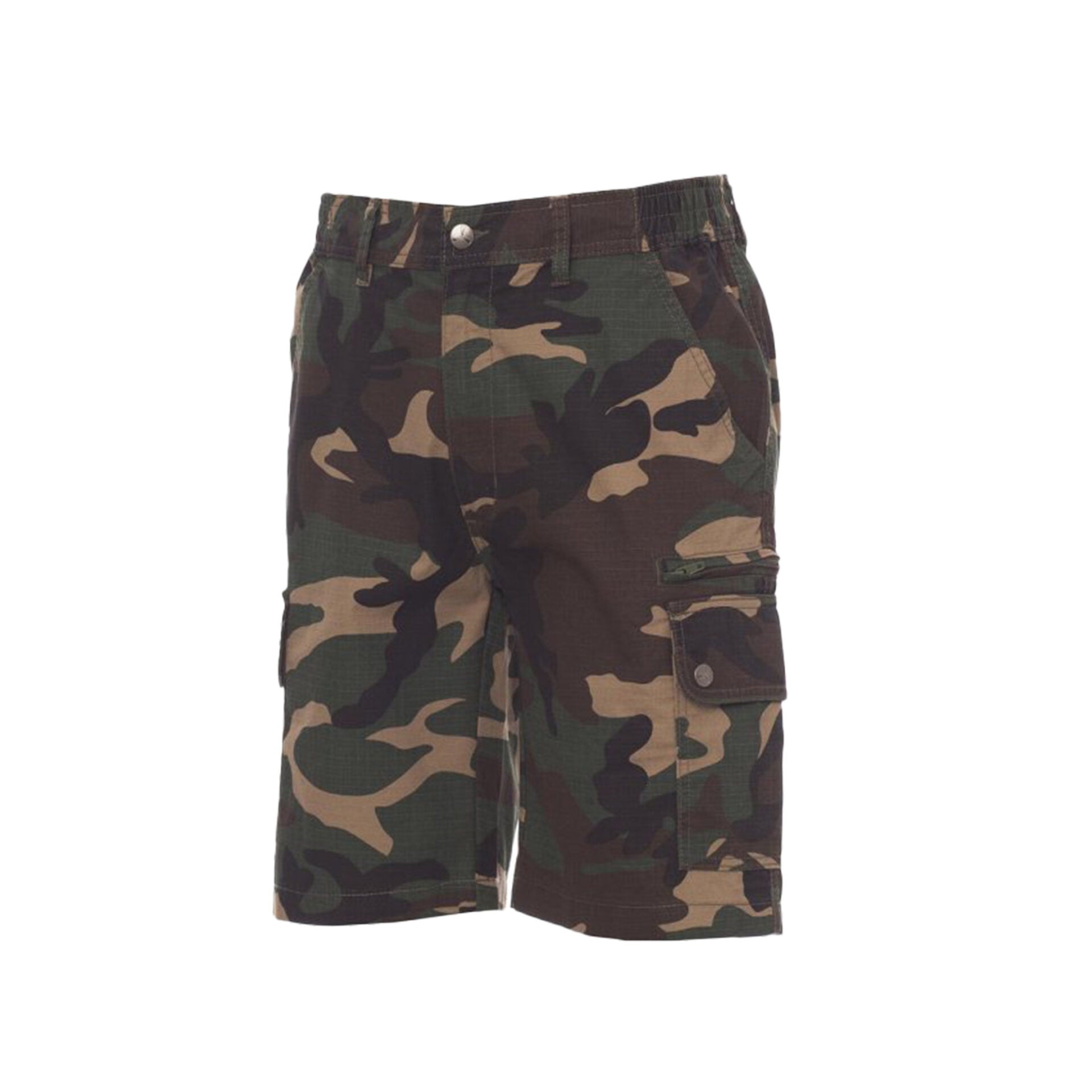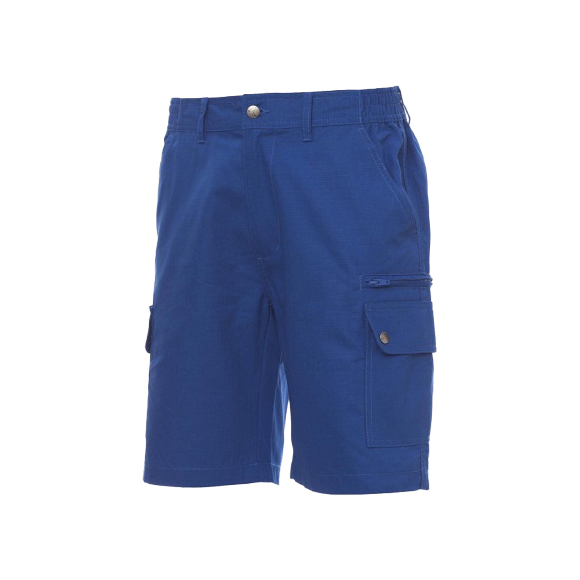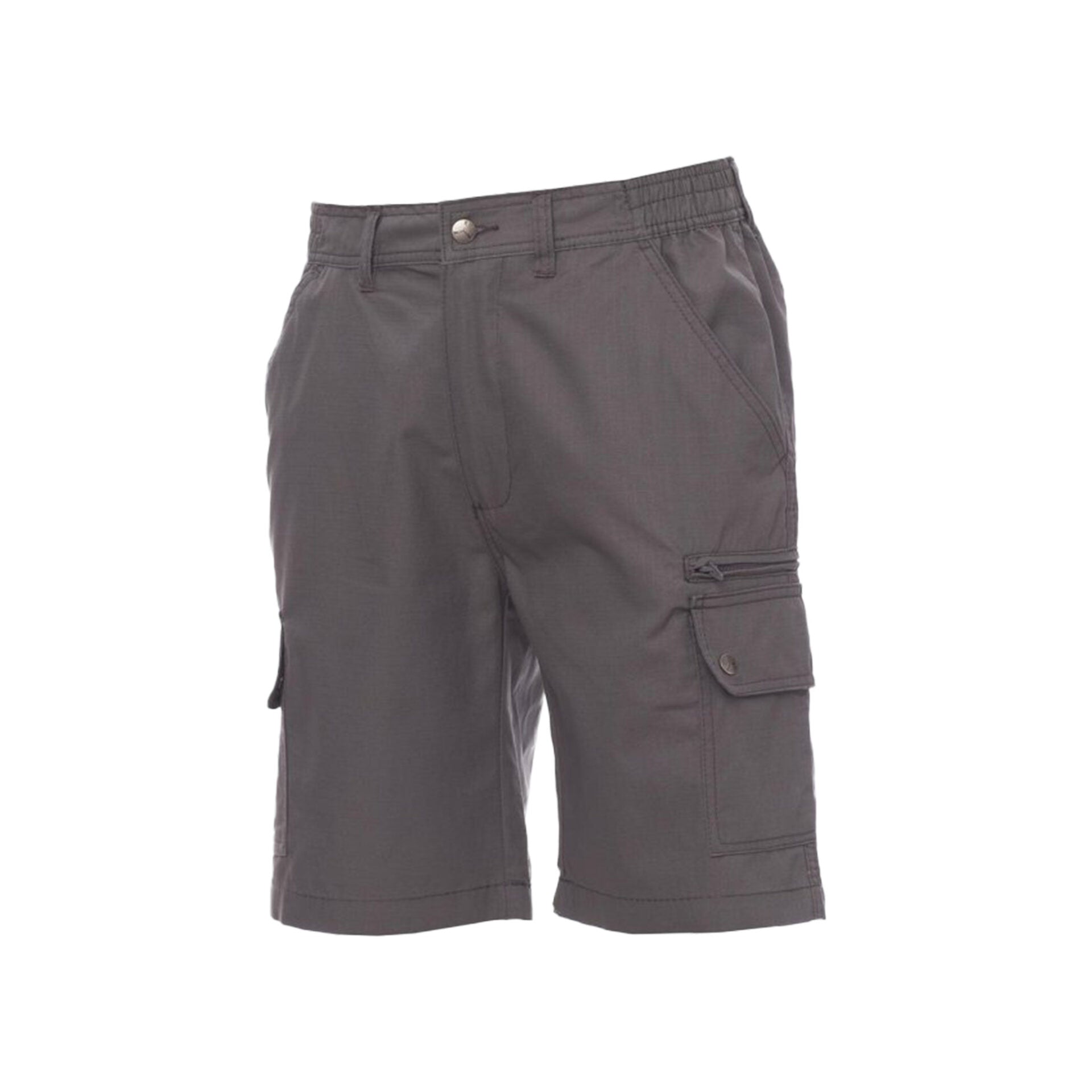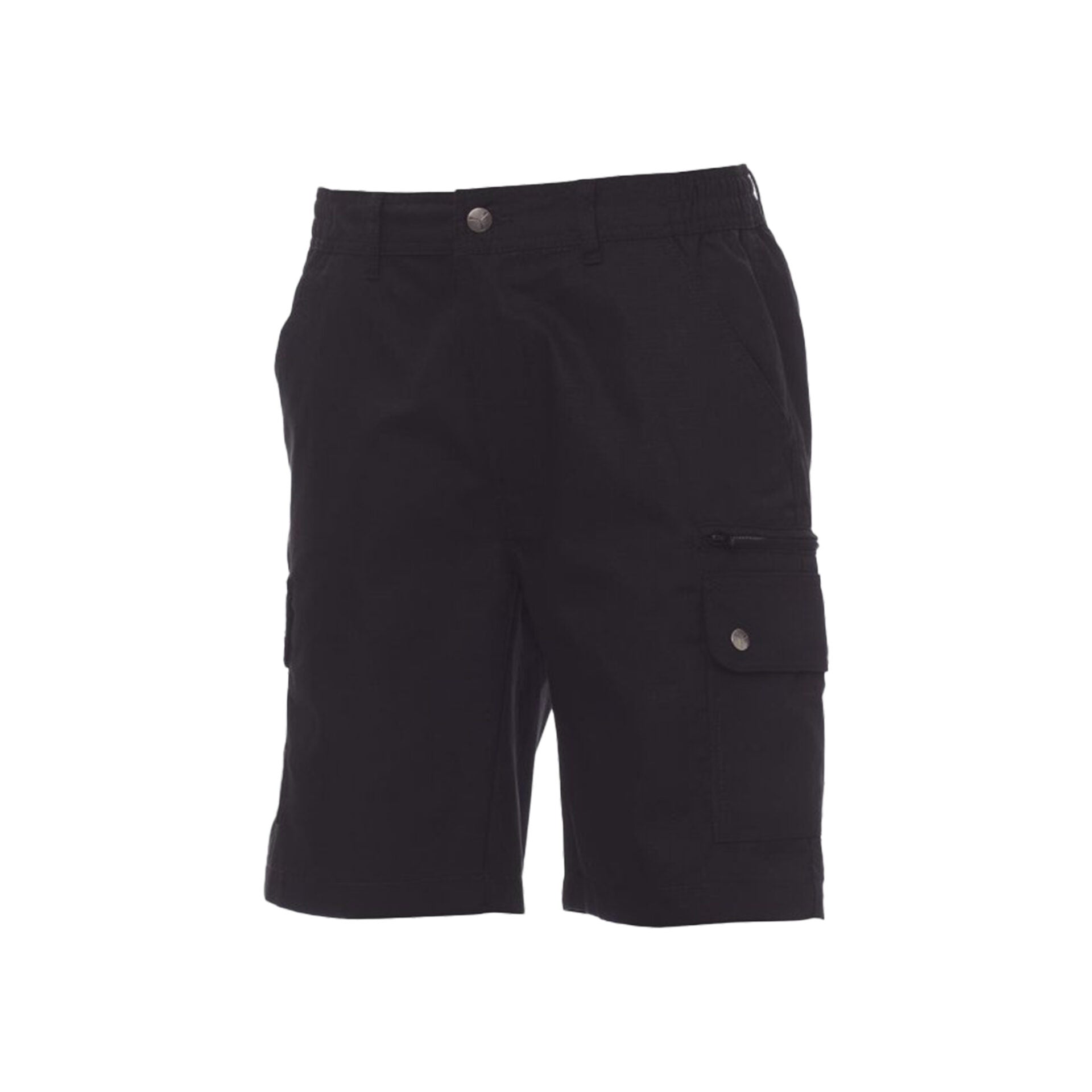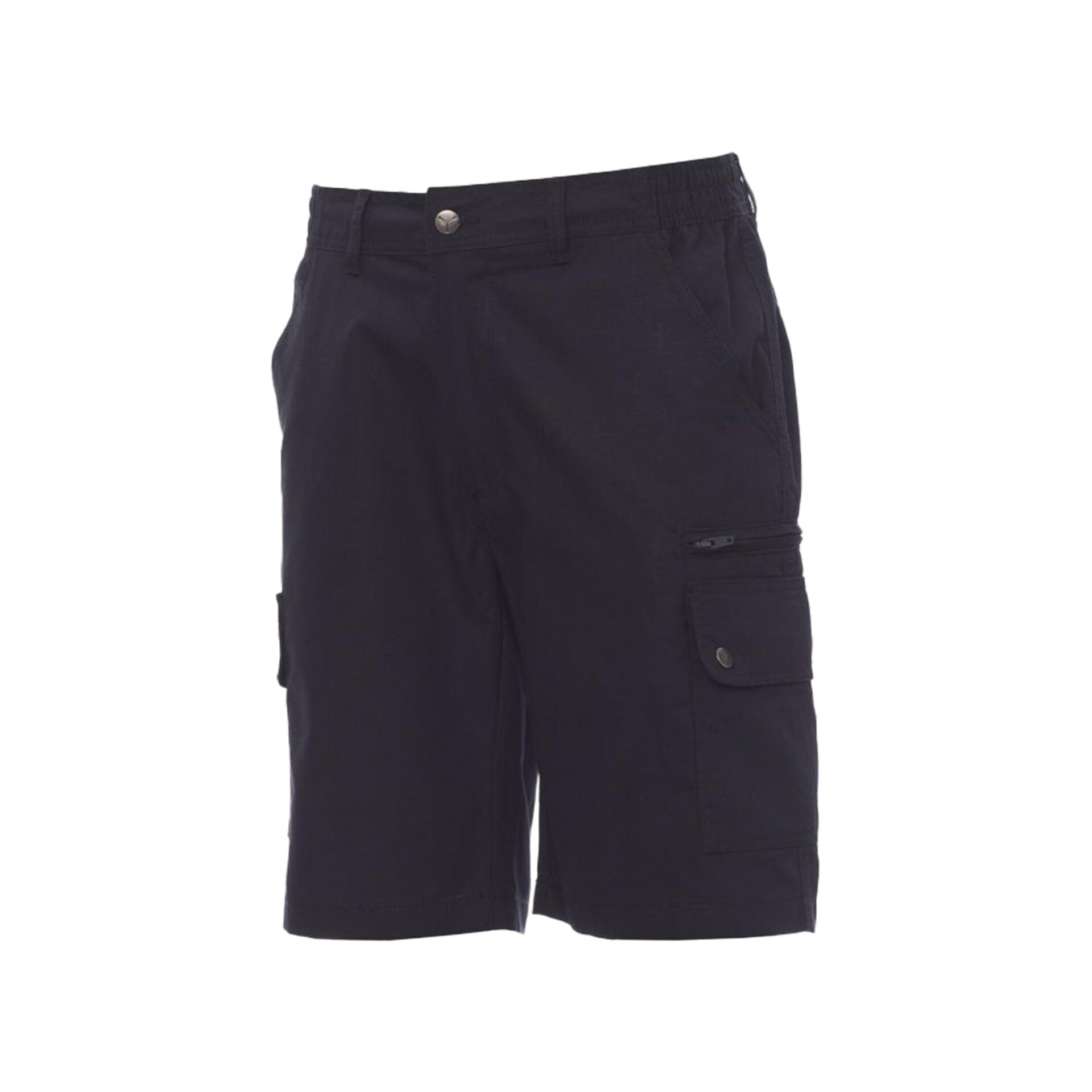 Bermuda da uomo dal taglio funzionale, con elastici laterali e passanti in vita per una vestibilità comoda. Chiusura con zip e bottone in metallo. Dotati di numerose tasche pratiche: due tasche anteriori a taglio classico, due laterali con patta e bottoni automatici, una tasca con zip sul lato sinistro, un porta metro a scomparsa sul lato destro e due tasche posteriori a filo con asola e bottone.