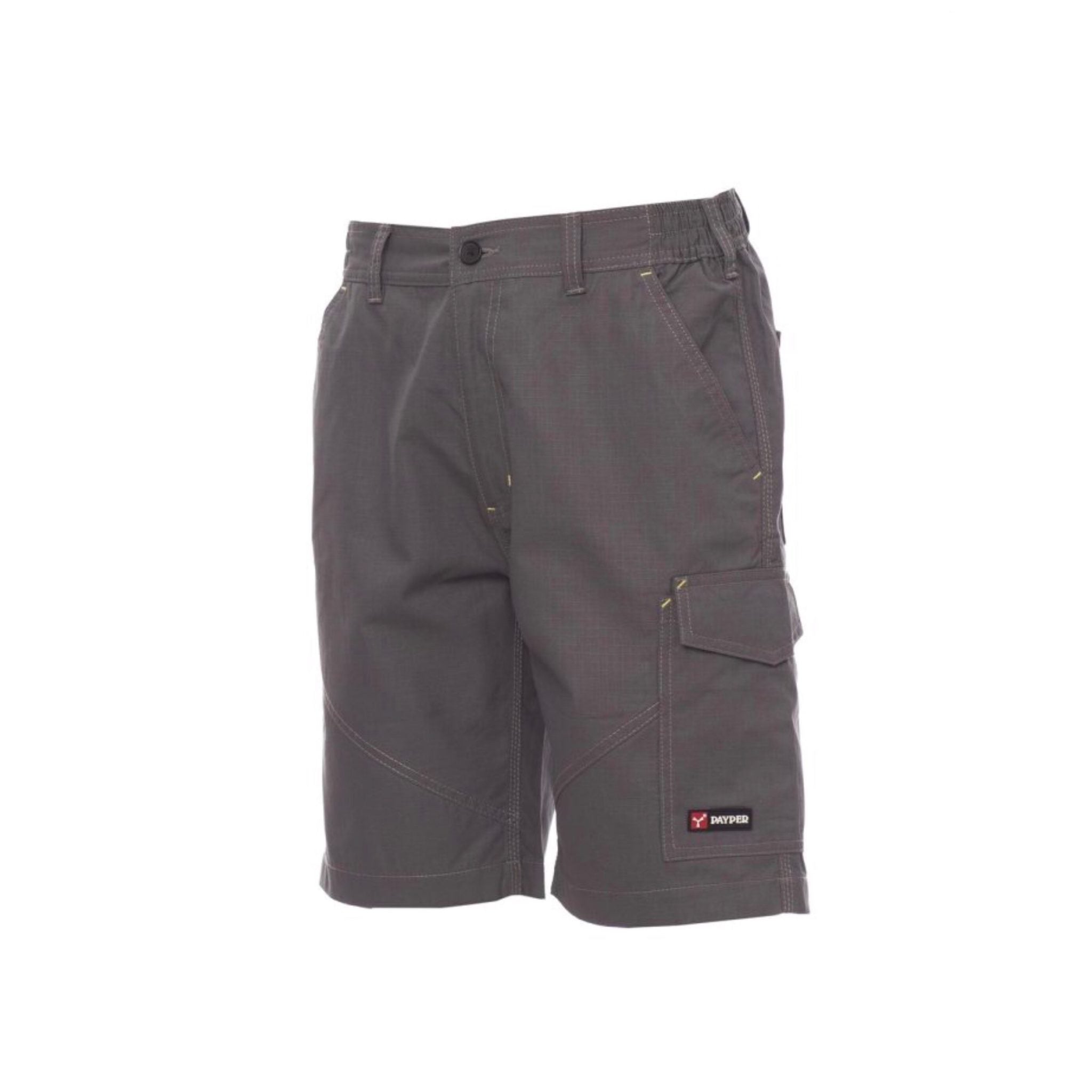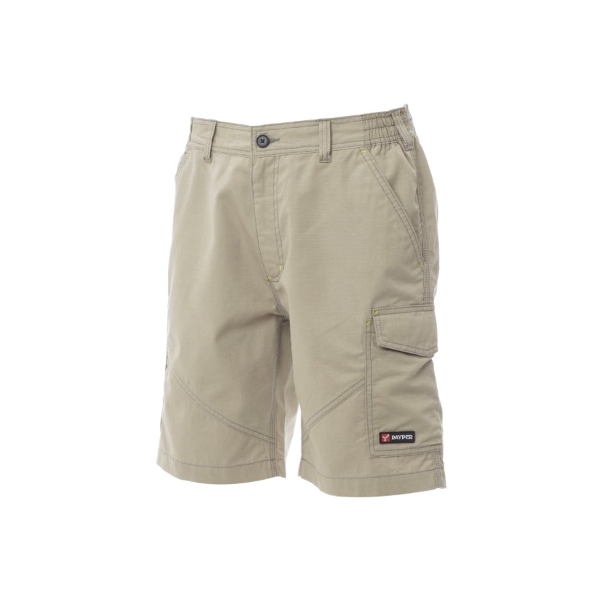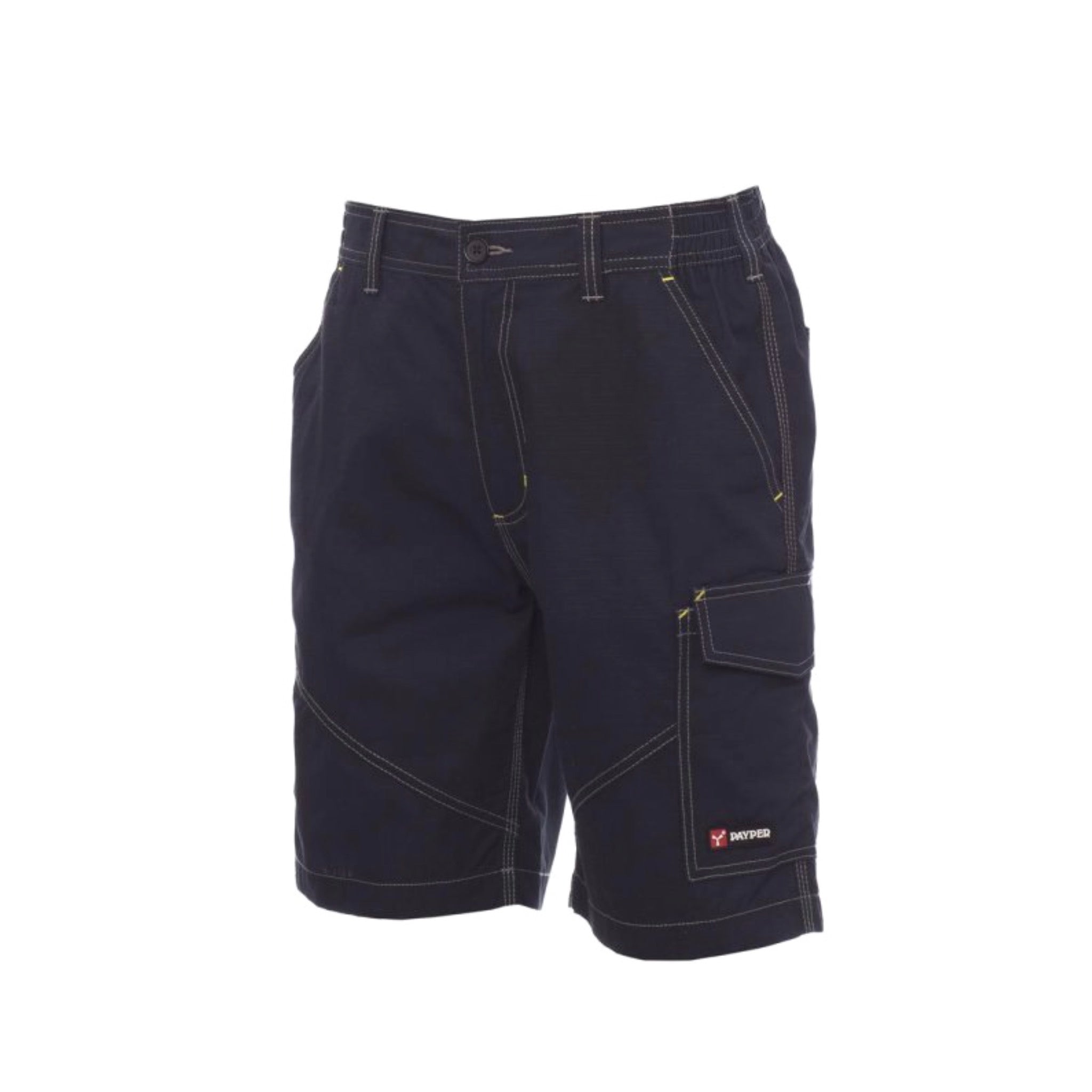 Bermuda da lavoro per uomo con elastici laterali e passanti in vita per un'ottima vestibilità. Chiusura con zip e bottone in plastica. Dotato di inserti e impunture a contrasto, bande reflex su tasca posteriore e triple cuciture per una maggiore resistenza.