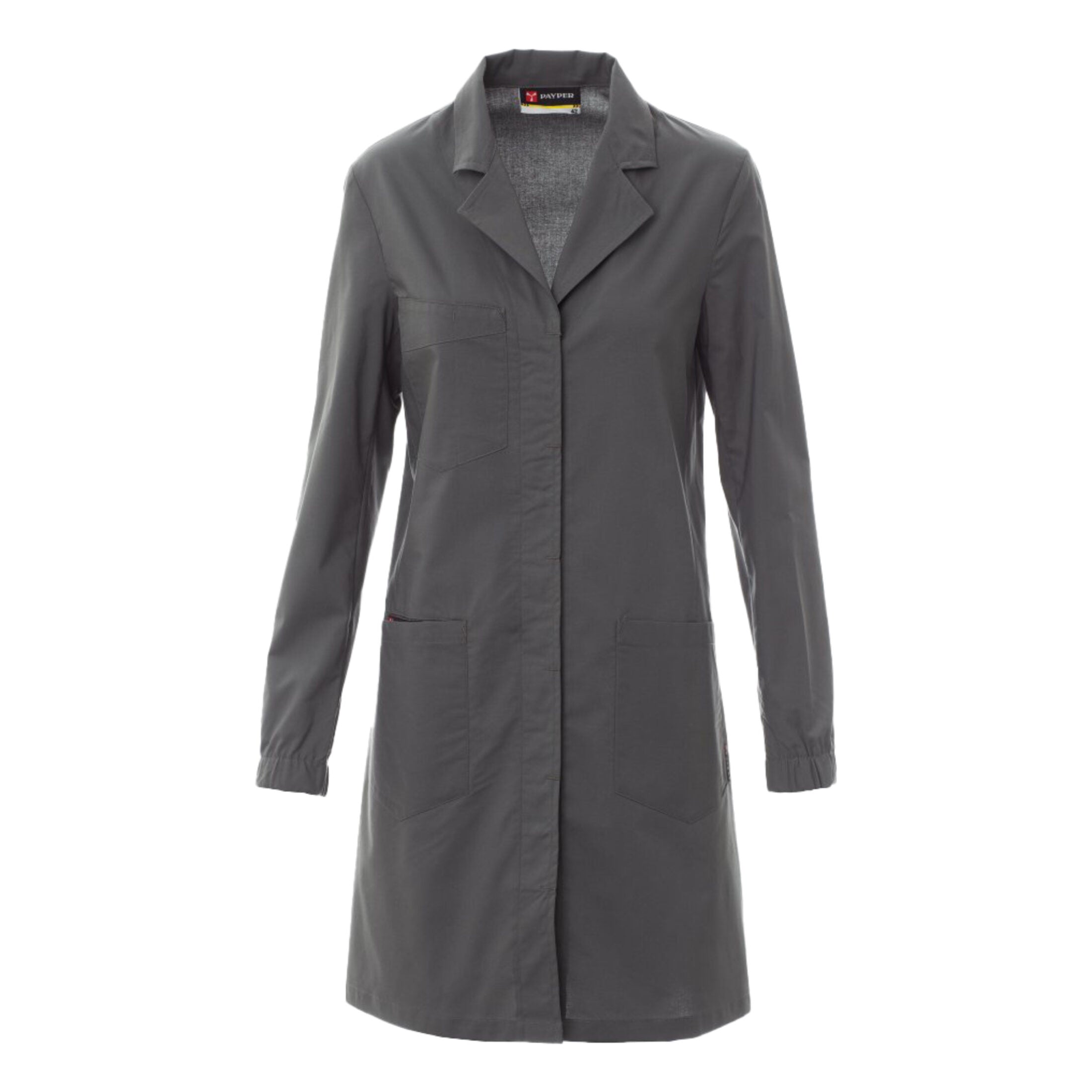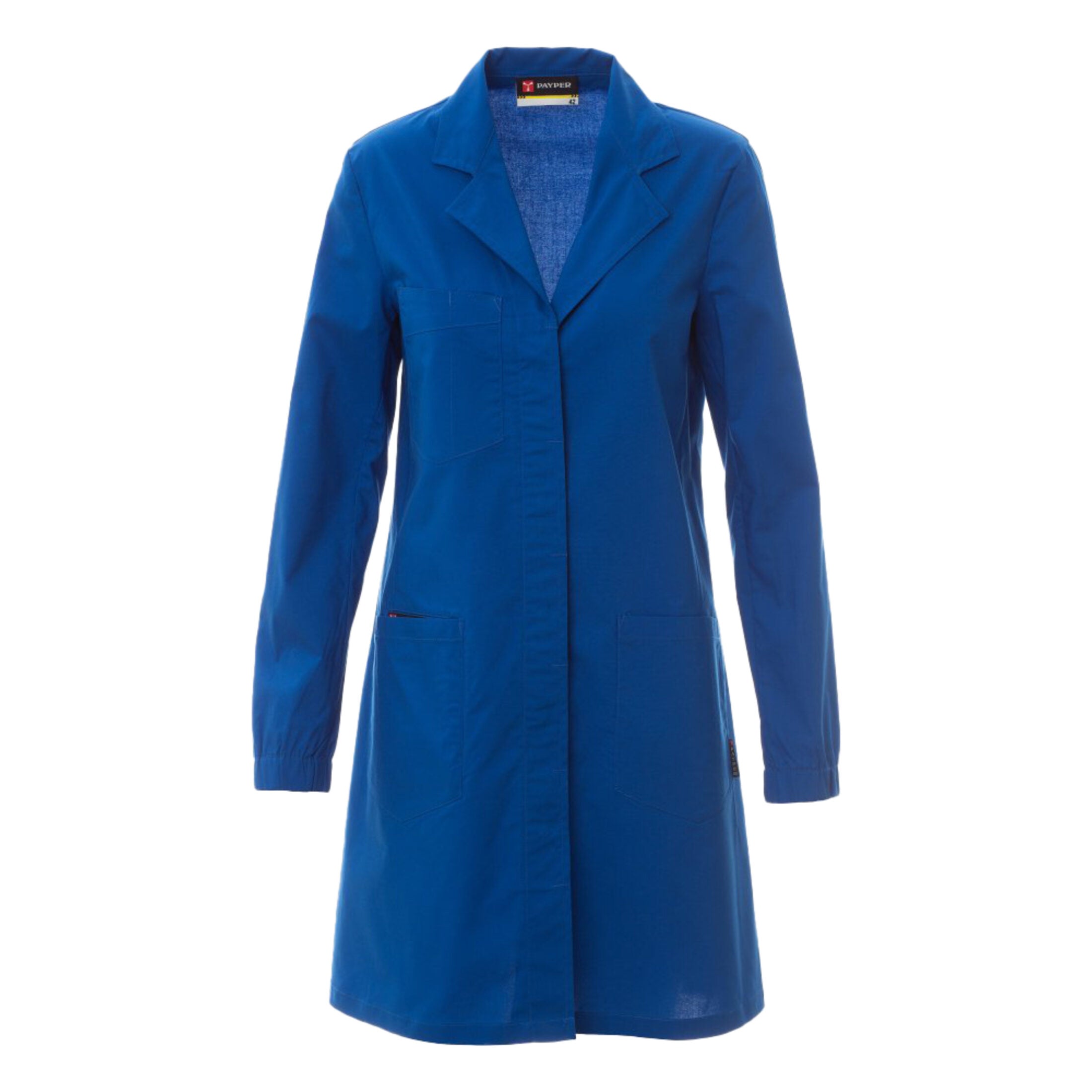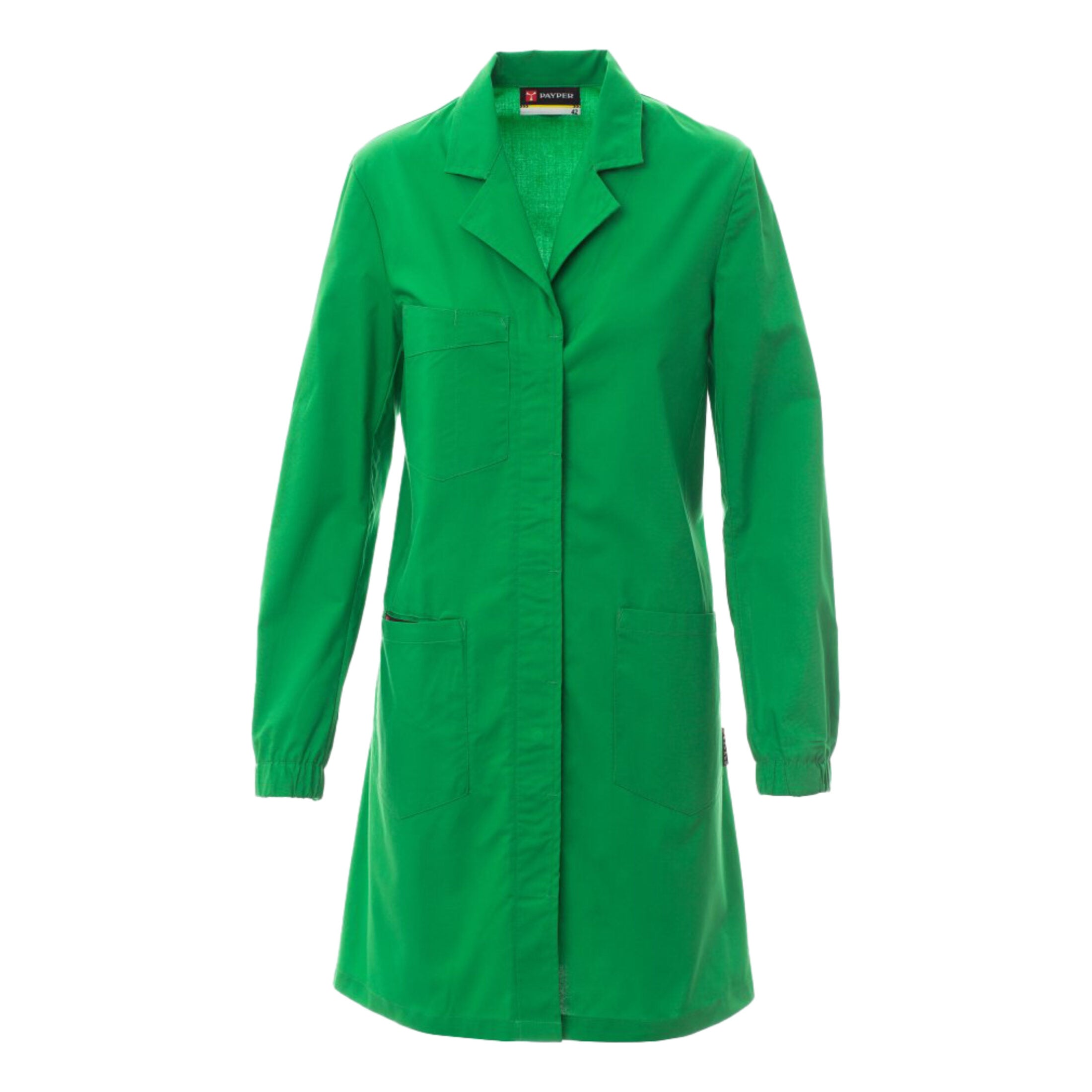 Camice da donna a maniche lunghe, ideale per ambienti professionali come laboratori, ambulatori, studi medici ed estetici. Realizzato in tessuto resistente e confortevole, assicura funzionalità e libertà di movimento durante tutta la giornata lavorativa.