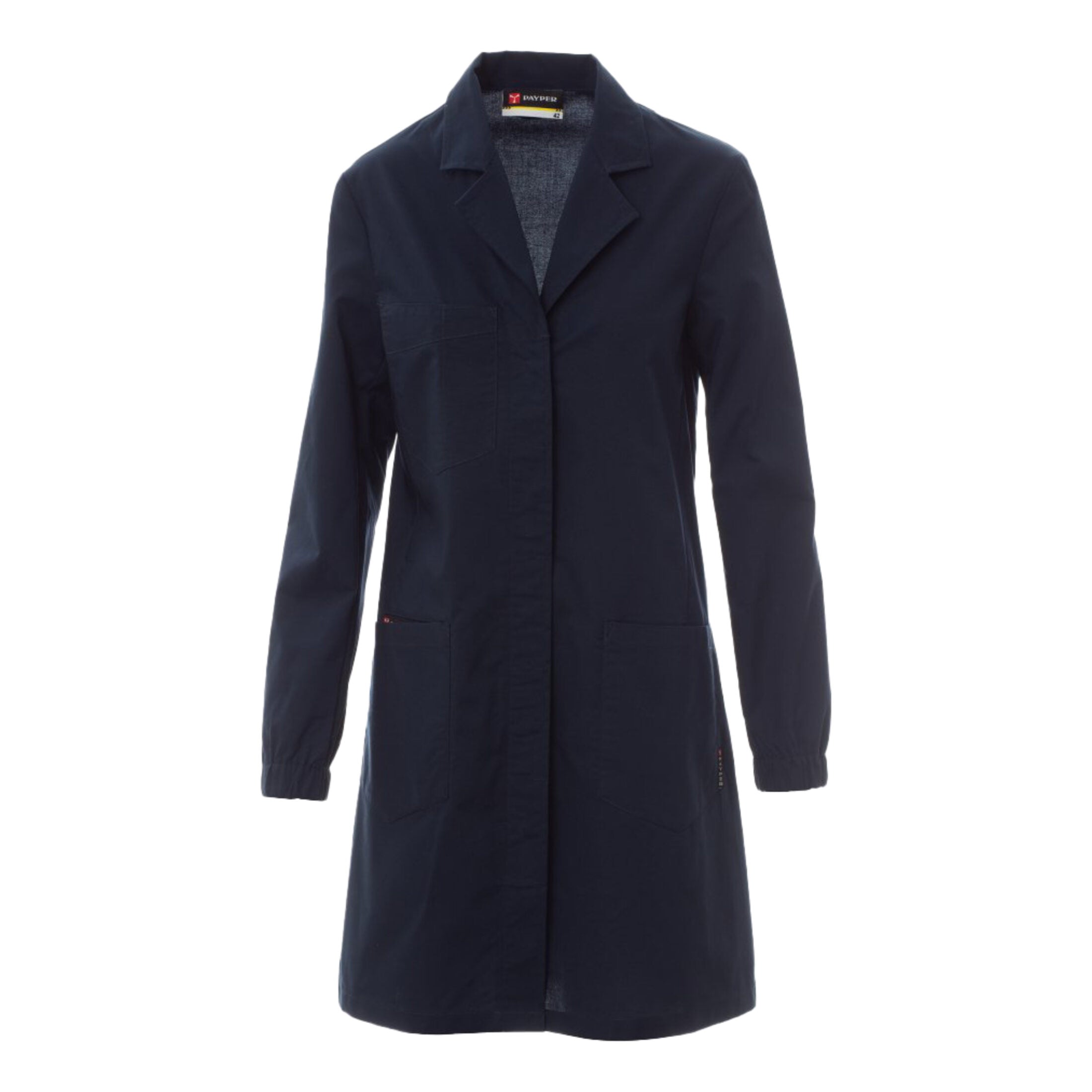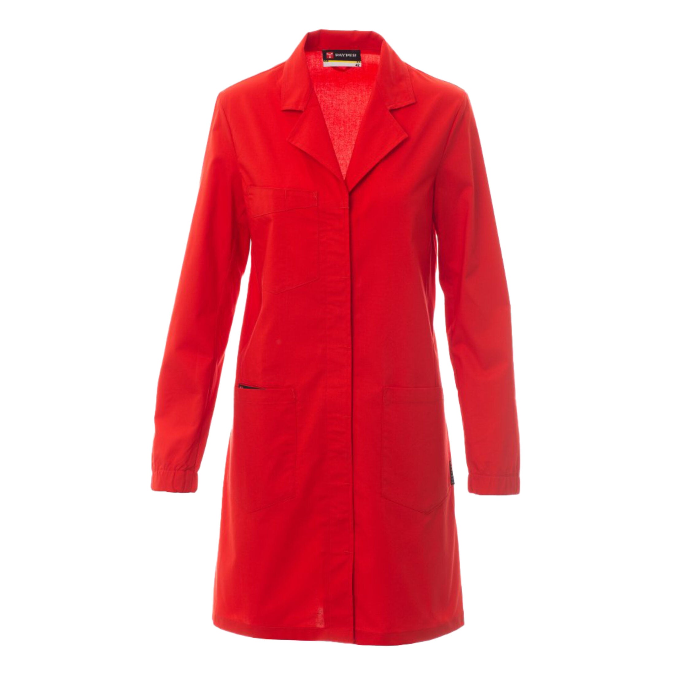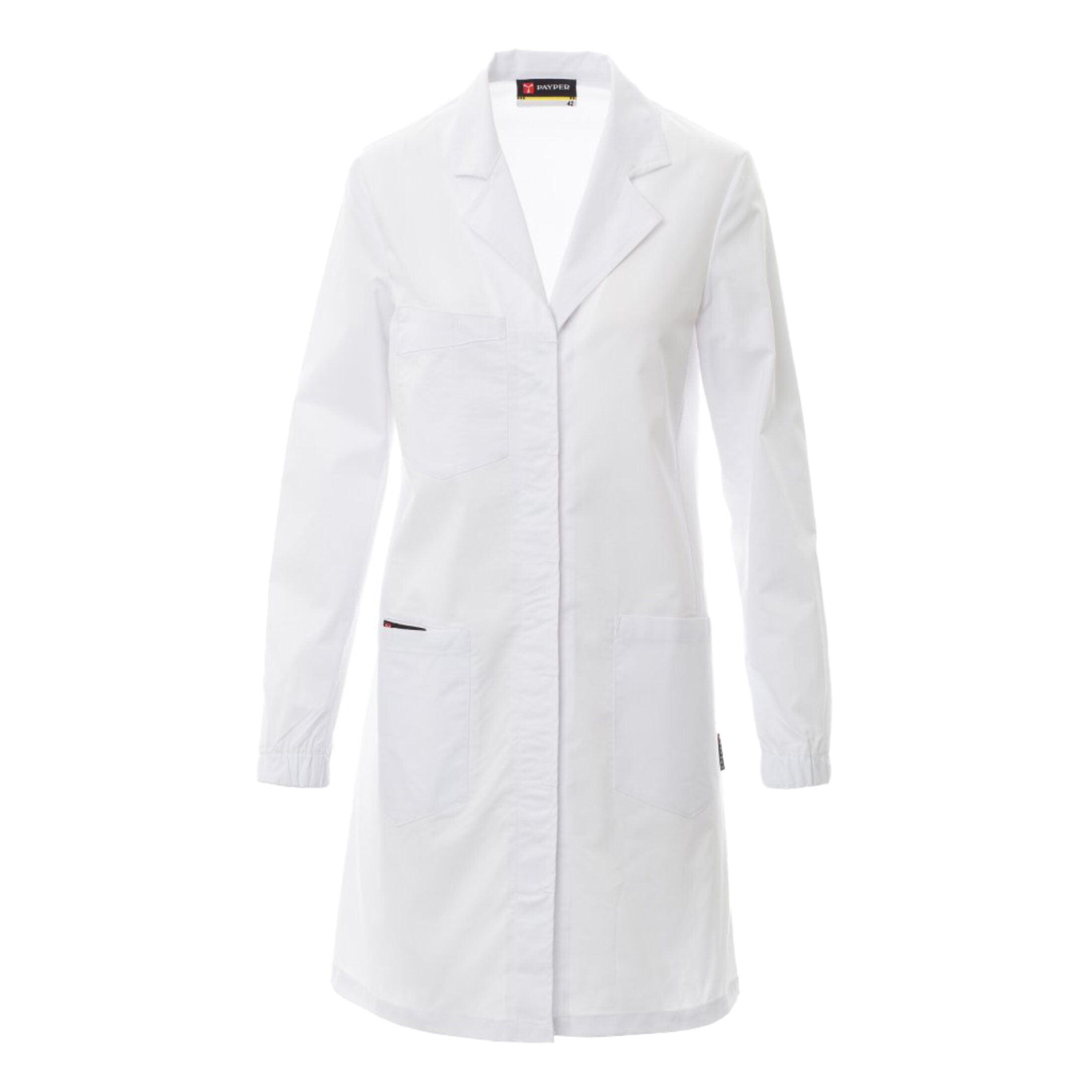 Camice da donna a maniche lunghe, ideale per ambienti professionali come laboratori, ambulatori, studi medici ed estetici. Realizzato in tessuto resistente e confortevole, assicura funzionalità e libertà di movimento durante tutta la giornata lavorativa.