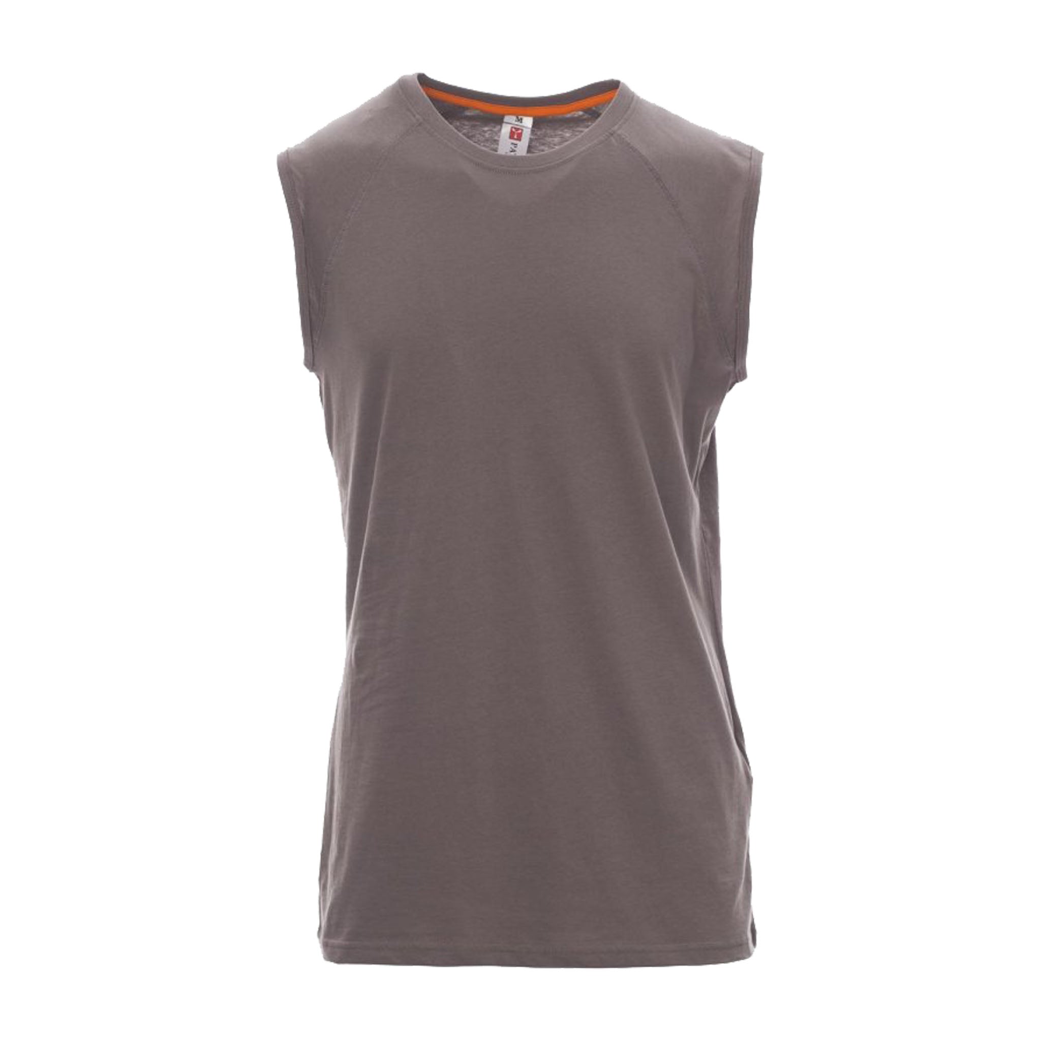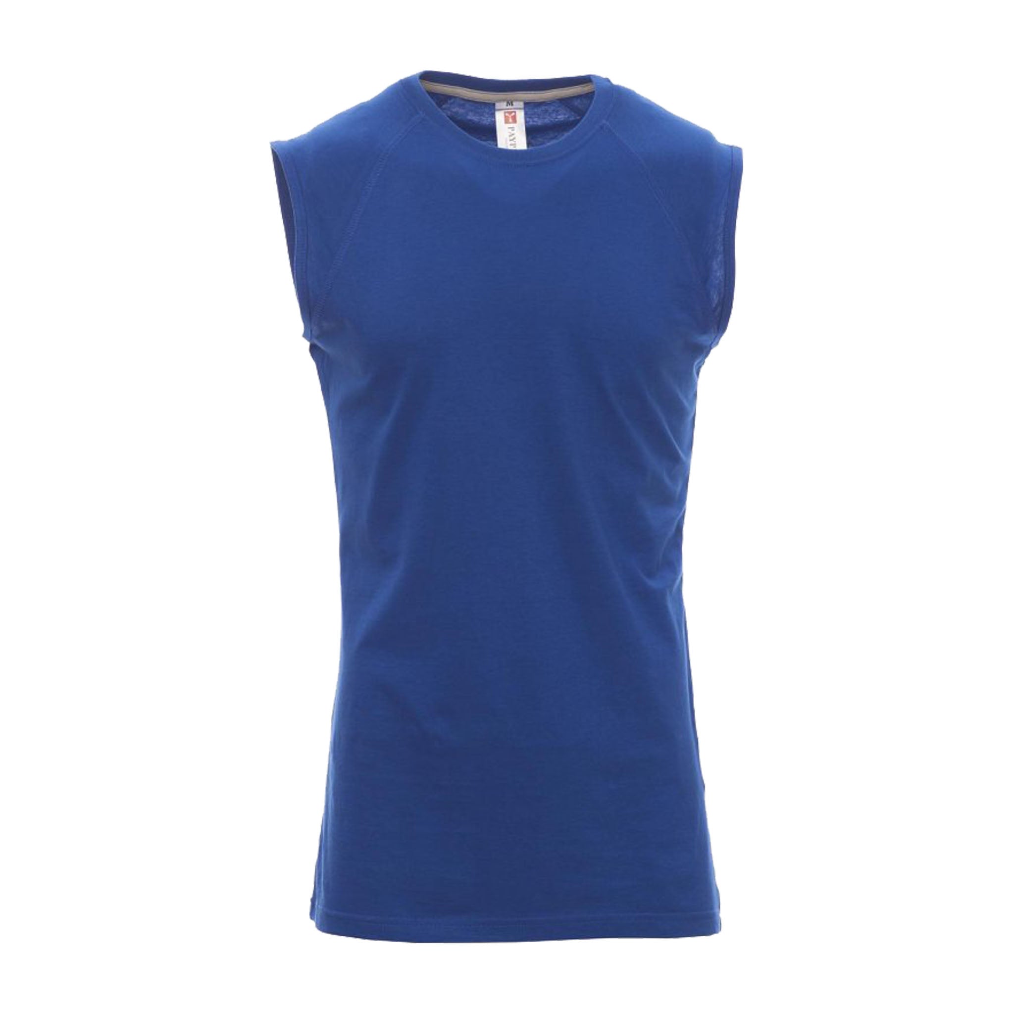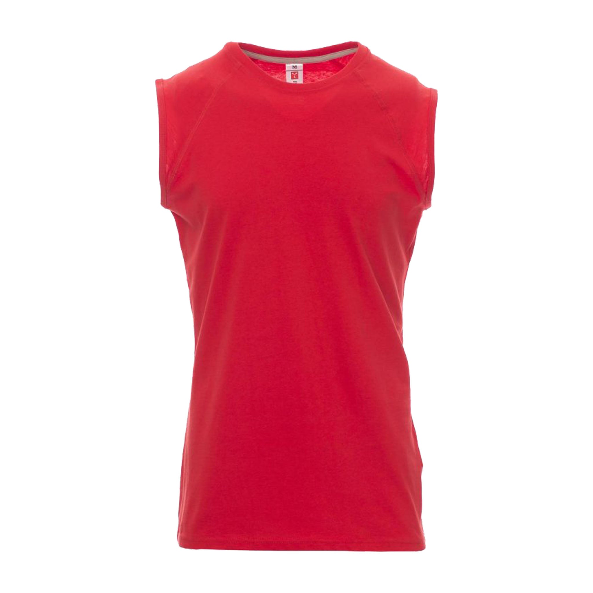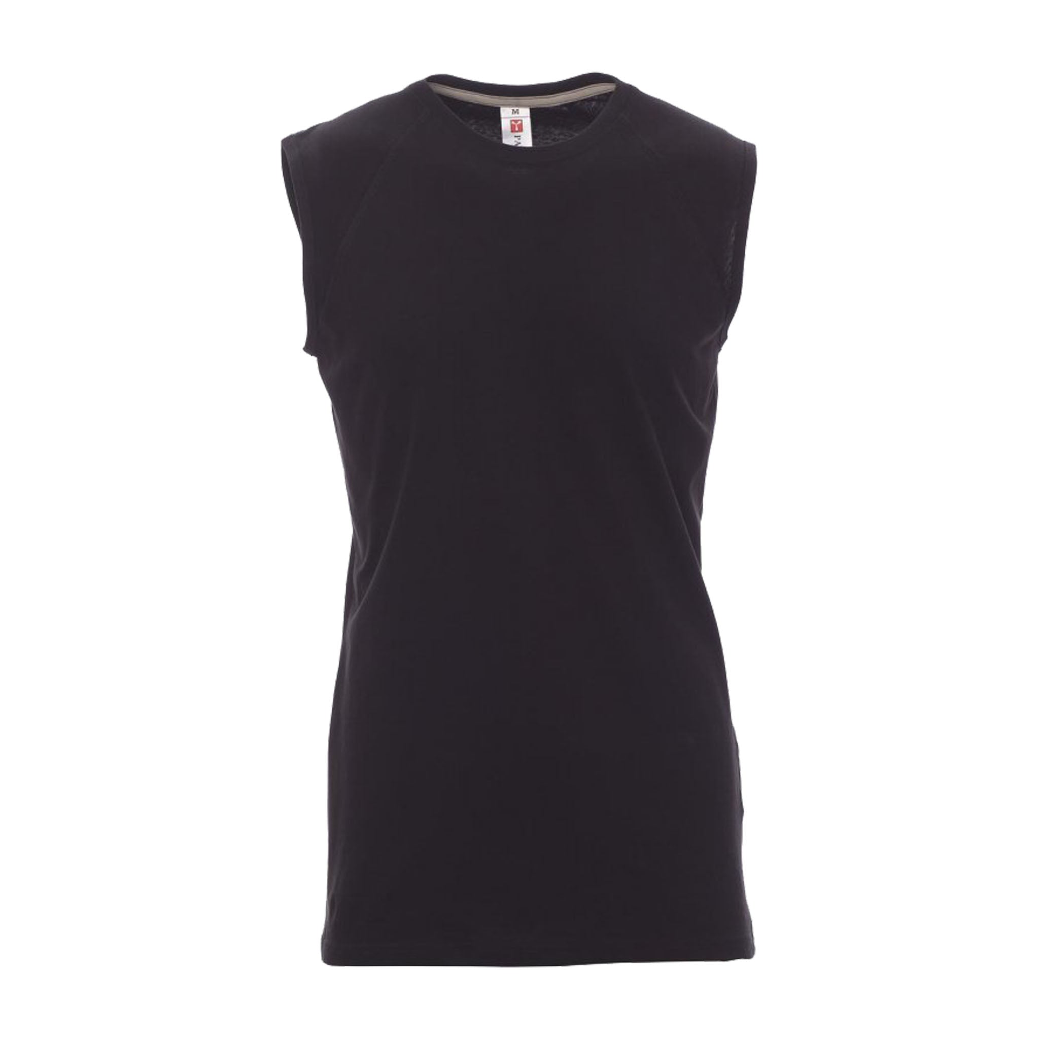 Canotta da uomo girocollo con manica raglan. Colletto in costina misto spandex da 1,5 cm con cucitura ribattuta frontale. Dotata di nastro di rinforzo da spalla a spalla in colore a contrasto visibile nel colletto e cuciture stretch per garantire comfort e resistenza.