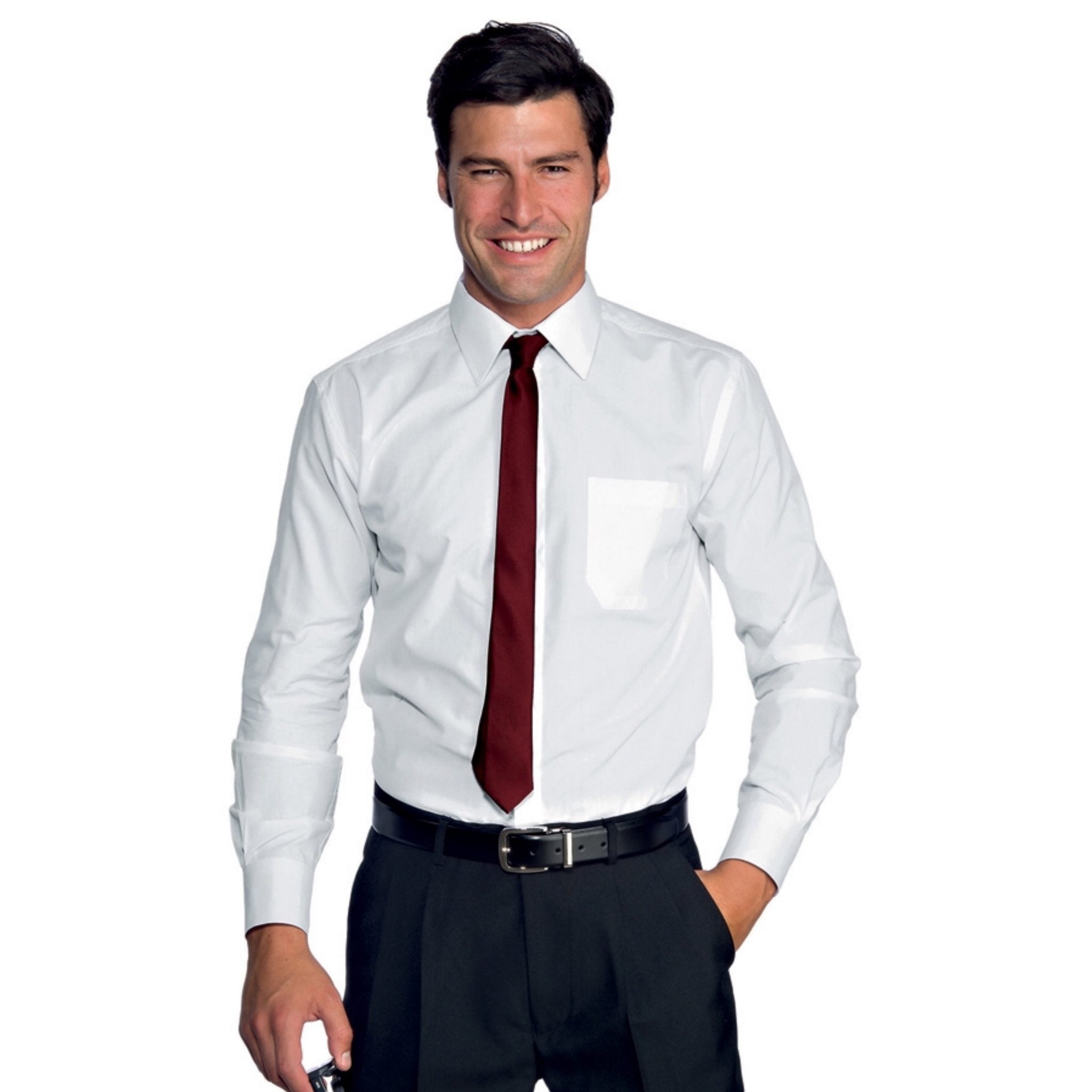 Cravatta stretta Isacco, elegante accessorio unisex pensato per completare le divise professionali in ambienti raffinati. Realizzata in 100% poliestere, resistente e lavabile a 30°C, è perfetta per personale di sala, bar e strutture ricettive.
