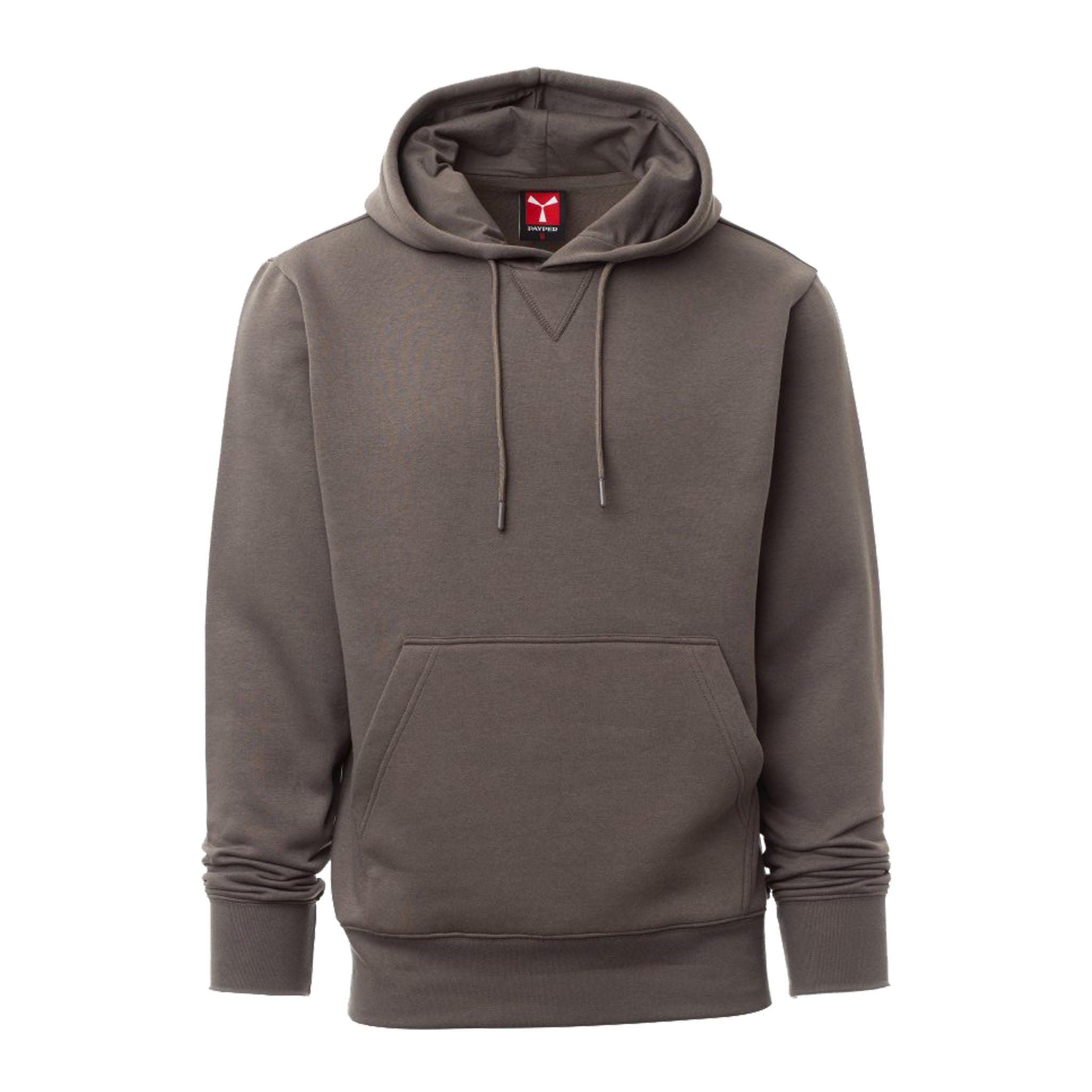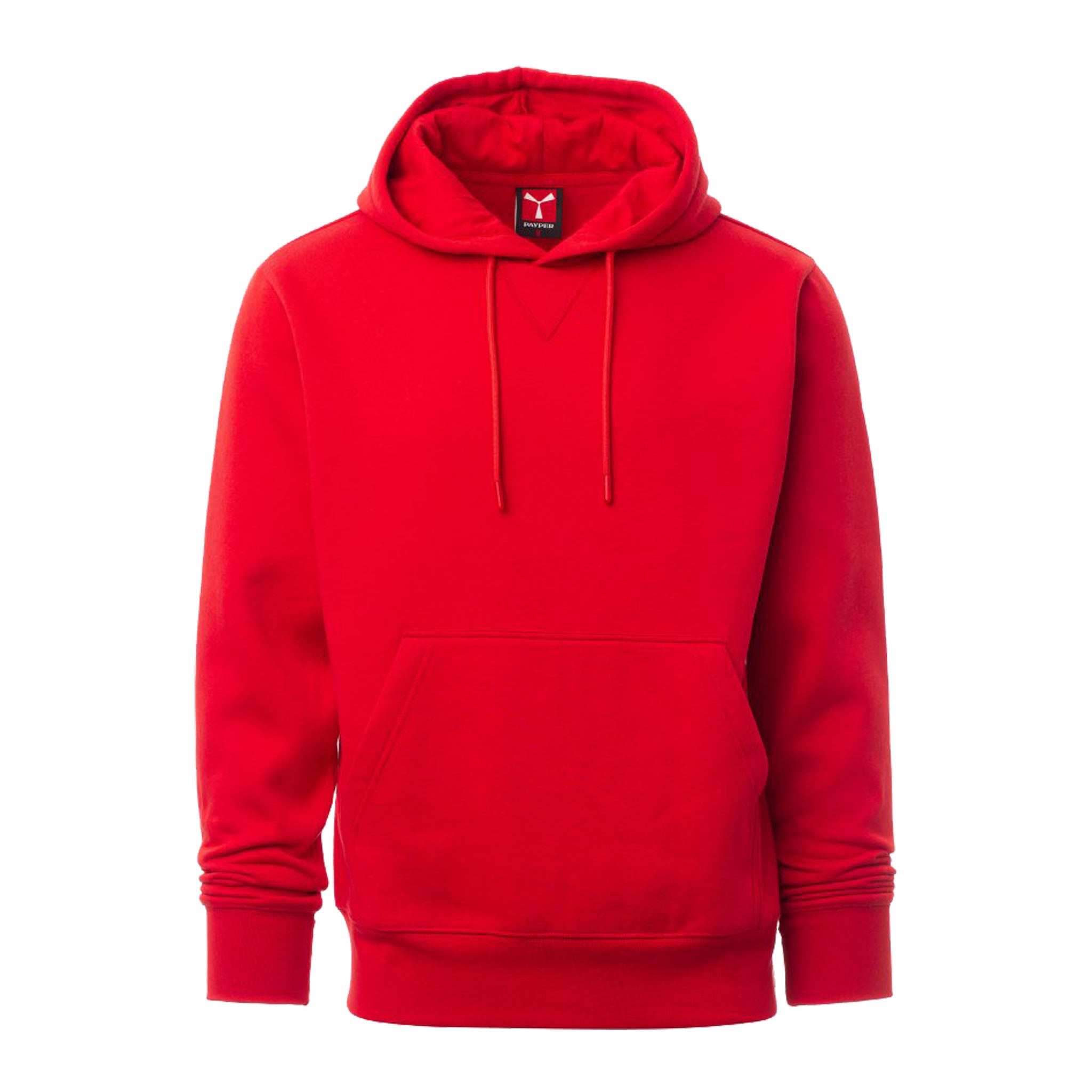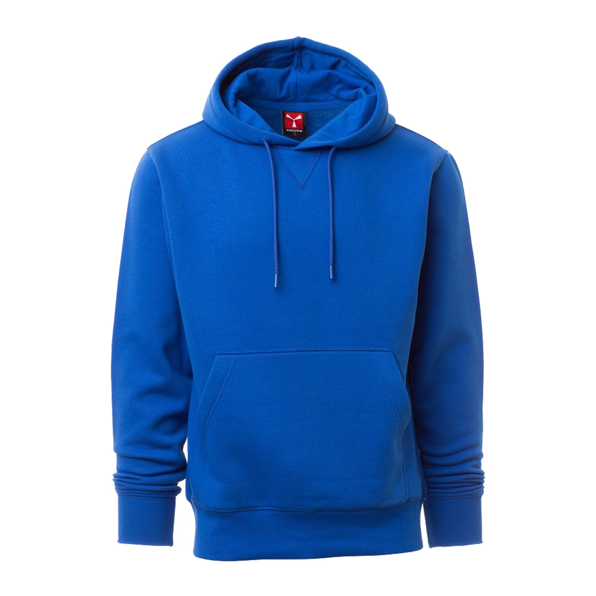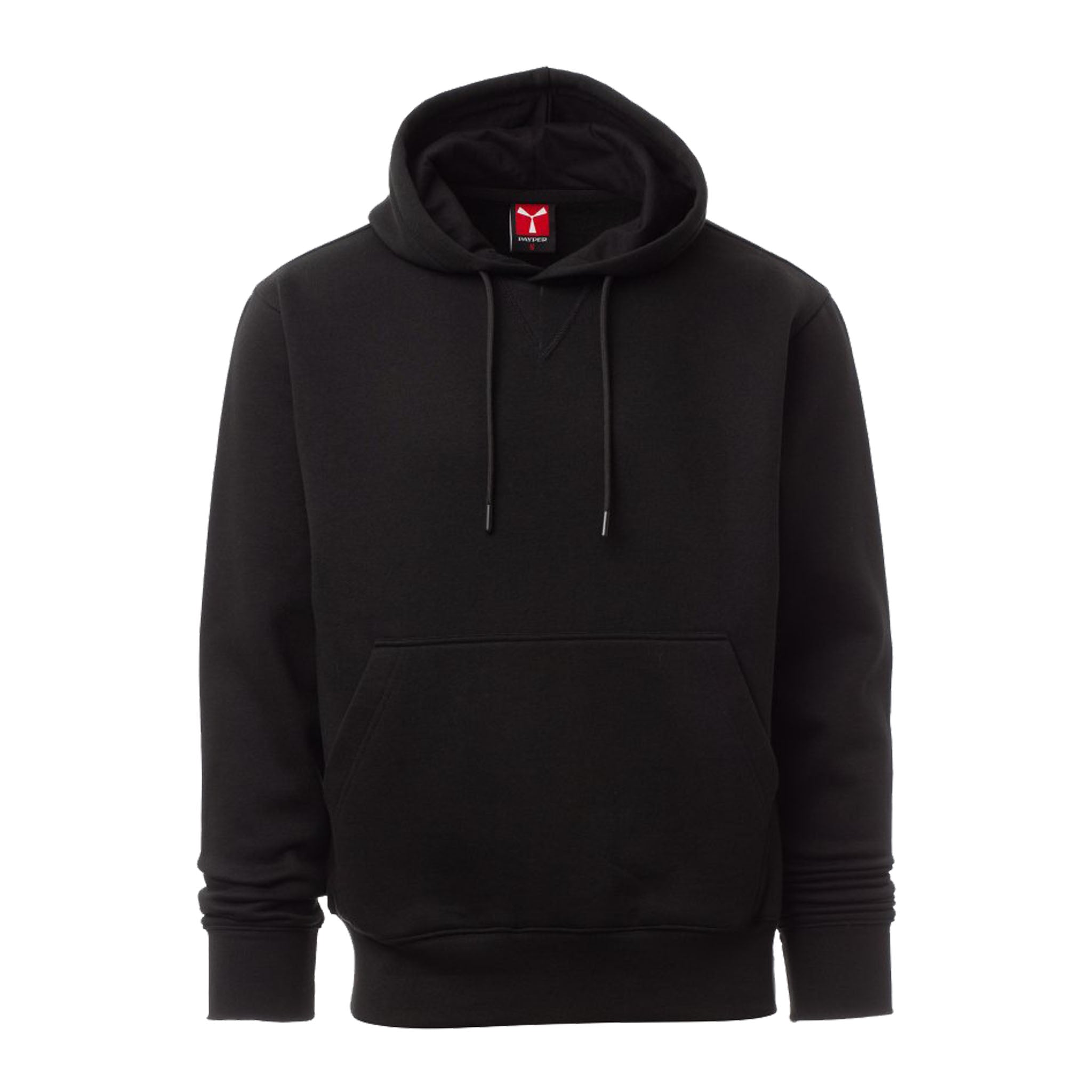 Felpa comoda e resistente, ideale per uso professionale in ambienti industriali. Dotata di cappuccio con coulisse in tinta, cucitura estetica a V al collo, maniche a giro, tasca a marsupio e finiture in costina elasticizzata su polsi e fondo. Rinforzata internamente con nastro in tinta sul collo.