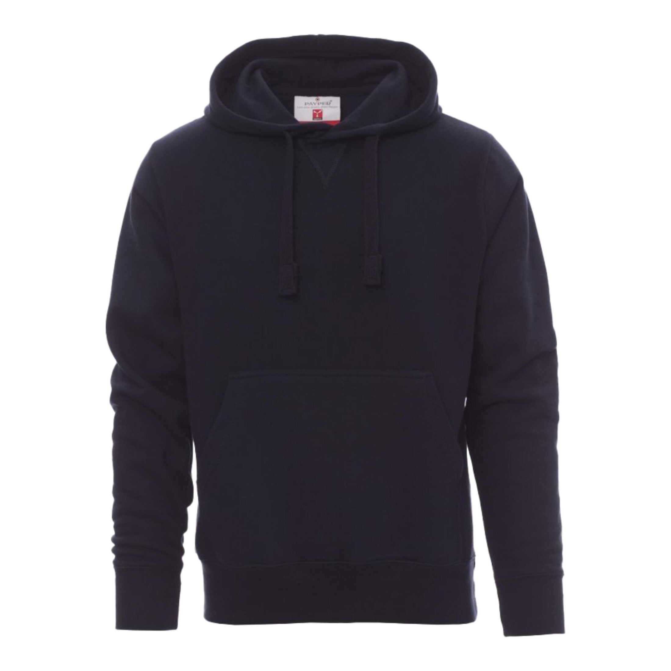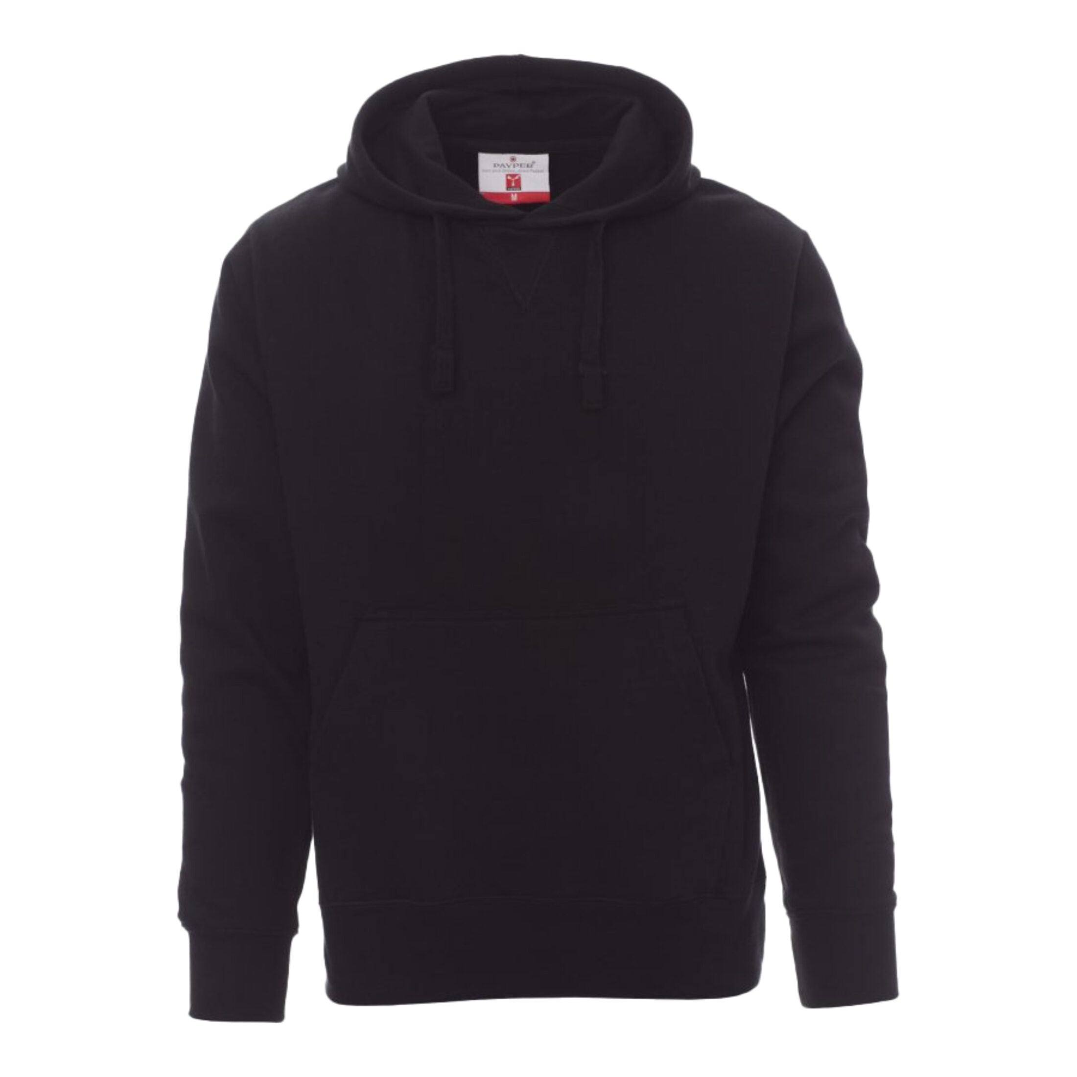 Felpa da uomo con cappuccio regolabile tramite coulisse in tinta e cucitura estetica a V al collo. Dotata di tasche a marsupio, manica a giro, polsini e fondo in costina elasticizzata per un maggiore comfort e vestibilità. Nastro interno collo in tinta e cuciture rinforzate per una maggiore durata nel tempo.