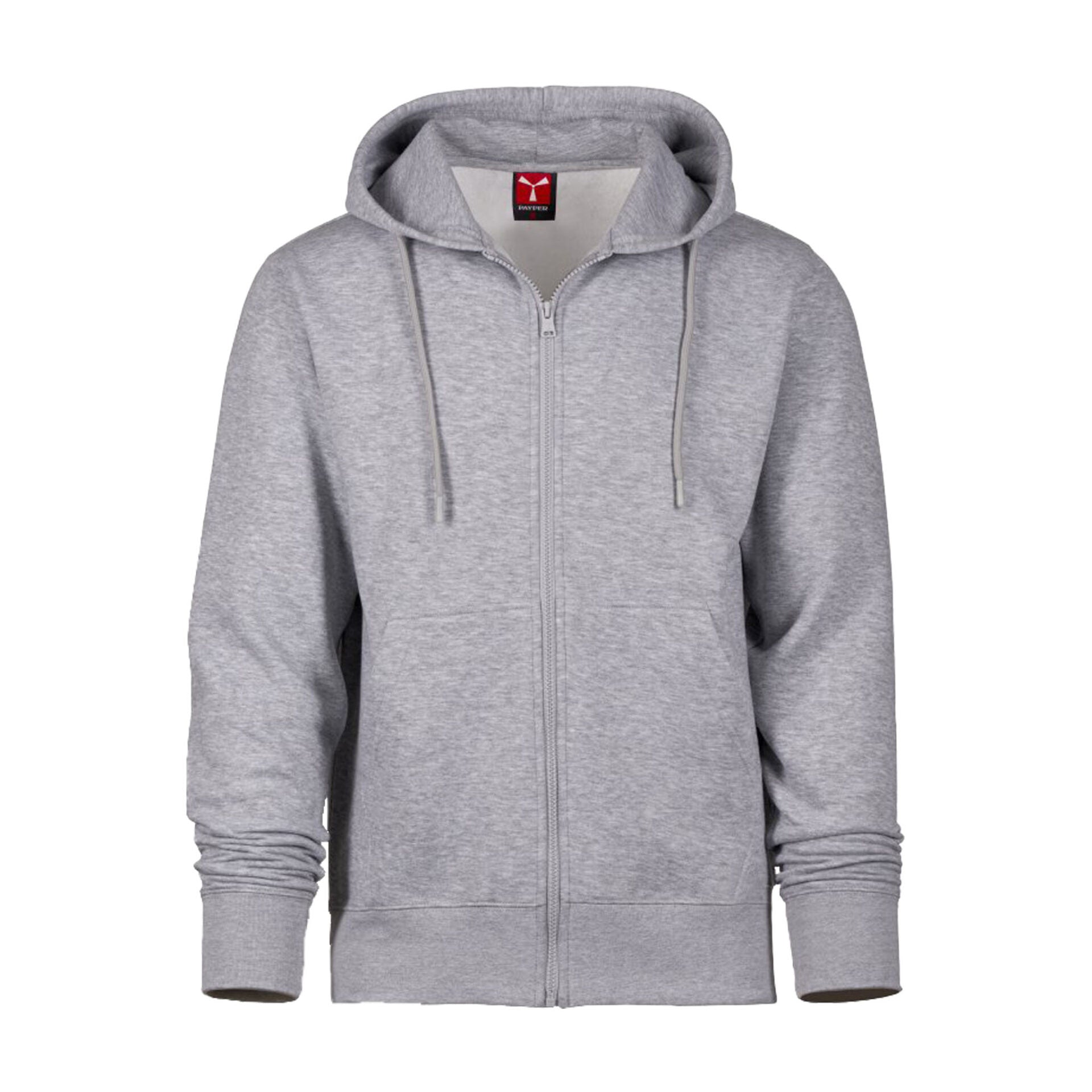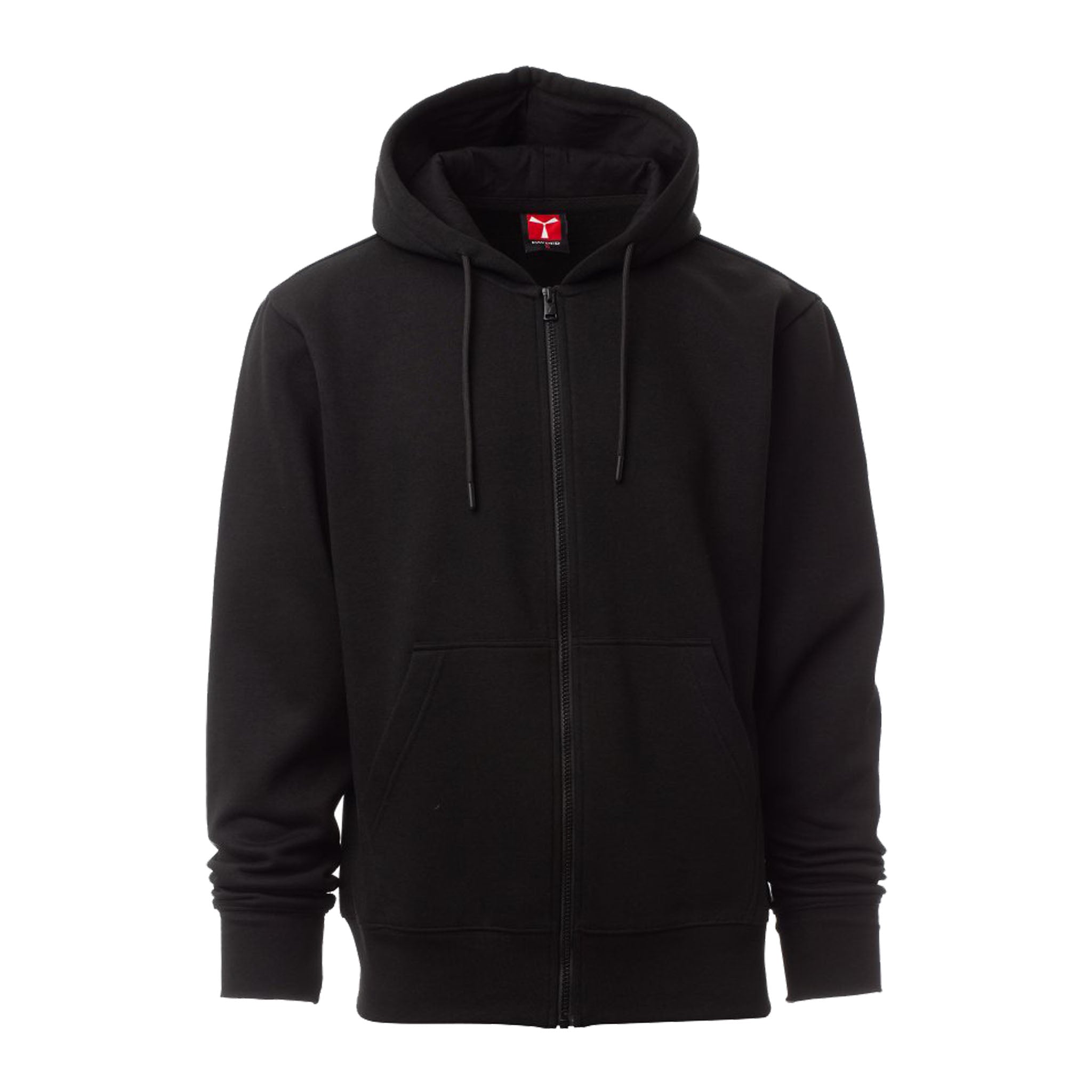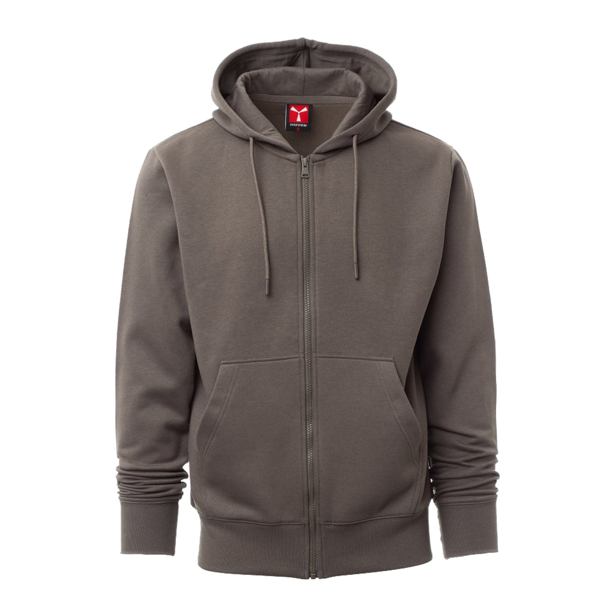 Felpa da uomo con zip intera in plastica dotata di cursore singolo personalizzato, cappuccio regolabile con coulisse in tinta, maniche a giro e tasche a marsupio. Polsini e fondo rifiniti in costina elasticizzata per una vestibilità comoda. Cuciture rinforzate e nastro interno al collo in tinta.