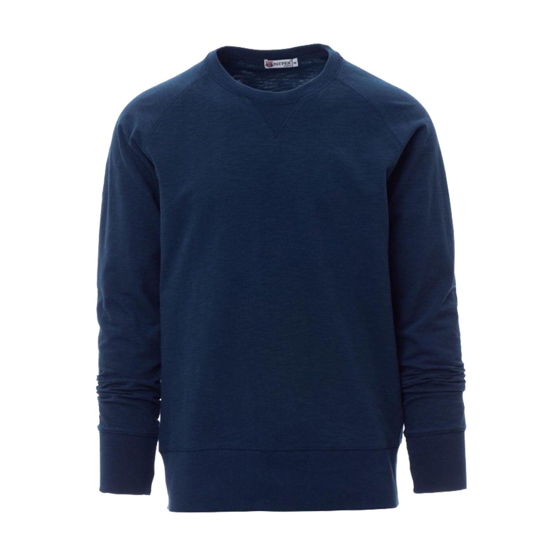 Felpa girocollo da uomo con maniche raglan, polsini e vita in rib elasticizzato, arricchita da una cucitura estetica a V sul collo.