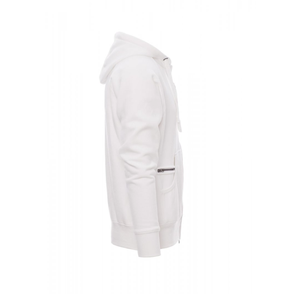 Il capo presenta manica raglan per favorire la libertà di movimento e tasche a marsupio con taschino integrato chiuso con zip. Polsini e vita in costina elasticizzata garantiscono comfort e una vestibilità stabile. Le cuciture rinforzate assicurano resistenza e durata nel tempo.
