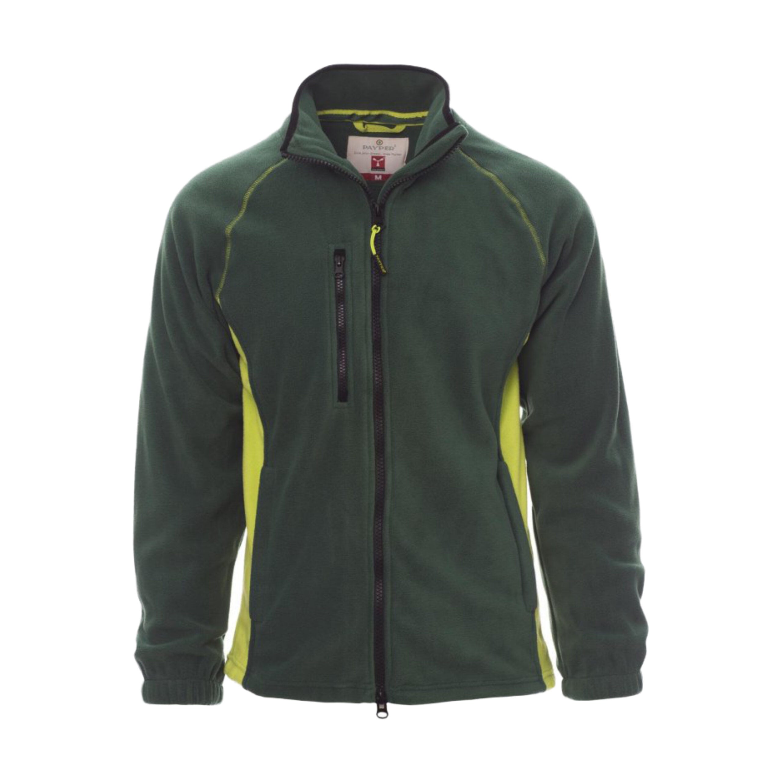 Pile bicolore da uomo con chiusura a zip intera da 8 mm in plastica nera. Dotato di maniche raglan per una vestibilità comoda, coulisse regolabile in vita, elastici stringi polso e cuciture rinforzate per maggiore resistenza. Presenta due tasche laterali con zip coperte e una tasca frontale con zip. Collo con bordatura di rinforzo in contrasto.