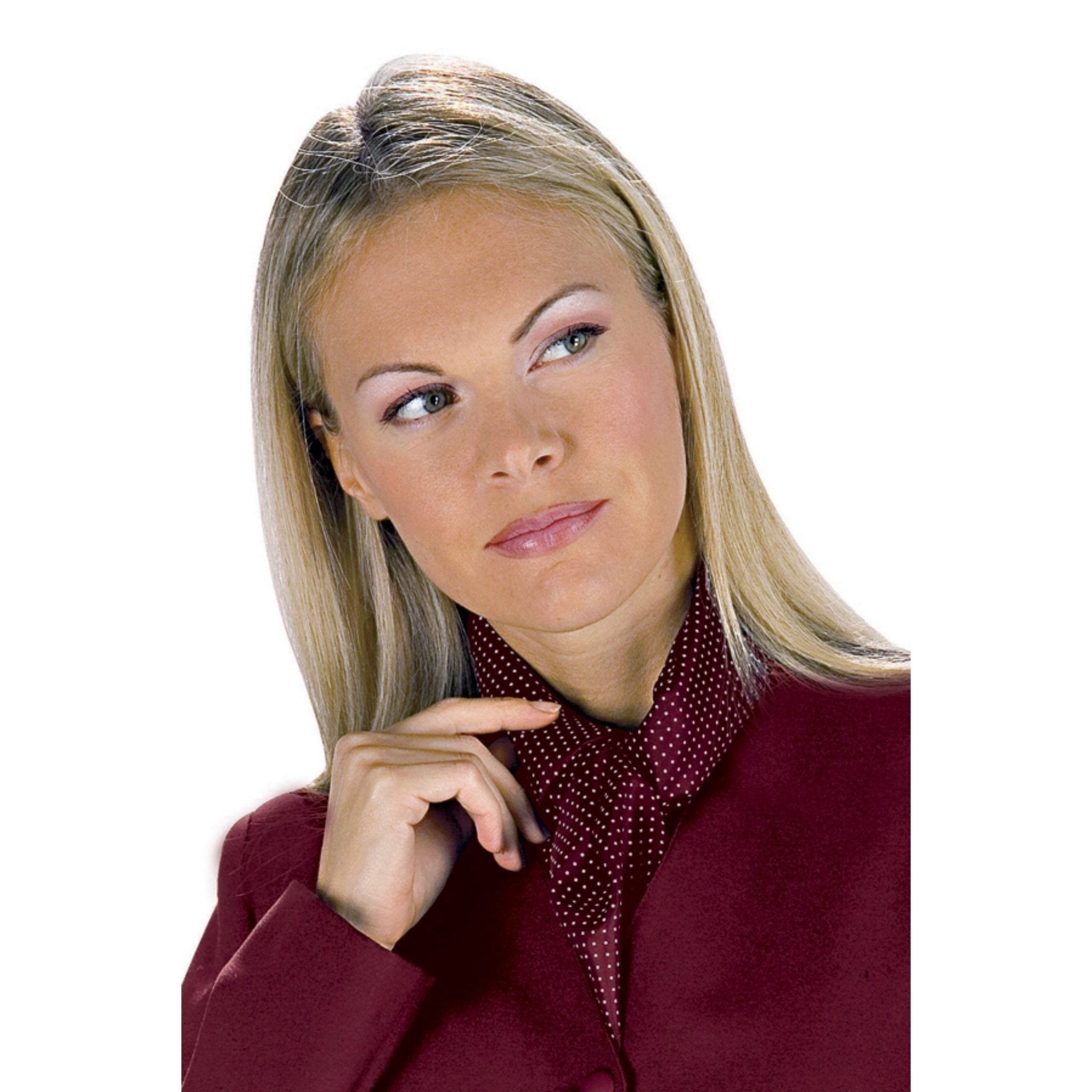 Foulard ascot da donna Isacco con raffinata lavorazione a punto a spillo, perfetto per completare divise eleganti in sala, bar e ambienti di rappresentanza. Realizzato in 100% seta, è leggero, morbido e lavabile a 30°C. Un accessorio distintivo per professioniste del settore ristorazione e alberghiero.