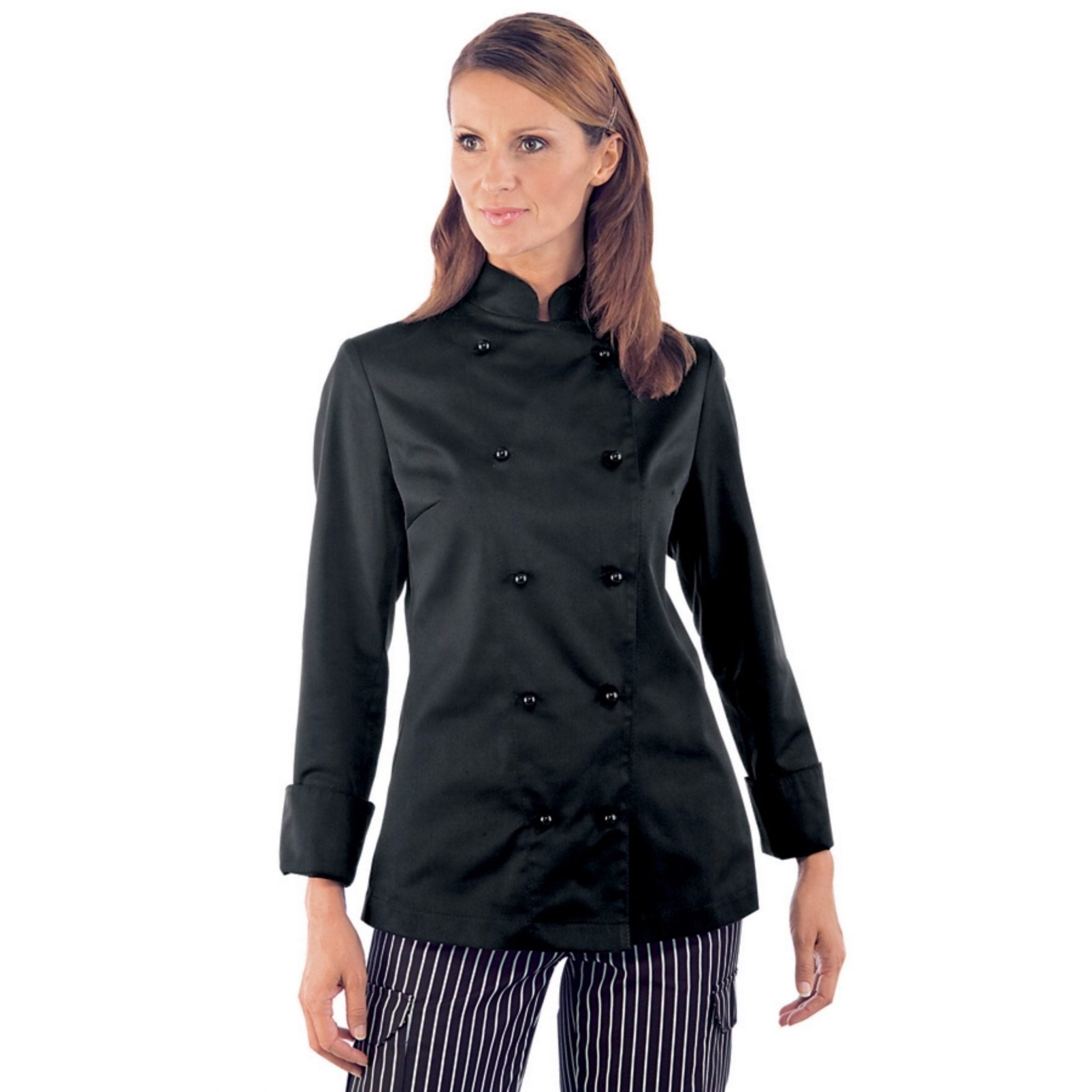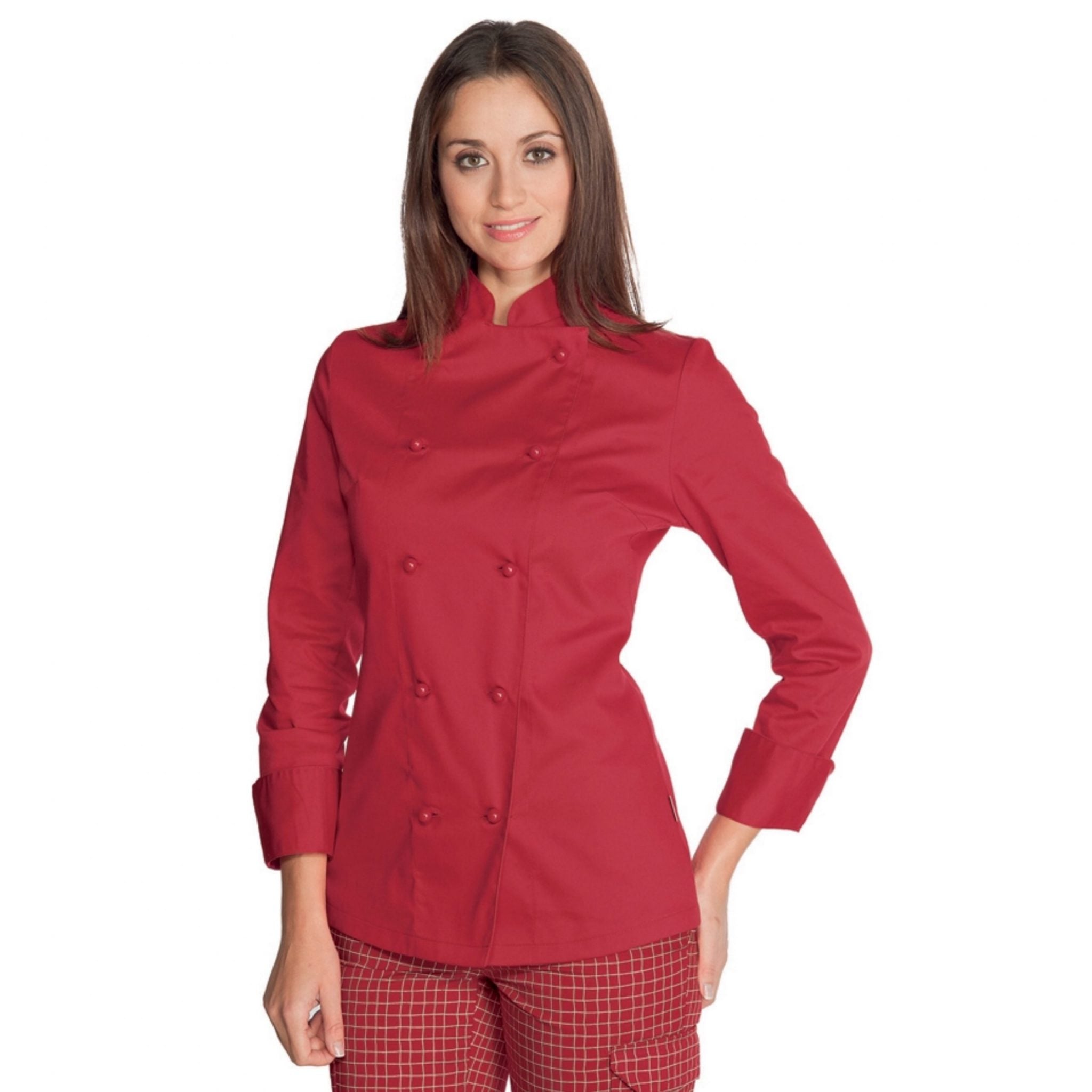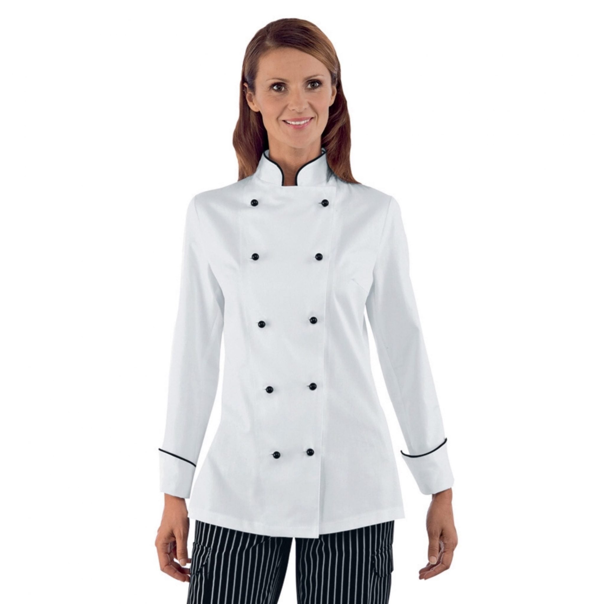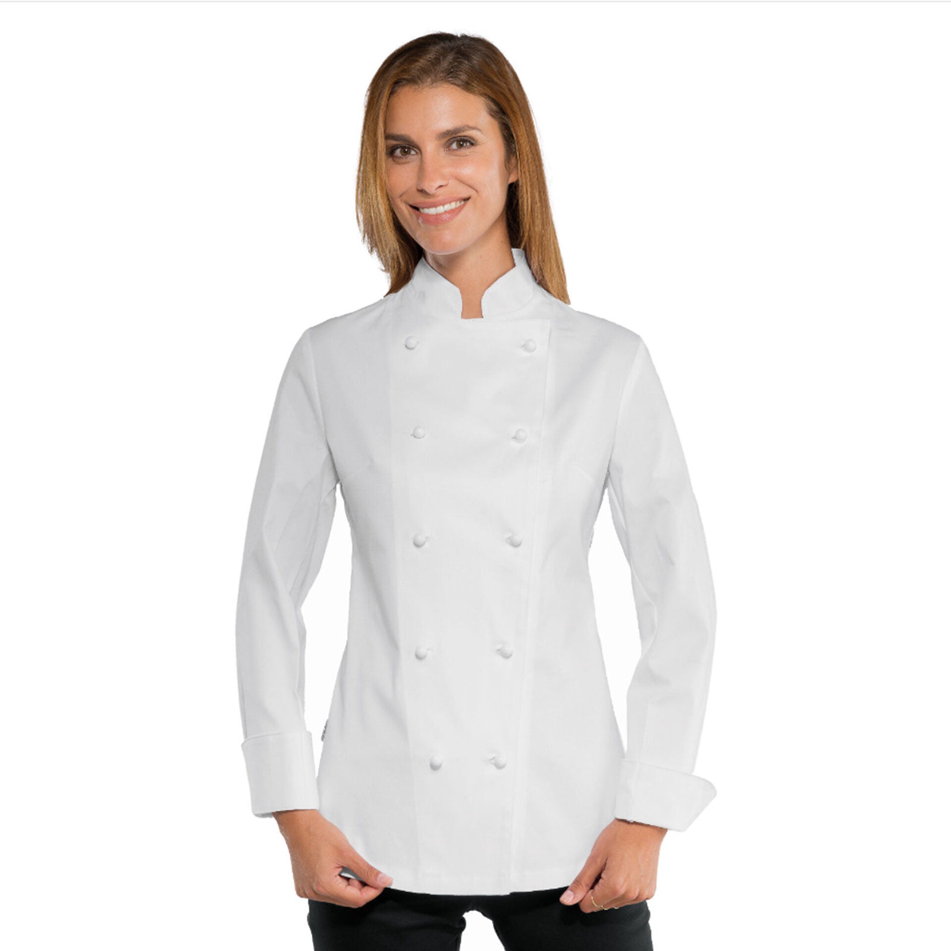 Giacca da chef donna Isacco con bottoni antipanico, pensata per garantire comfort, sicurezza e stile in cucina. Realizzata in tessuto resistente misto cotone e poliestere (oppure 100% cotone in alcuni modelli), è ideale per ristoranti, scuole professionali e ambienti alberghieri.