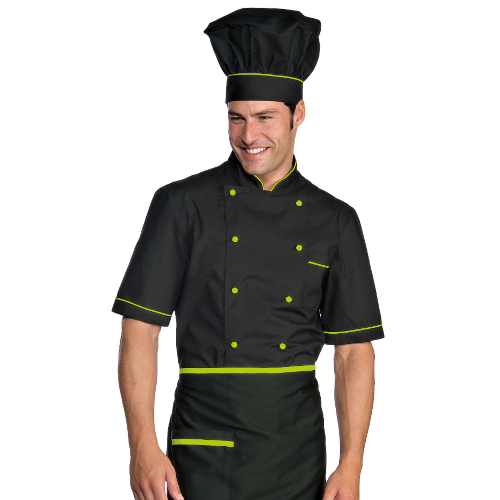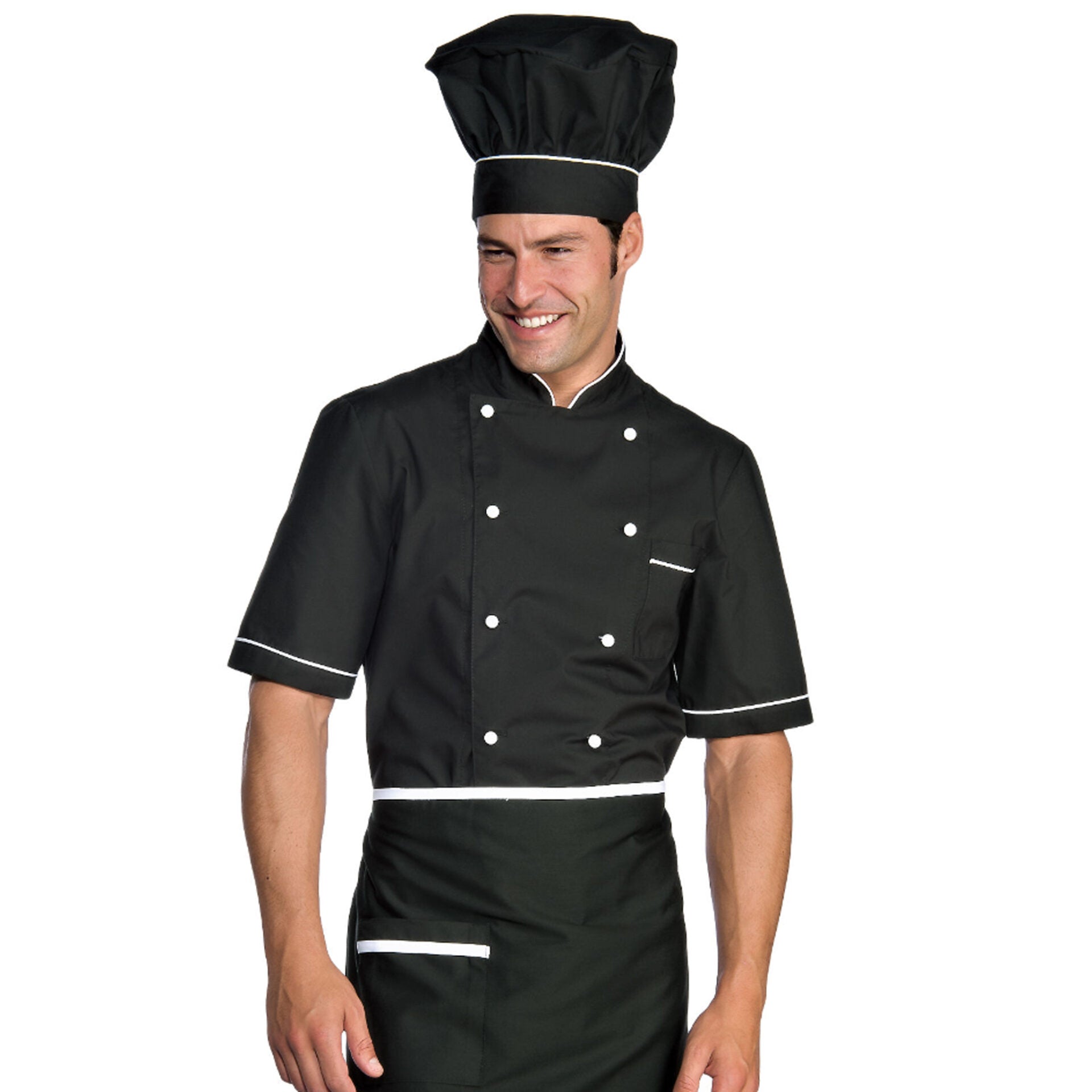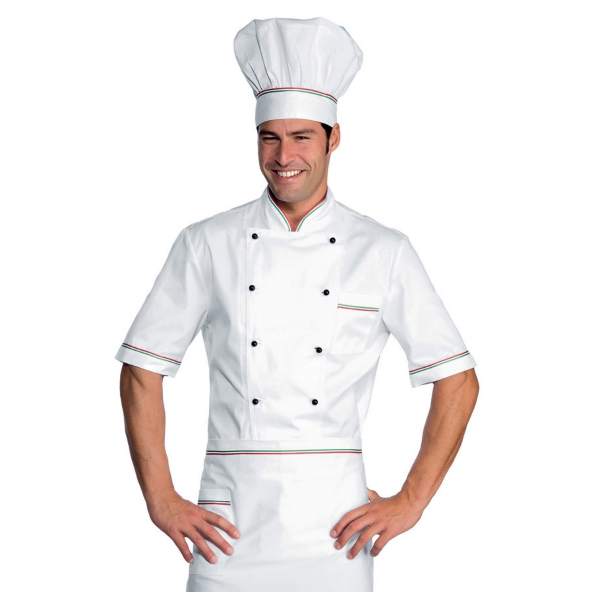 Giacca cuoco unisex Isacco modello Alicante, con mezza manica e bottoni antipanico, pensata per garantire libertà di movimento e praticità in cucina. Disponibile in 100% cotone o 65% poliestere / 35% cotone, è leggera, traspirante e resistente ai lavaggi.