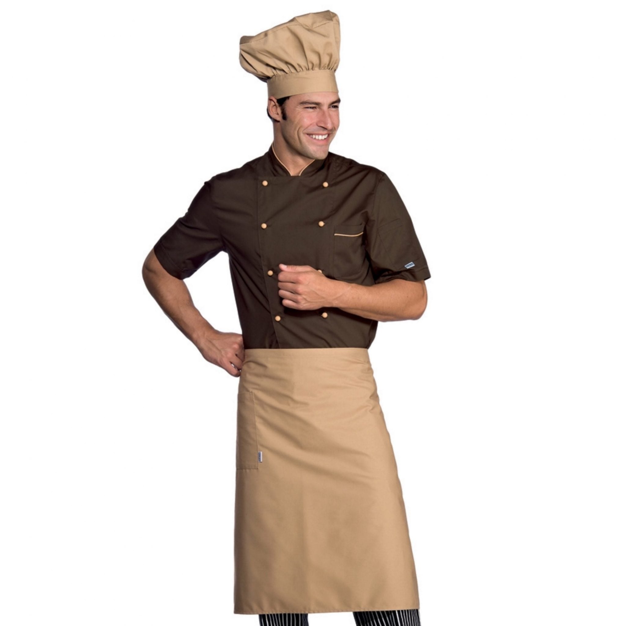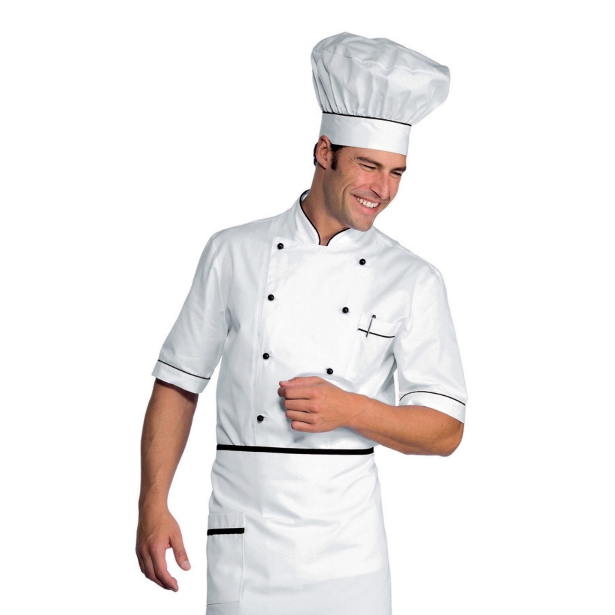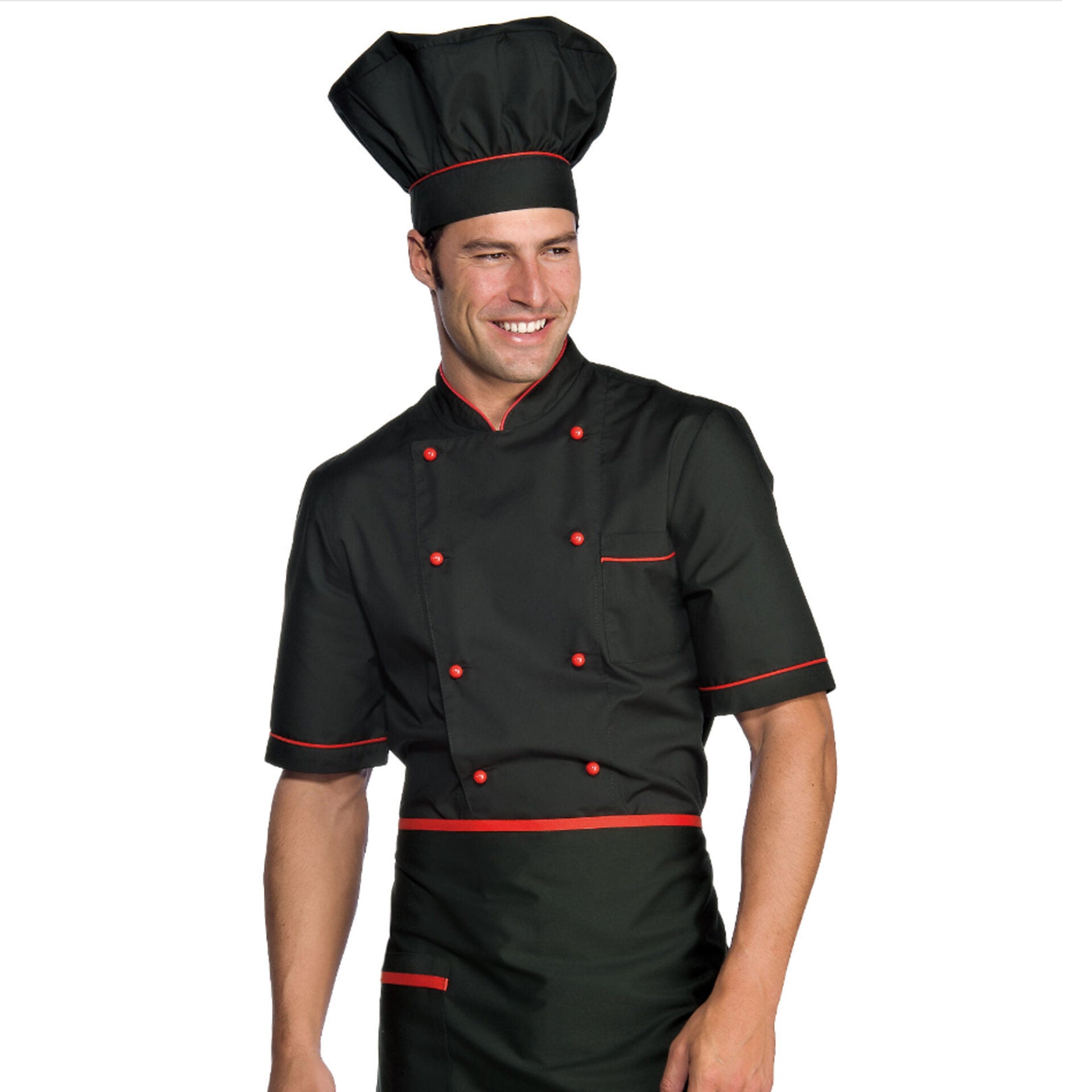 Giacca cuoco unisex Isacco modello Alicante, con mezza manica e bottoni antipanico, pensata per garantire libertà di movimento e praticità in cucina. Disponibile in 100% cotone o 65% poliestere / 35% cotone, è leggera, traspirante e resistente ai lavaggi.