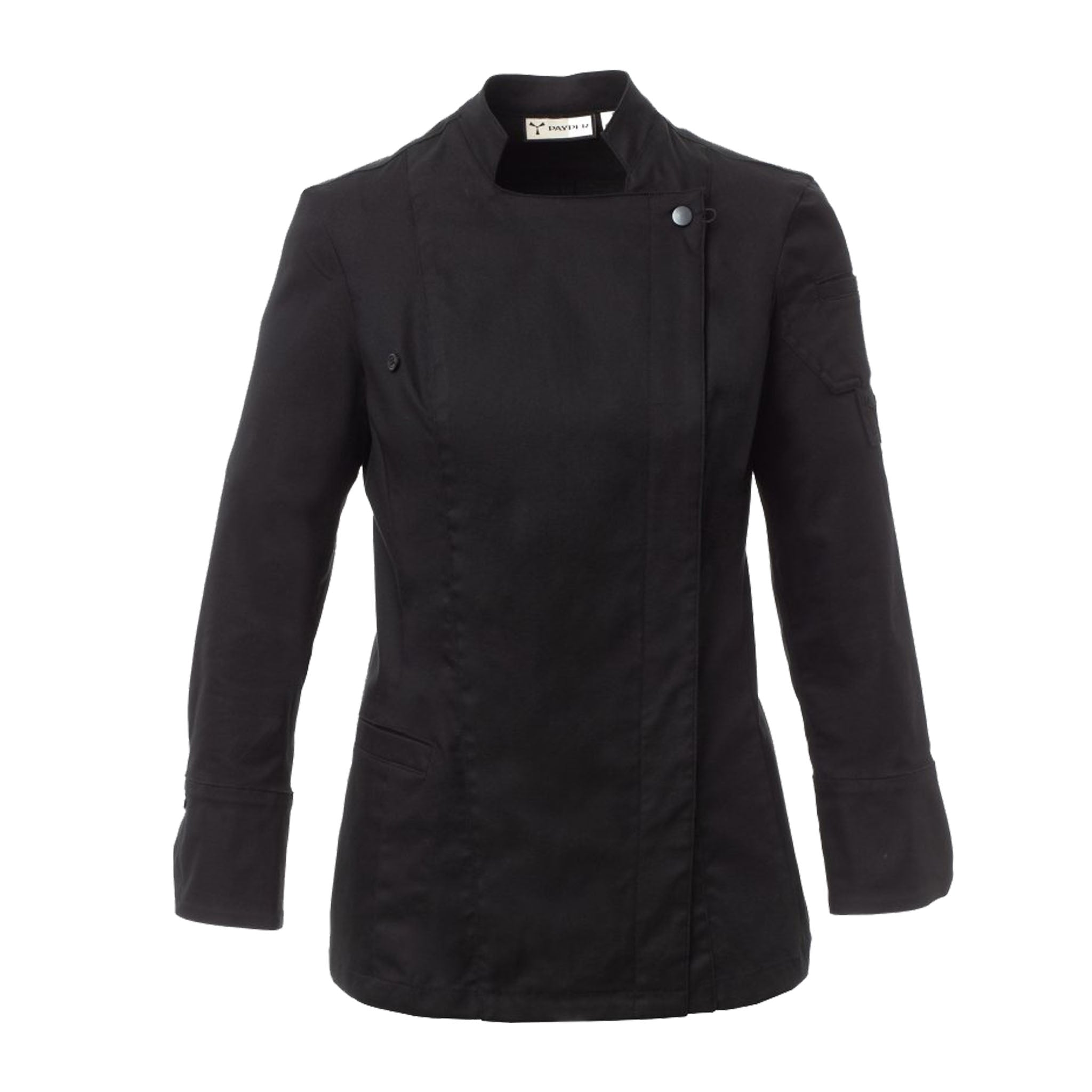 Giacca da cuoca con collo alla coreana, realizzata in twill di cotone e Lycra® T400®, un tessuto tecnico progettato per offrire elevata elasticità, resistenza e ottima traspirabilità. Ideale per ambienti professionali ad alta attività, la struttura è pensata per garantire comfort e mobilità durante l’intero turno di lavoro.