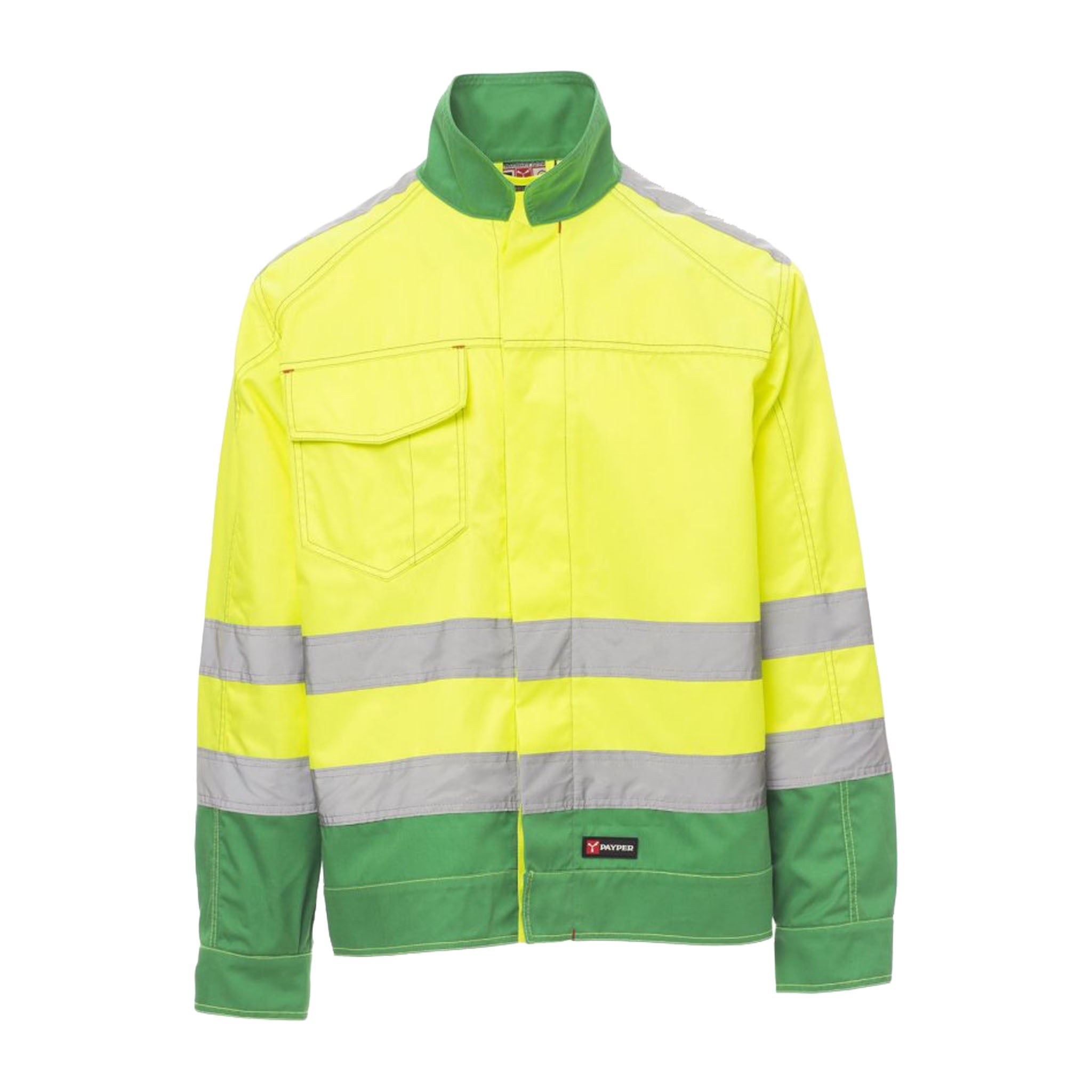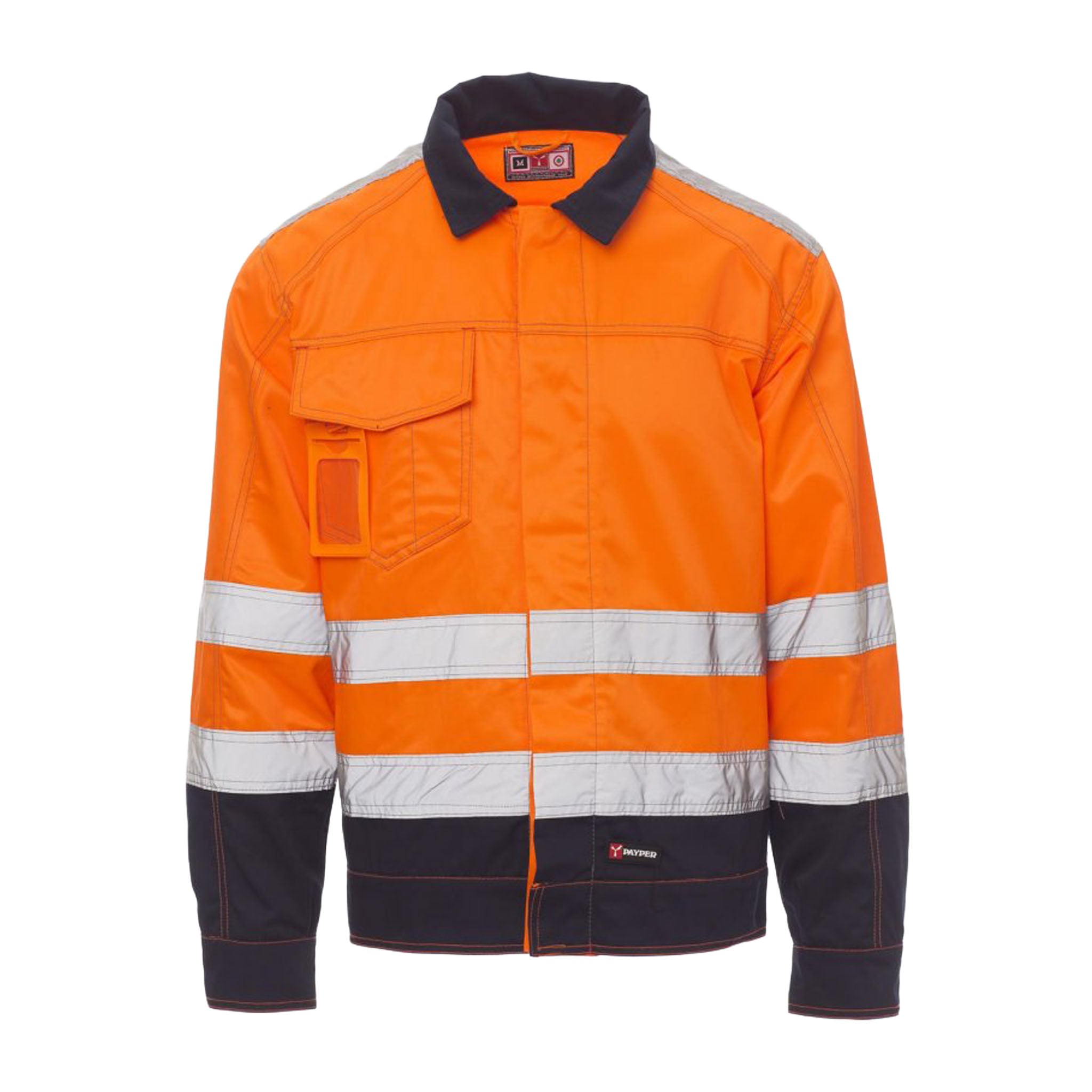 Giacca da lavoro non imbottita in tessuto twill, ideale per ambienti industriali ed edilizia. Presenta un taglio moderno ispirato al modello jeans, impunture a contrasto e chiusura frontale con bottoni in plastica coperti da patta. I polsini si regolano tramite bottone, mentre la vita è regolabile con velcro.