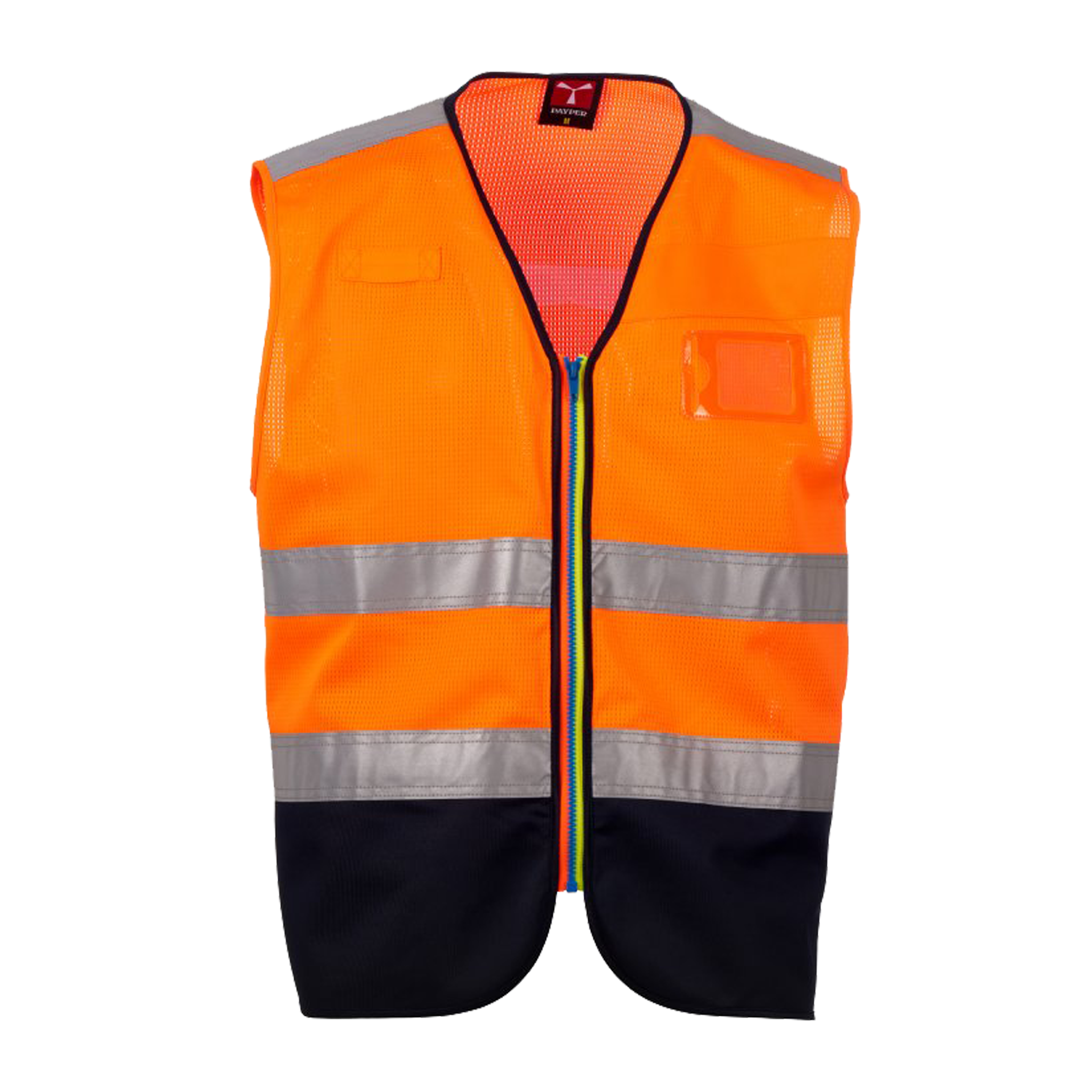 Gilet sfoderato alta visibilità con parte superiore in rete traspirante e parte inferiore in tessuto dry-tech a contrasto. Dotato di bande retroriflettenti su spalle e corpo, chiusura con zip SBS bicolore e dettagli funzionali per il lavoro quotidiano. Acquista su fuccishop.