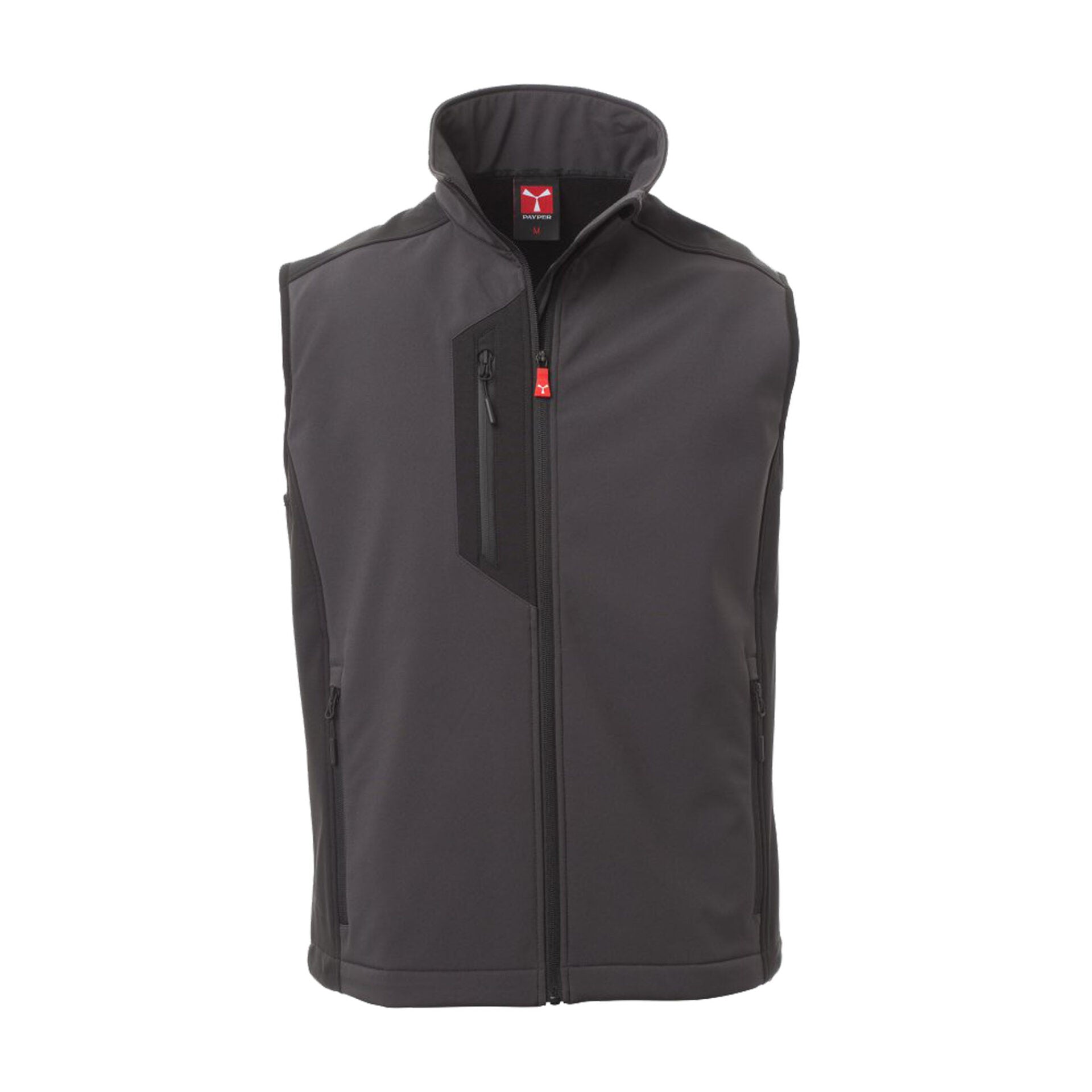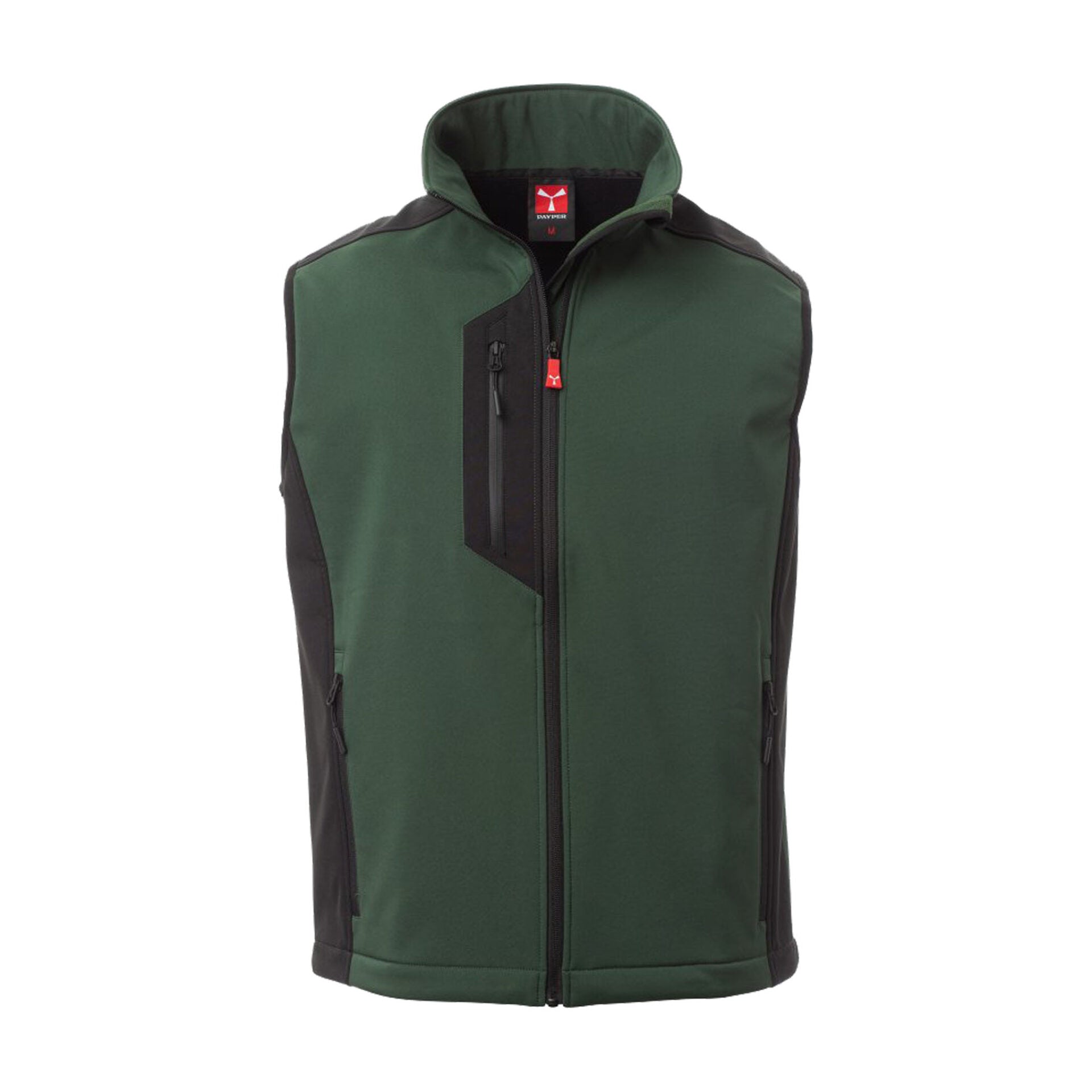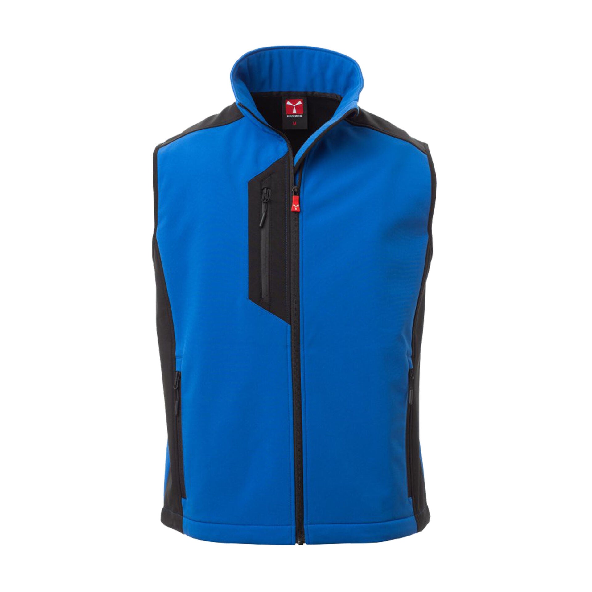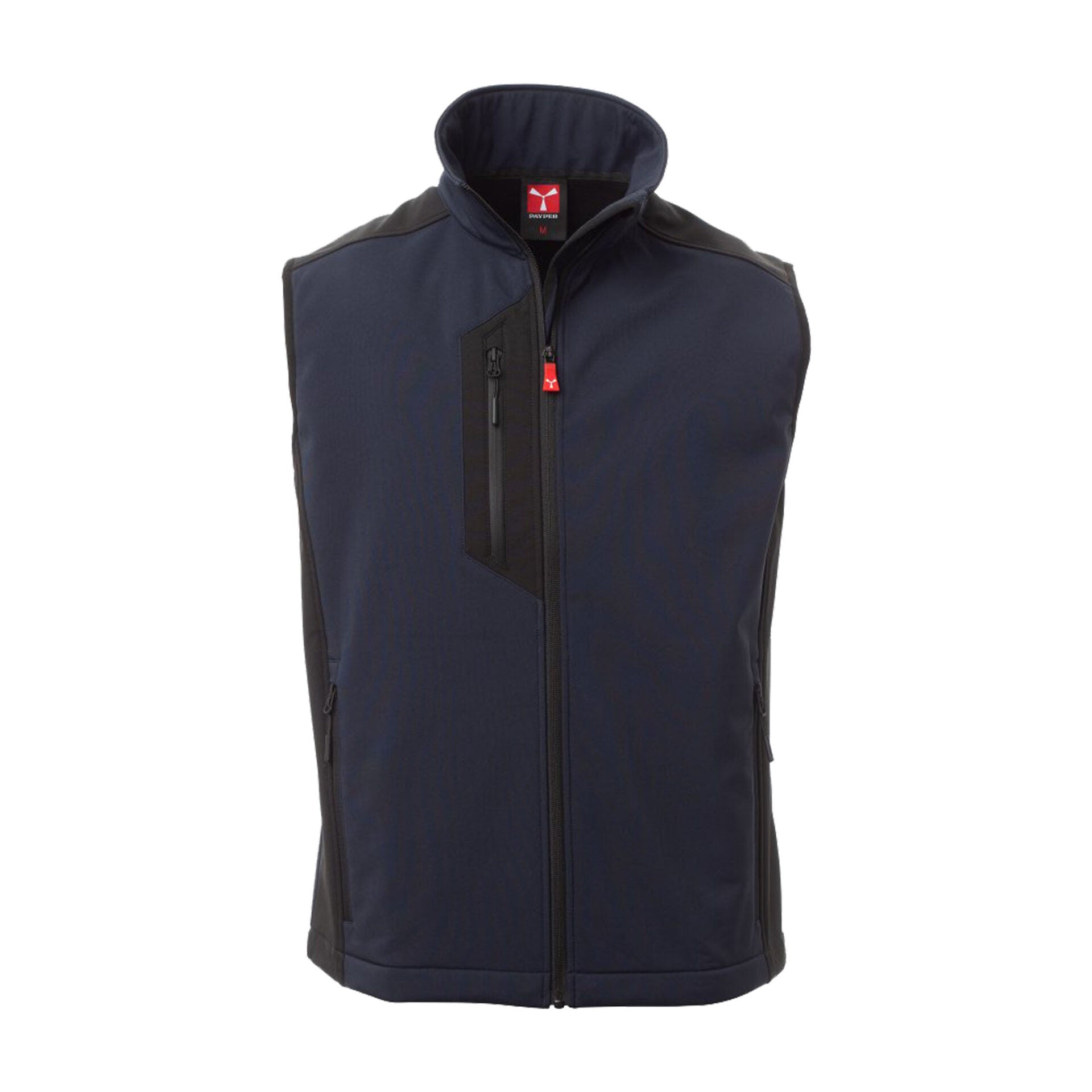 Gilet Soft-shell da uomo bicolore con chiusura a zip lunga dotata di cursore in metallo "semi-auto lock" e tiretto personalizzato. Presenta due tasche laterali con zip e una tasca al petto con zip spalmata. Dettaglio riflettente sul carré posteriore. Il fondo è regolabile con stopper personalizzati.