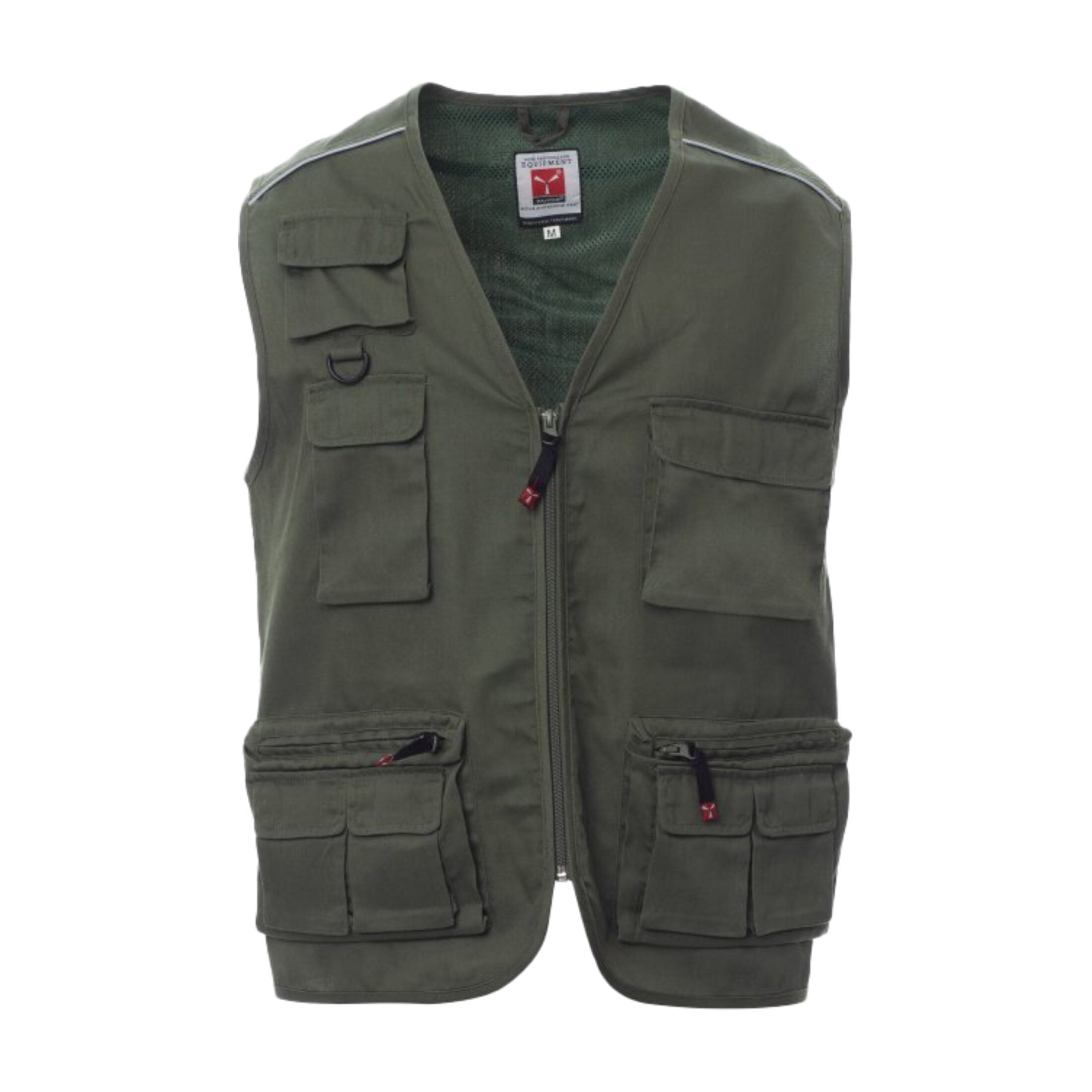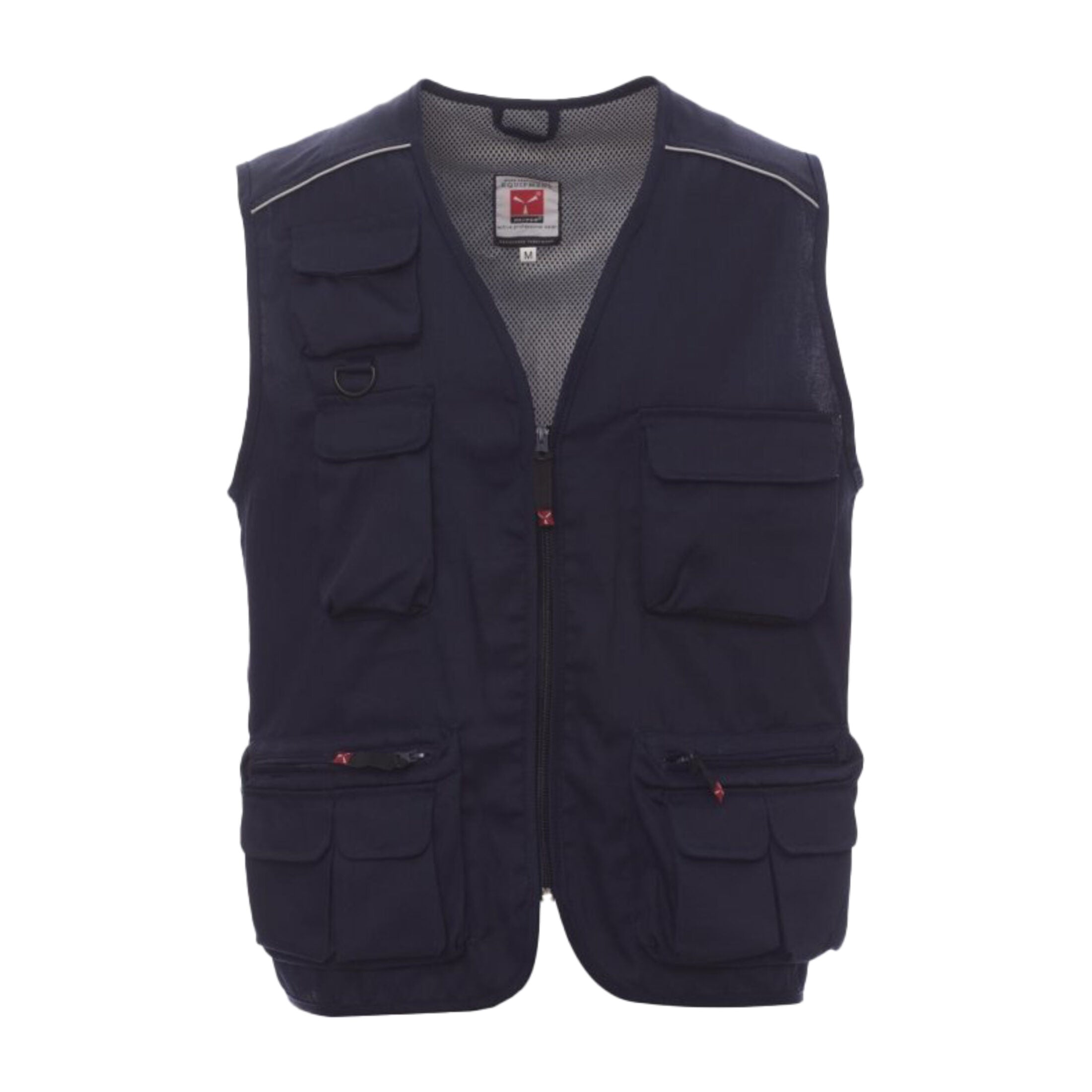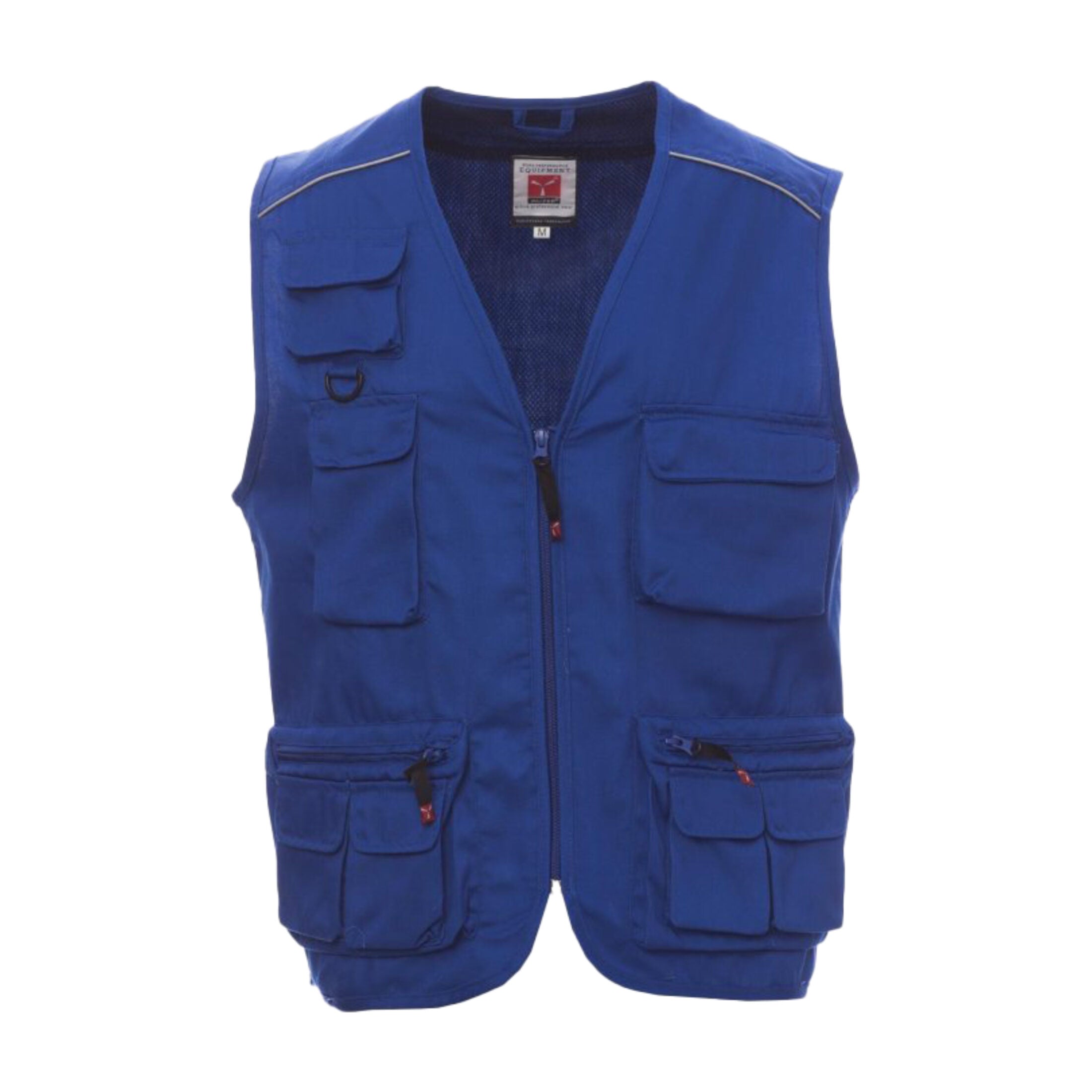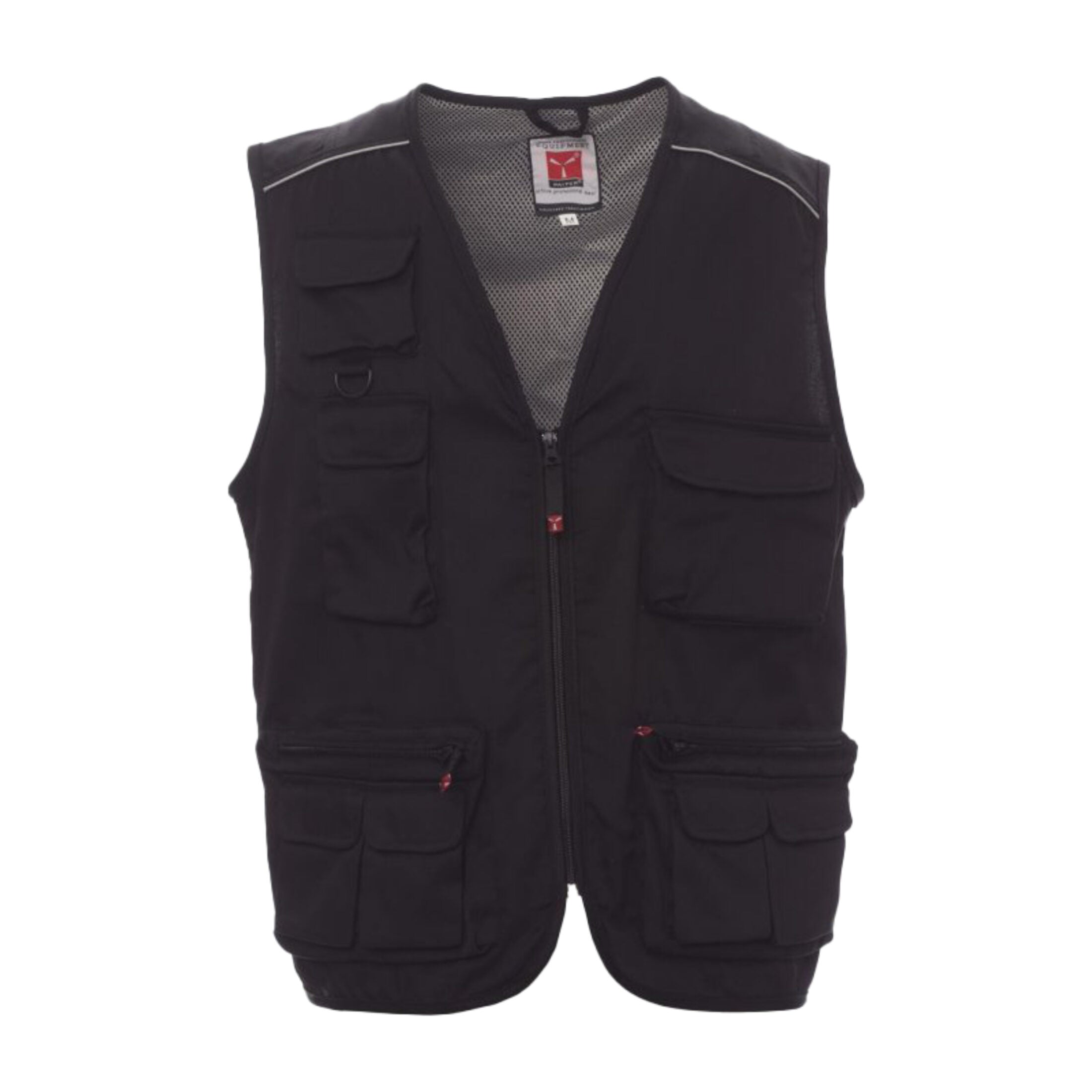 Gilet estivo da uomo con zip frontale, ideale per le attività lavorative all'aperto. Dotato di una pratica composizione multitasche sul davanti, incluso un porta badge reversibile. Dettagli riflettenti (piping reflex) su spalle e schiena per una maggiore visibilità. Ampia tasca posteriore tipo cacciatora. L’interno è foderato in tessuto dry-tech a contrasto, apribile per facilitare eventuali stampe o ricami.