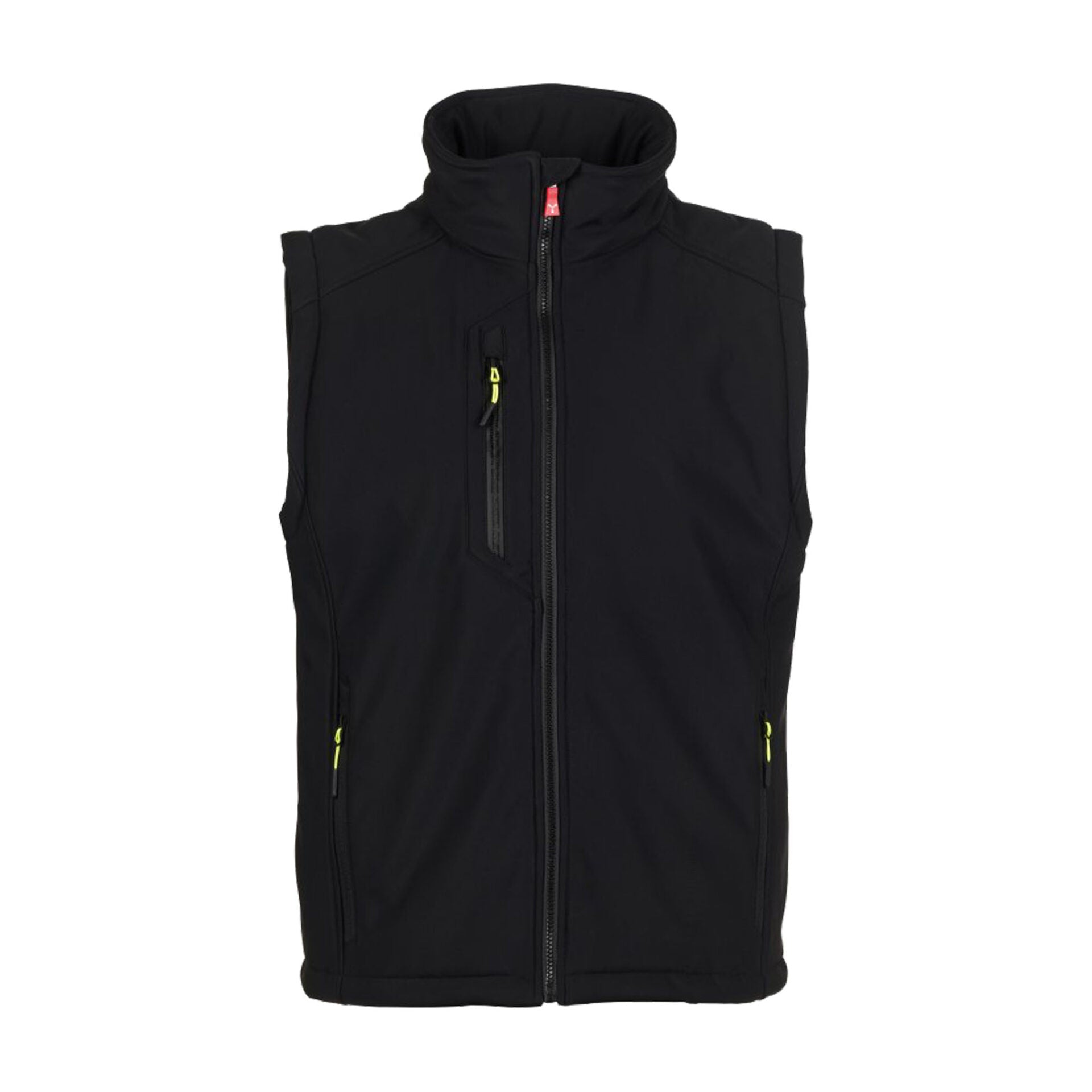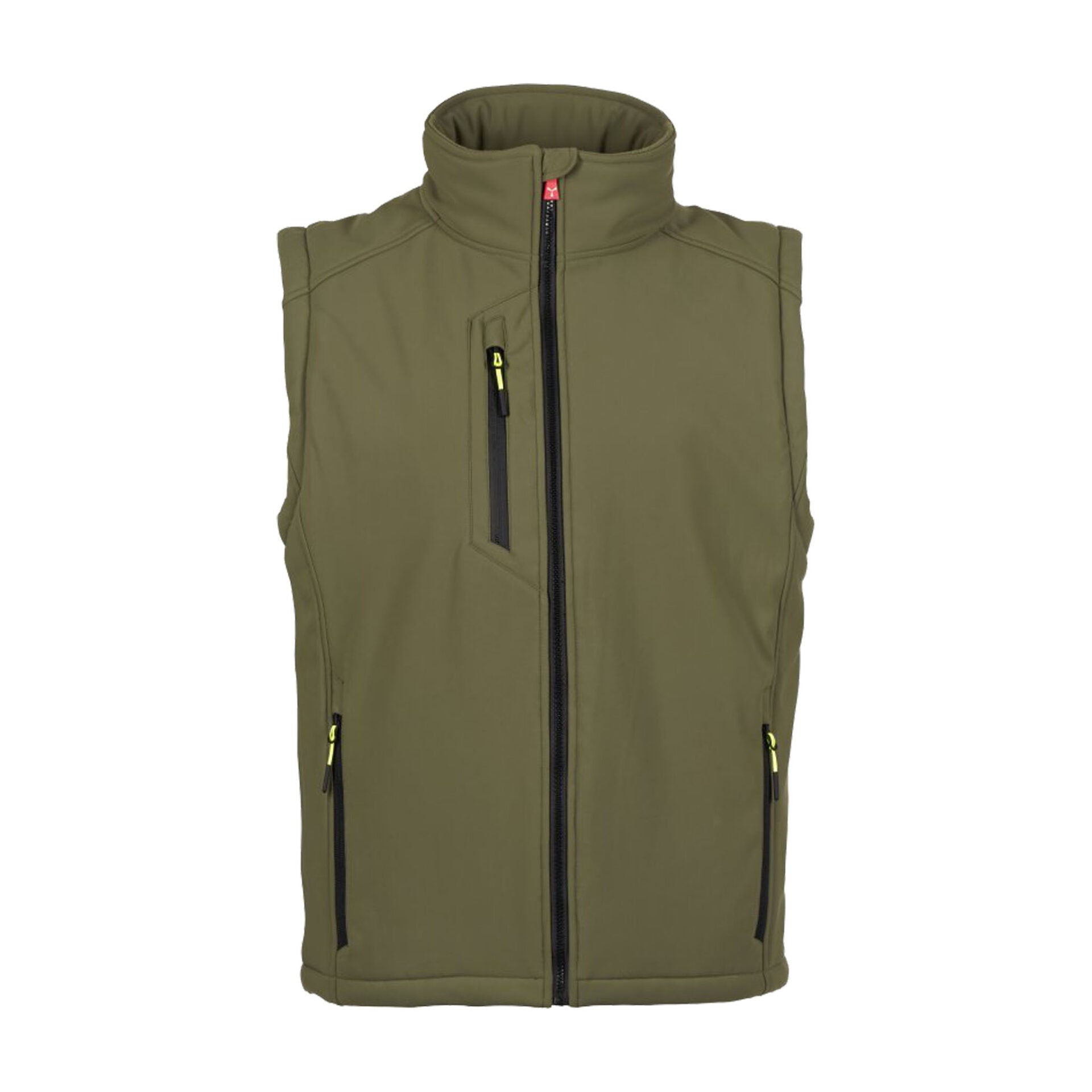 Gilet soft-shell imbottito da uomo con chiusura tramite zip SBS dotata di cursore in metallo "semi-auto lock" e tiretto personalizzato. Colletto interno con dettagli laterali in pile. Bande retroriflettenti sul fondoschiena. Due tasche laterali con zip, una tasca al petto con zip spalmata. Tiretti fluorescenti. Una tasca a filetto interna chiusa con velcro. Fondo regolabile con stopper personalizzati.