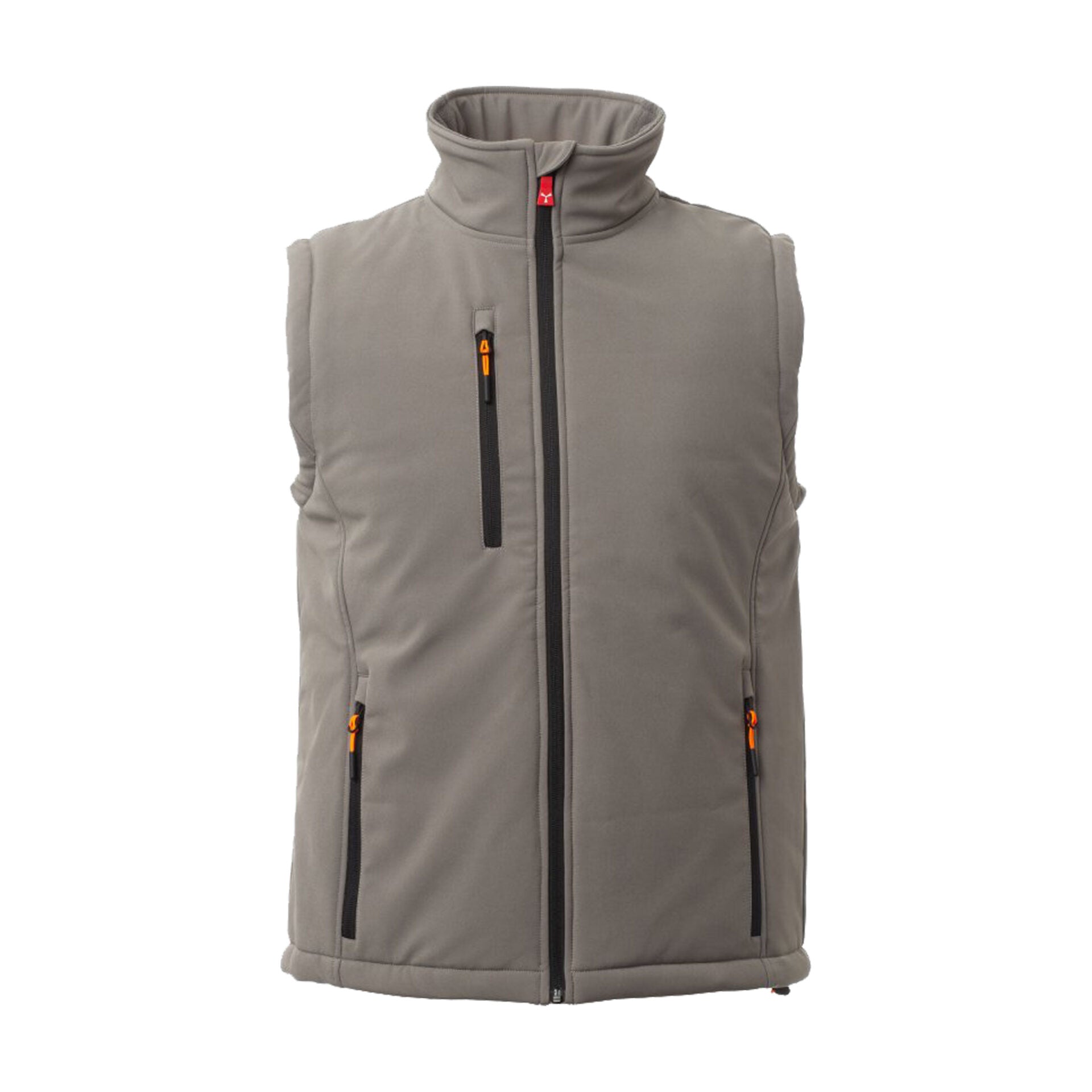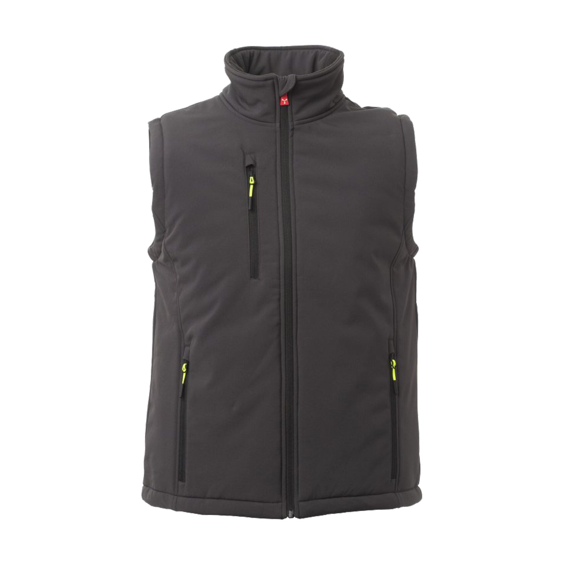 Gilet soft-shell imbottito da uomo con chiusura a zip dotata di cursore in metallo "semi-auto lock" e tiretto personalizzato. Presenta due tasche laterali e una tasca al petto, tutte con chiusura a zip. I tiretti sono fluorescenti per una maggiore visibilità. All’interno, sono presenti due tasche: una sagomata con zip e una porta tablet con chiusura in velcro. Il fondo è regolabile tramite stopper personalizzati.