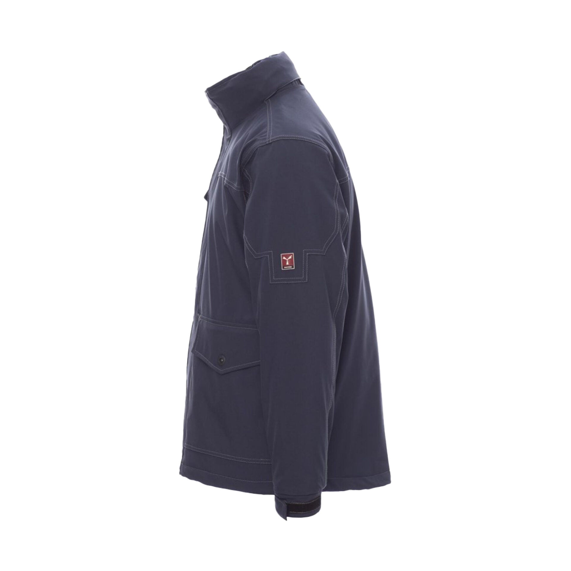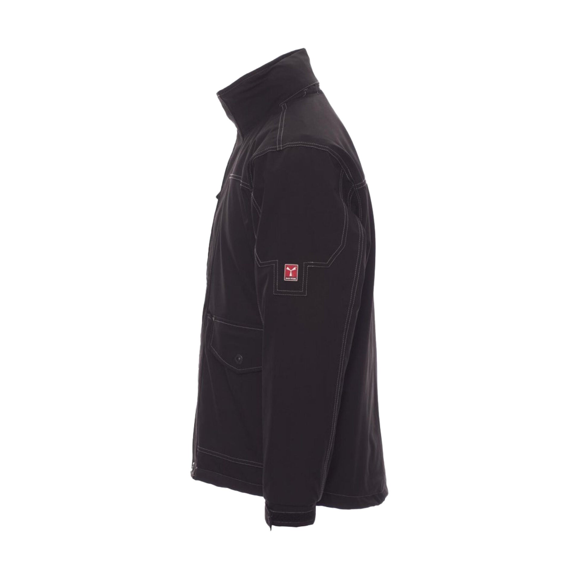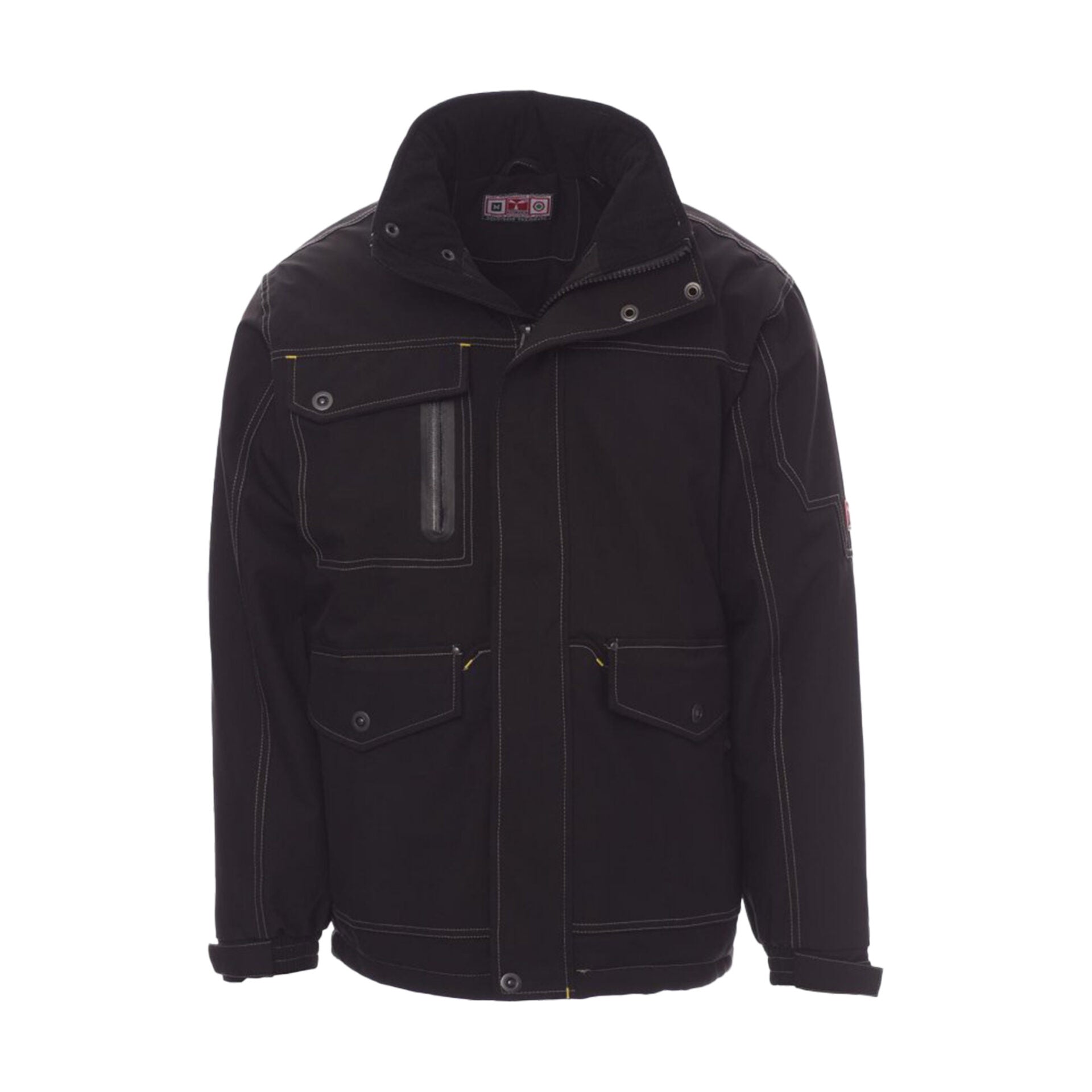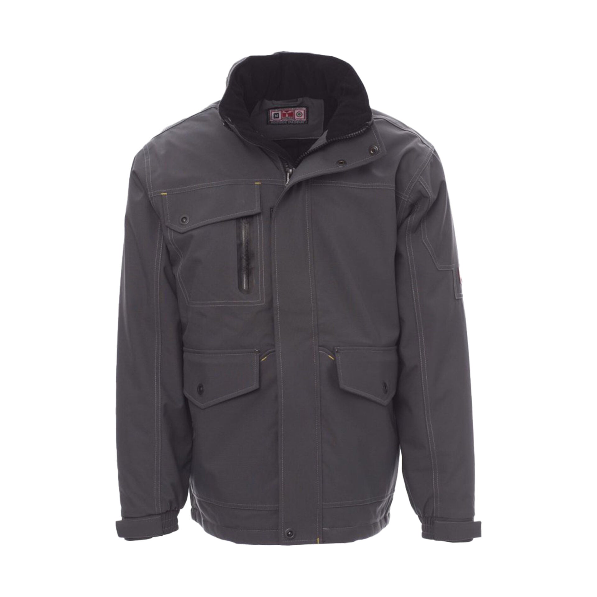 Giubbotto tecnico da uomo con cappuccio sagomato richiudibile nel colletto, realizzato in tessuto traspirante ed elasticizzato. Dotato di cuciture termosaldate, polsini regolabili e zip frontale da 8mm in plastica con patta di copertura in velcro. Presenta 4 ampie tasche frontali (2 con patta e cerniera + 2 al petto con cerniera nastrata), bottoni automatici in metallo e 1 tasca interna. Interno imbottito con fodera in maglia di poliestere.