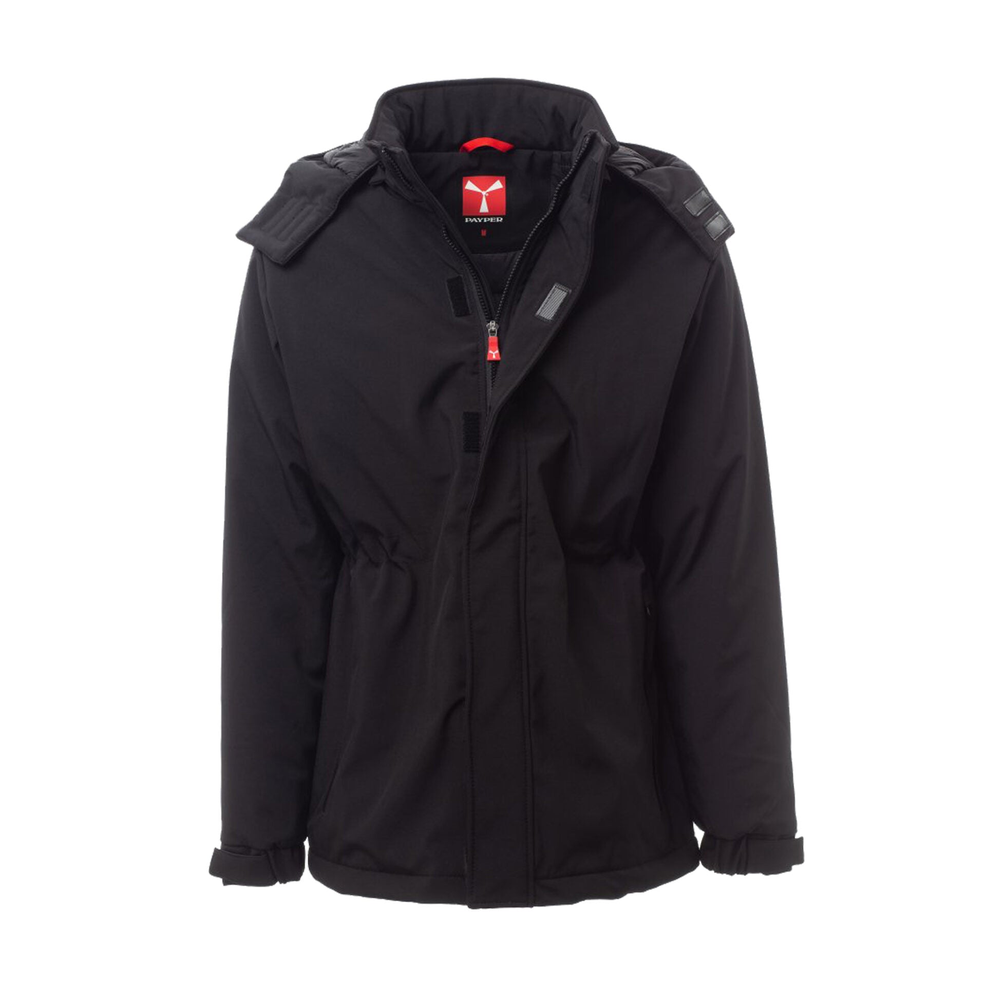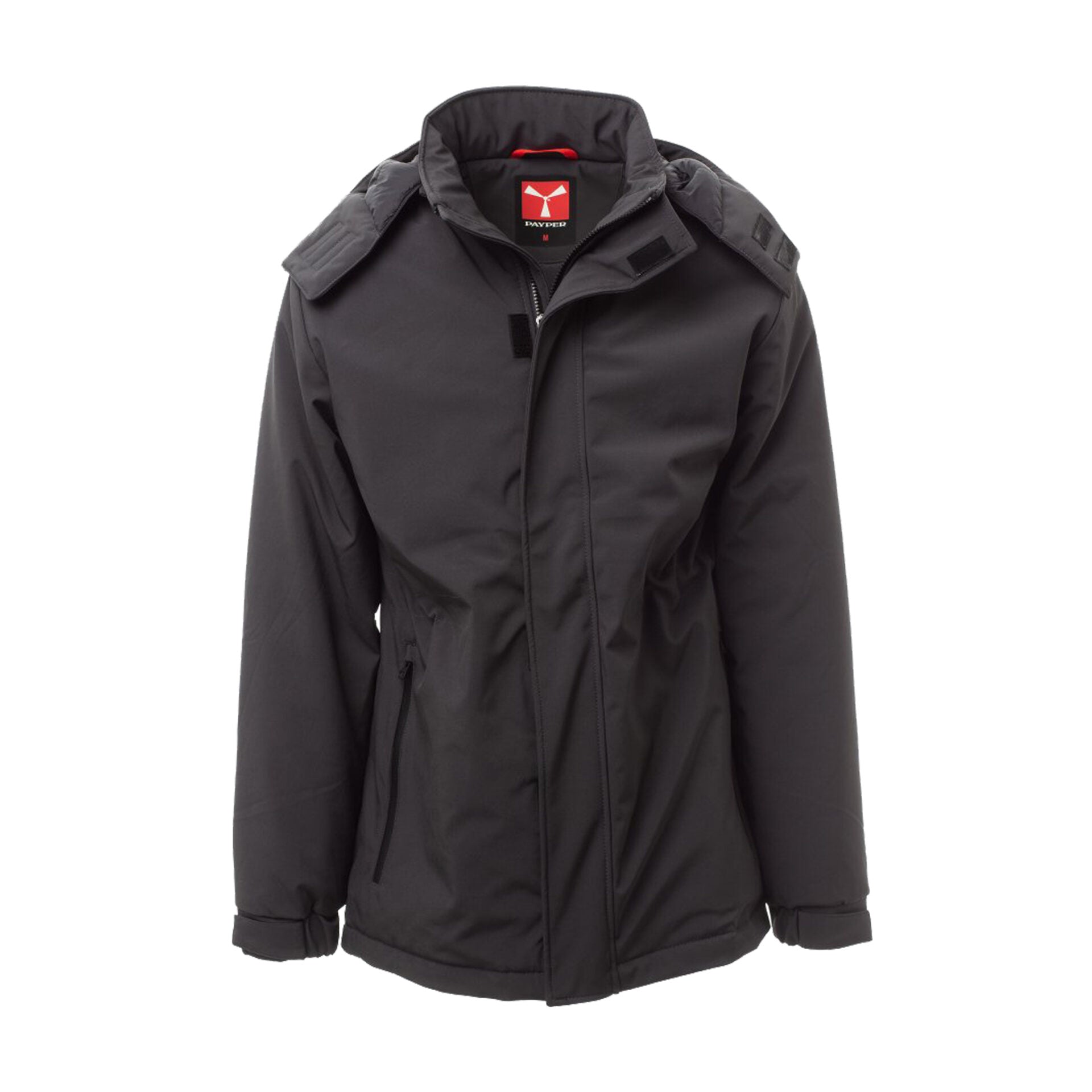 Soft-shell imbottito da uomo con chiusura in velcro e zip con cursore in metallo "semi-auto lock" e tiretto personalizzato. Cappuccio removibile e chiudibile sul davanti con velcro. Coulisse in vita per una migliore regolazione. Dotato di due tasche esterne con zip spalmata, una tasca interna a filetto con chiusura in velcro e una tasca interna porta tablet con chiusura in velcro. Polsini elasticizzati e regolabili con velcro. Patch personalizzata sul retro del collo con dettaglio retroriflettente.