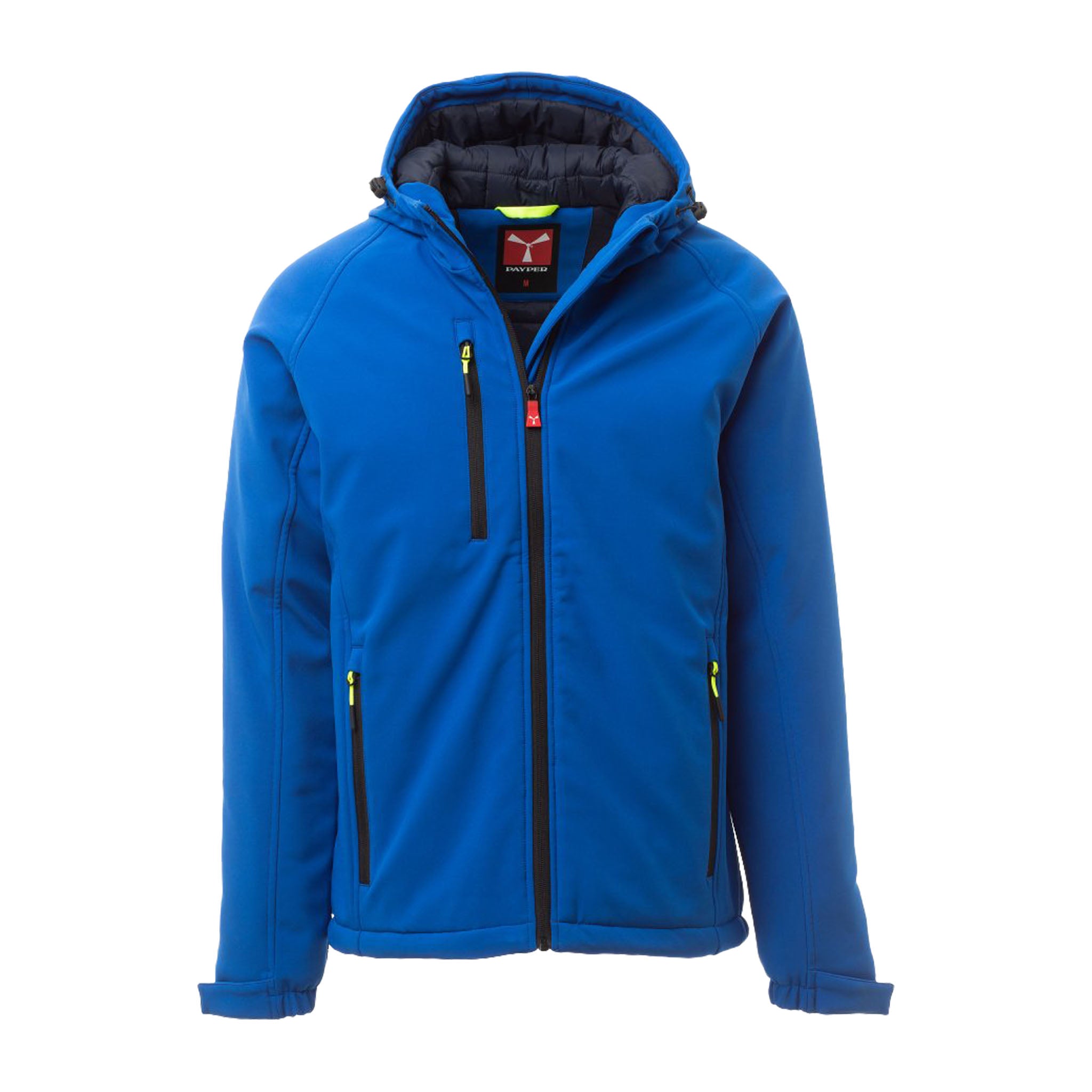 Soft-shell imbottito da uomo, con chiusura tramite zip dotata di cursore in metallo "semi-auto lock" e tiretto personalizzato. Cappuccio fisso con coulisse regolabile, polsini elasticizzati regolabili con velcro. Dotato di 2 tasche laterali e 1 tasca al petto con zip e tiretti fluorescenti. All’interno: 1 tasca sagomata con zip e 1 tasca porta tablet con chiusura in velcro. Fondo regolabile con stopper personalizzati.