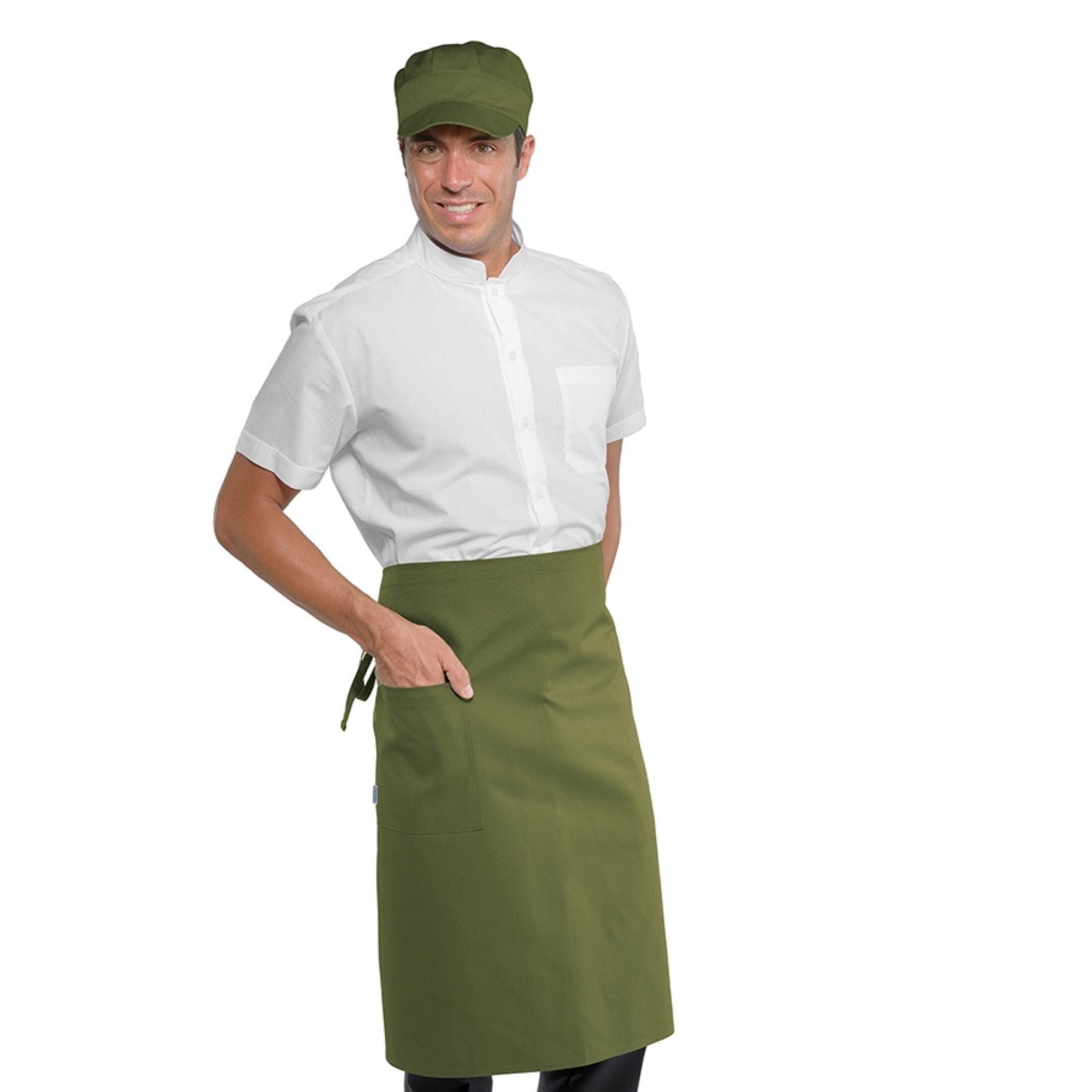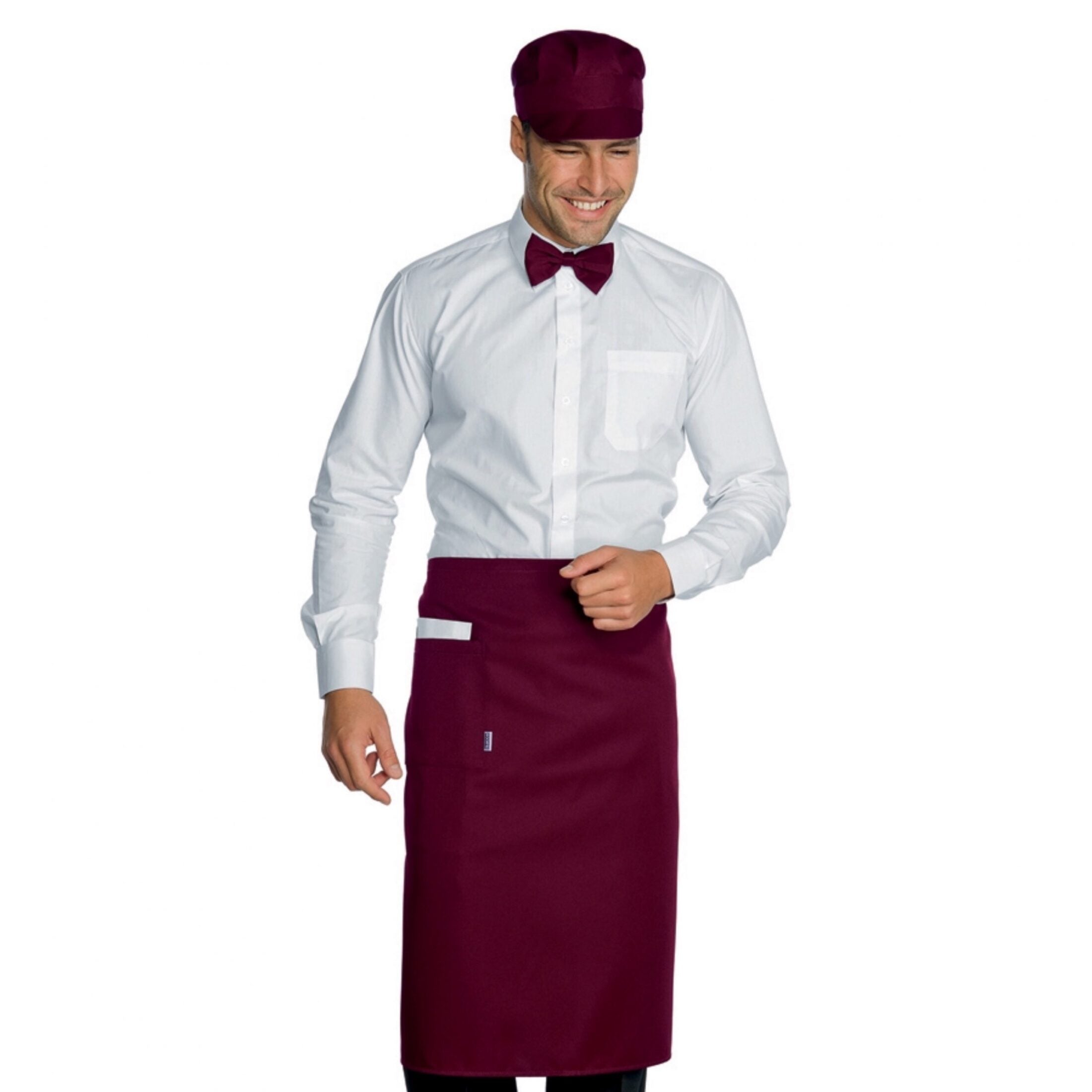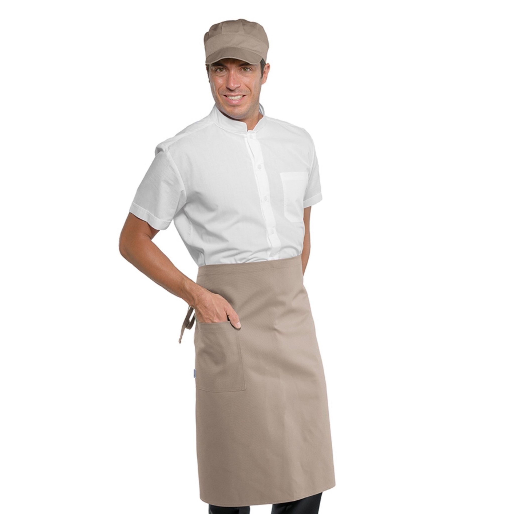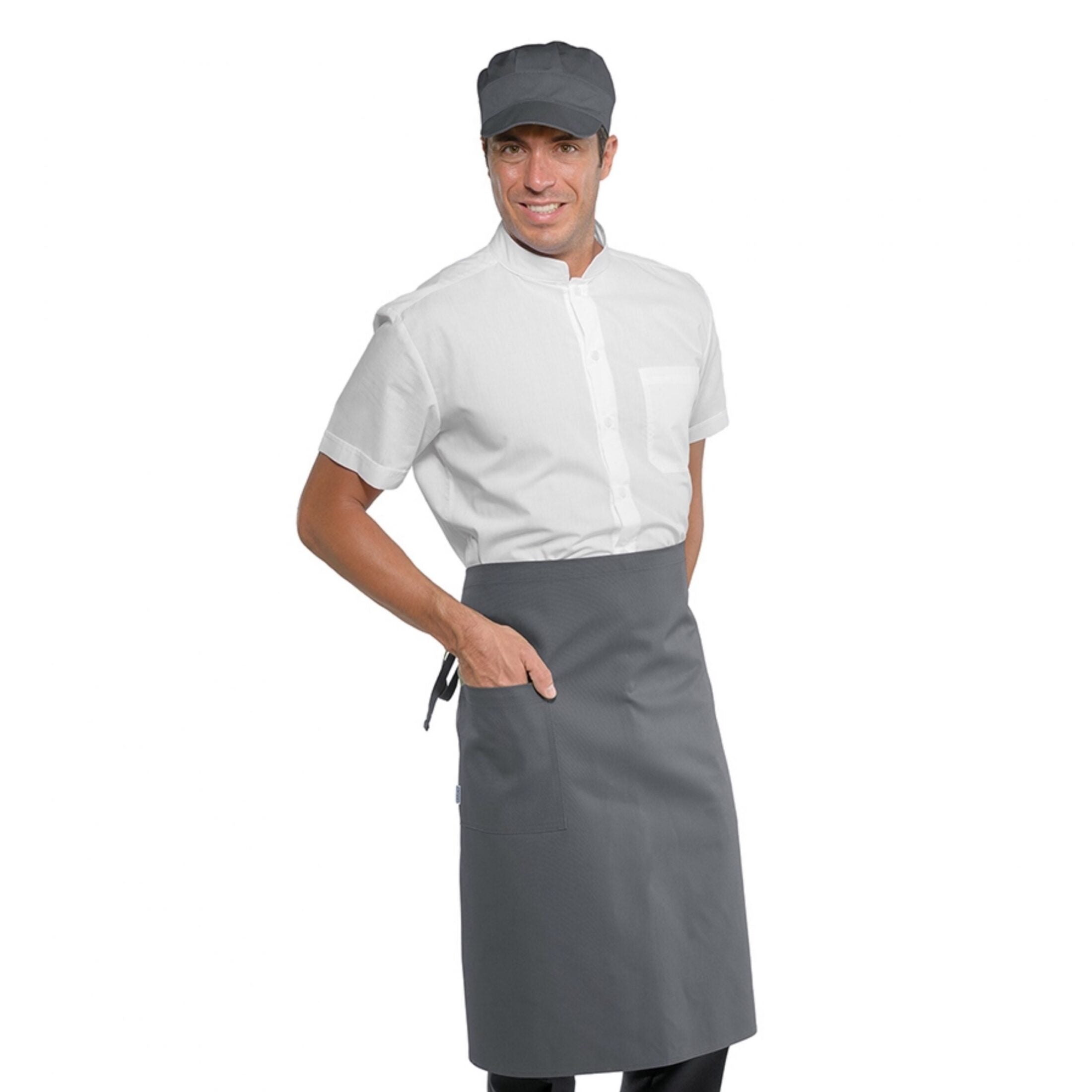 Grembiule da vita Isacco Dakar, pratico e resistente, ideale per personale di sala, bar e ristorazione. Realizzato in 65% poliestere e 35% cotone, è lavabile a 60°C. Taglia unica, con laccio regolabile e tasca anteriore per utensili o blocco comande.