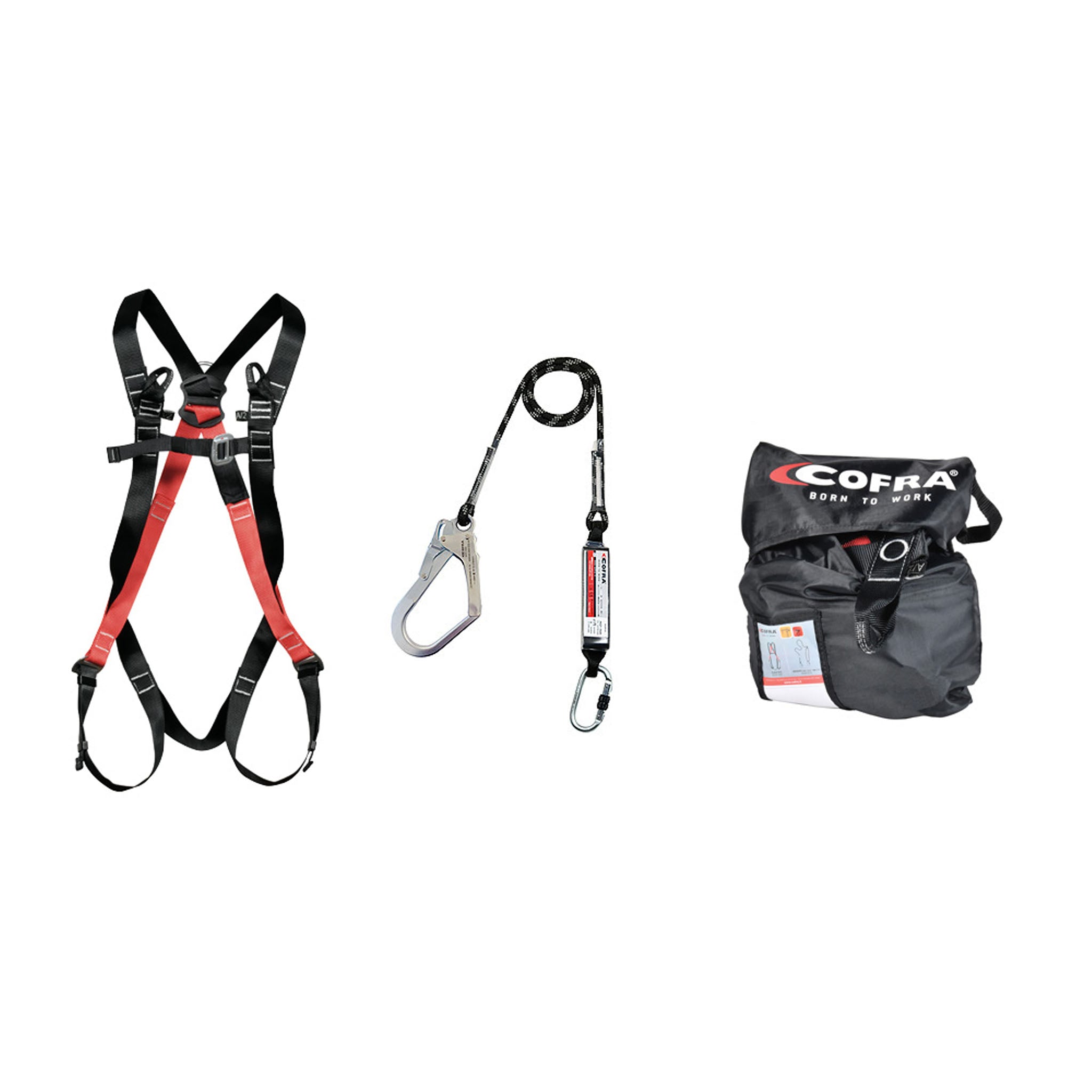 Il Kit Anticaduta Cofra Cerlak è progettato per garantire la massima sicurezza in ambienti ad alto rischio di caduta come tetti, impalcature e piattaforme aeree.