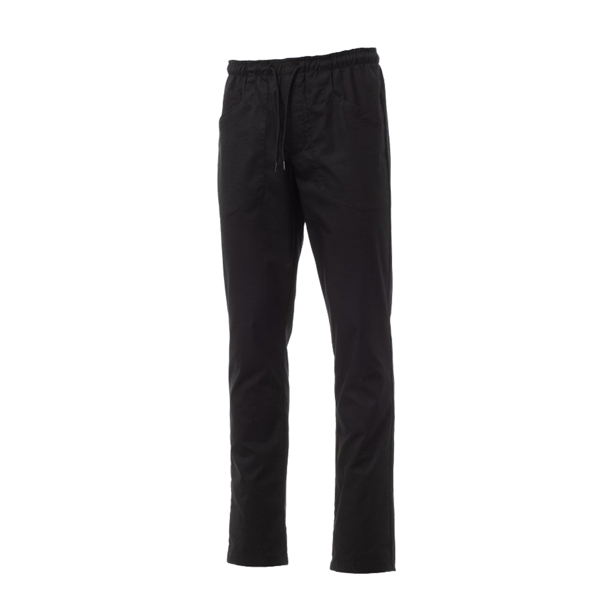 Pantalone da uomo multifunzione realizzato in tessuto Ripstop di cotone e Lycra® T400®, con ottime proprietà elastiche e traspiranti. Dotato di coulisse esterna e fascia interna in vita con elastico para sudore per il massimo comfort. Design funzionale con travette di rinforzo tono su tono.
