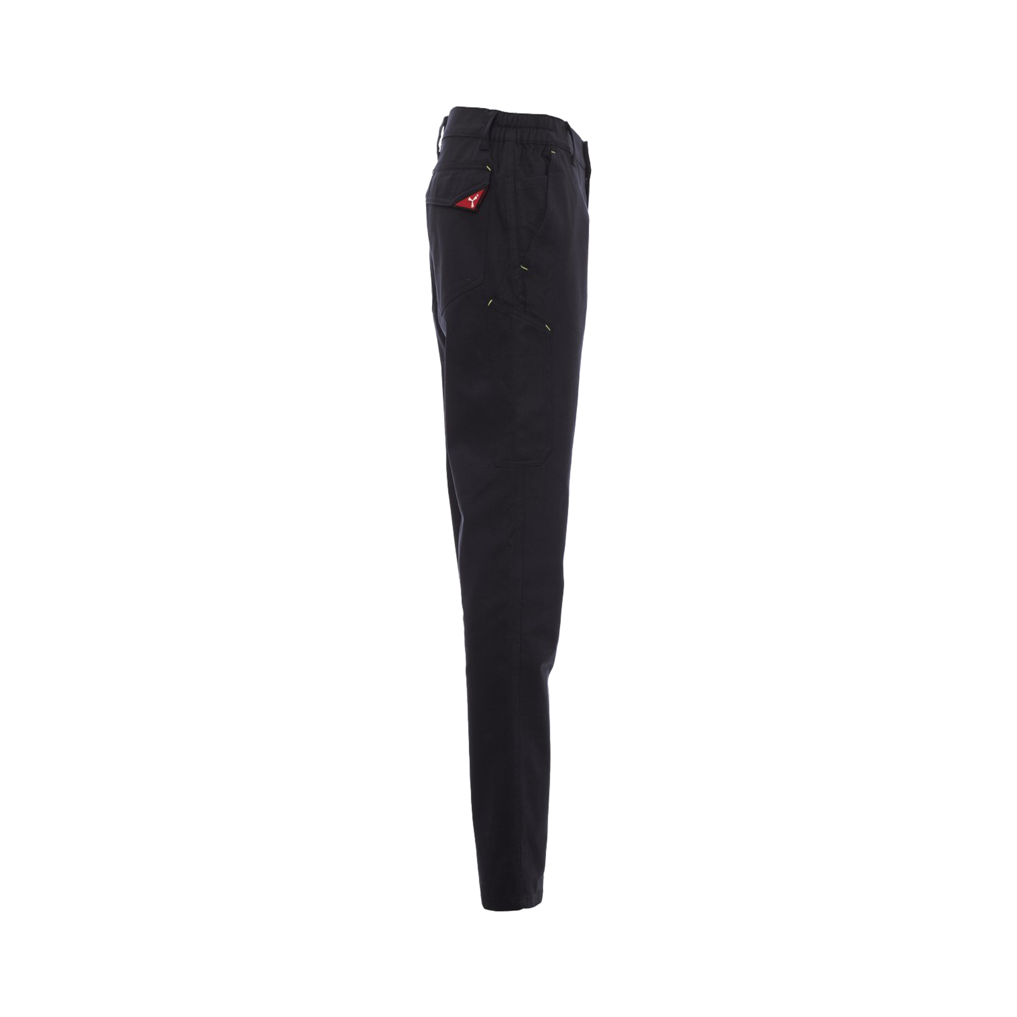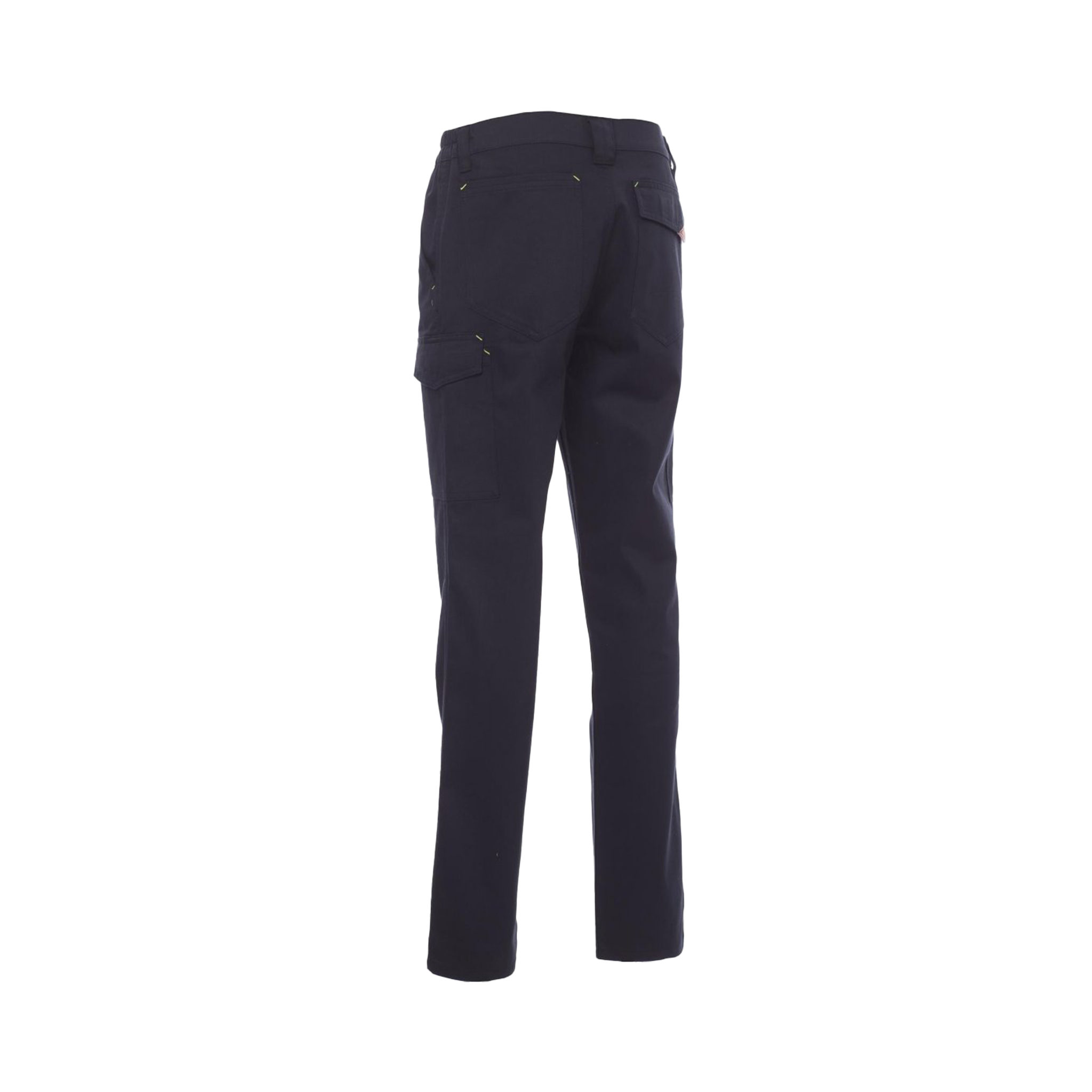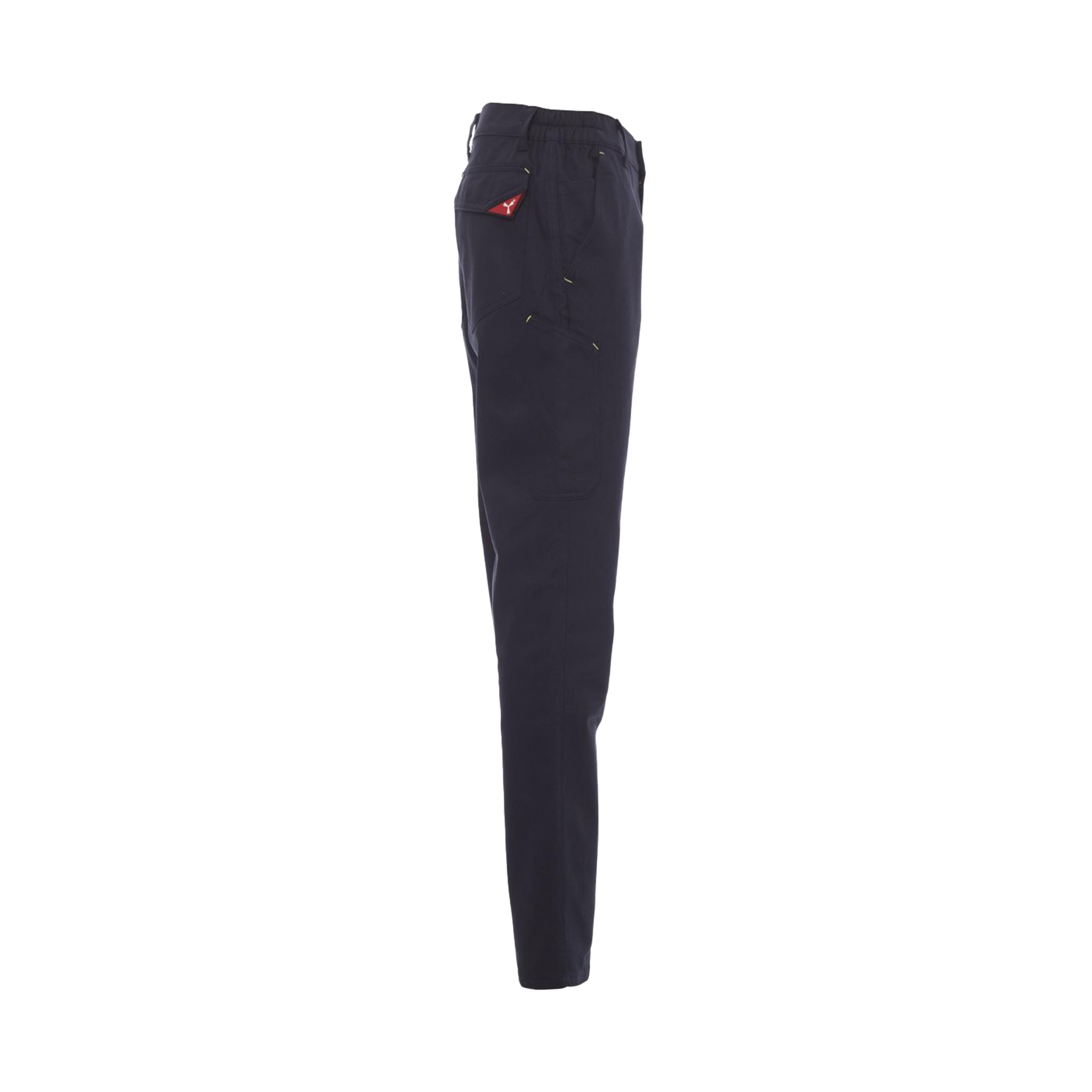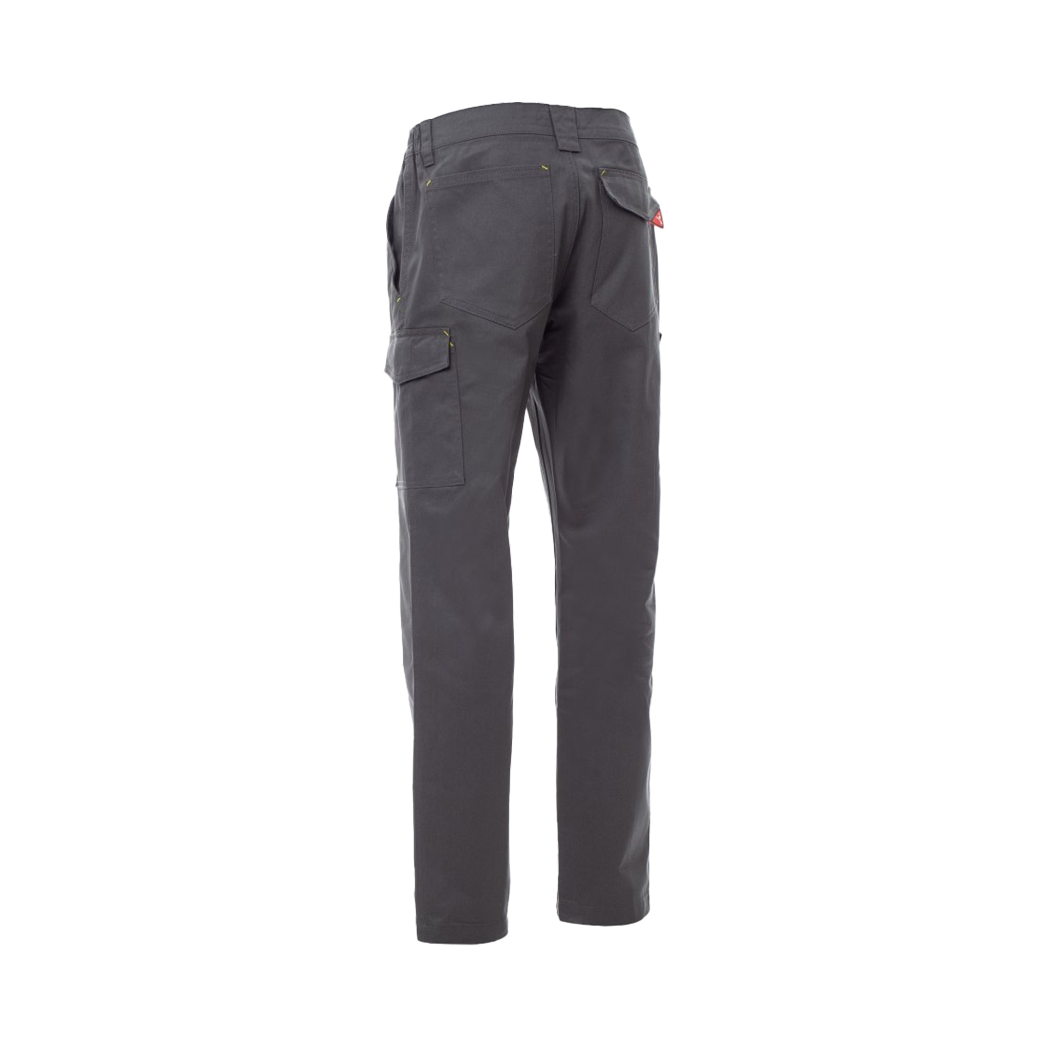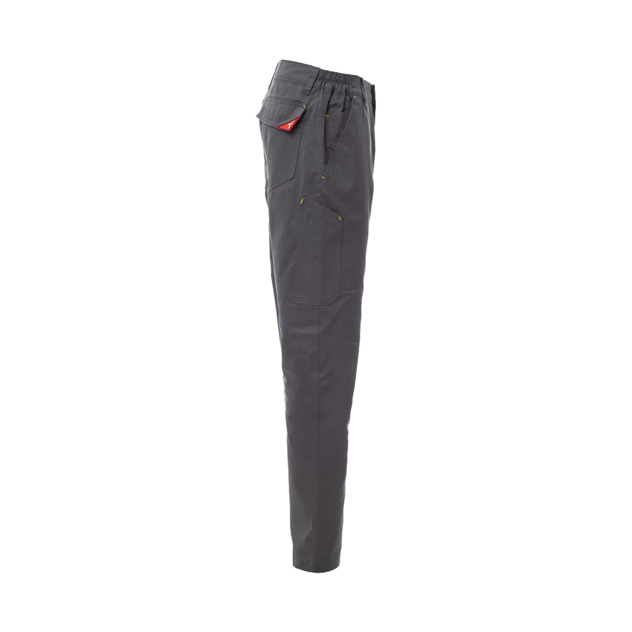 Pantalone da lavoro unisex in 100% cotone, resistente e funzionale. Vita con elastico laterale e passanti, chiusura con zip e bottone. Cuciture rinforzate a doppio ago nel cavallo e all’interno gamba. Dotato di numerose tasche funzionali, incluso il sistema intelligente LOCK SYSTEM per una maggiore praticità e sicurezza durante l’uso.