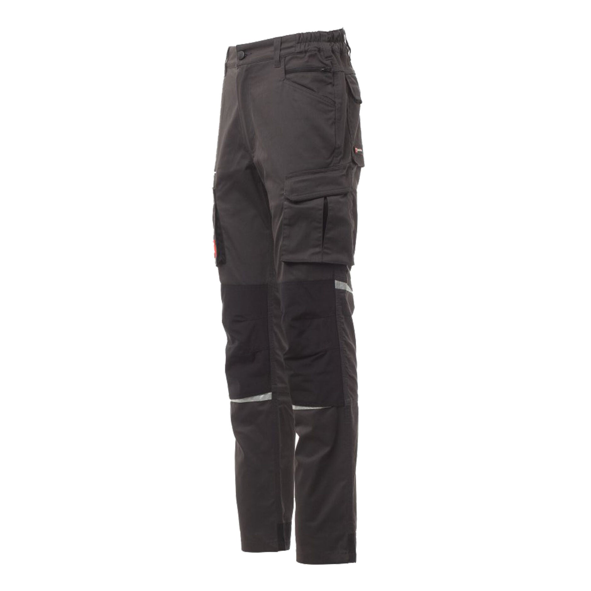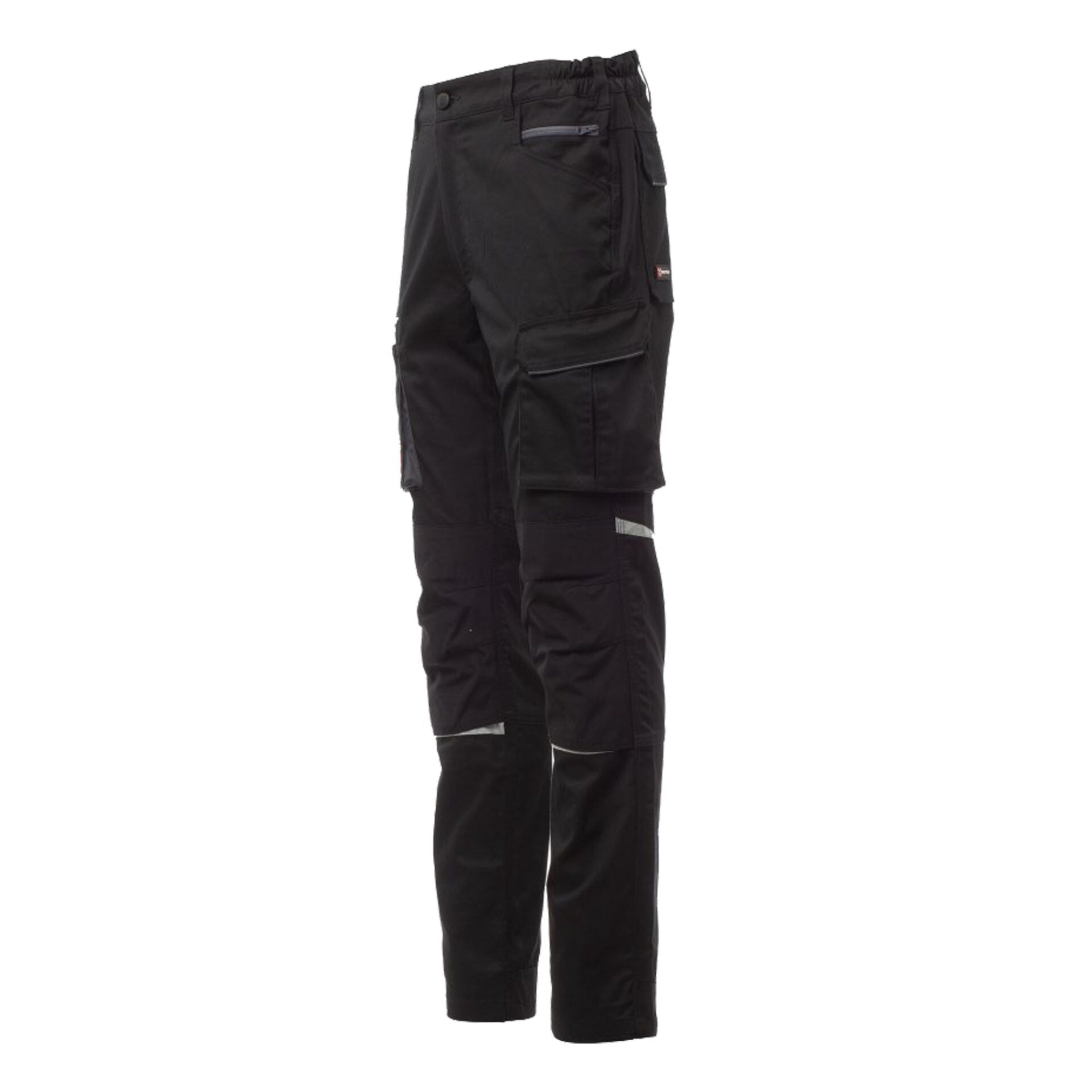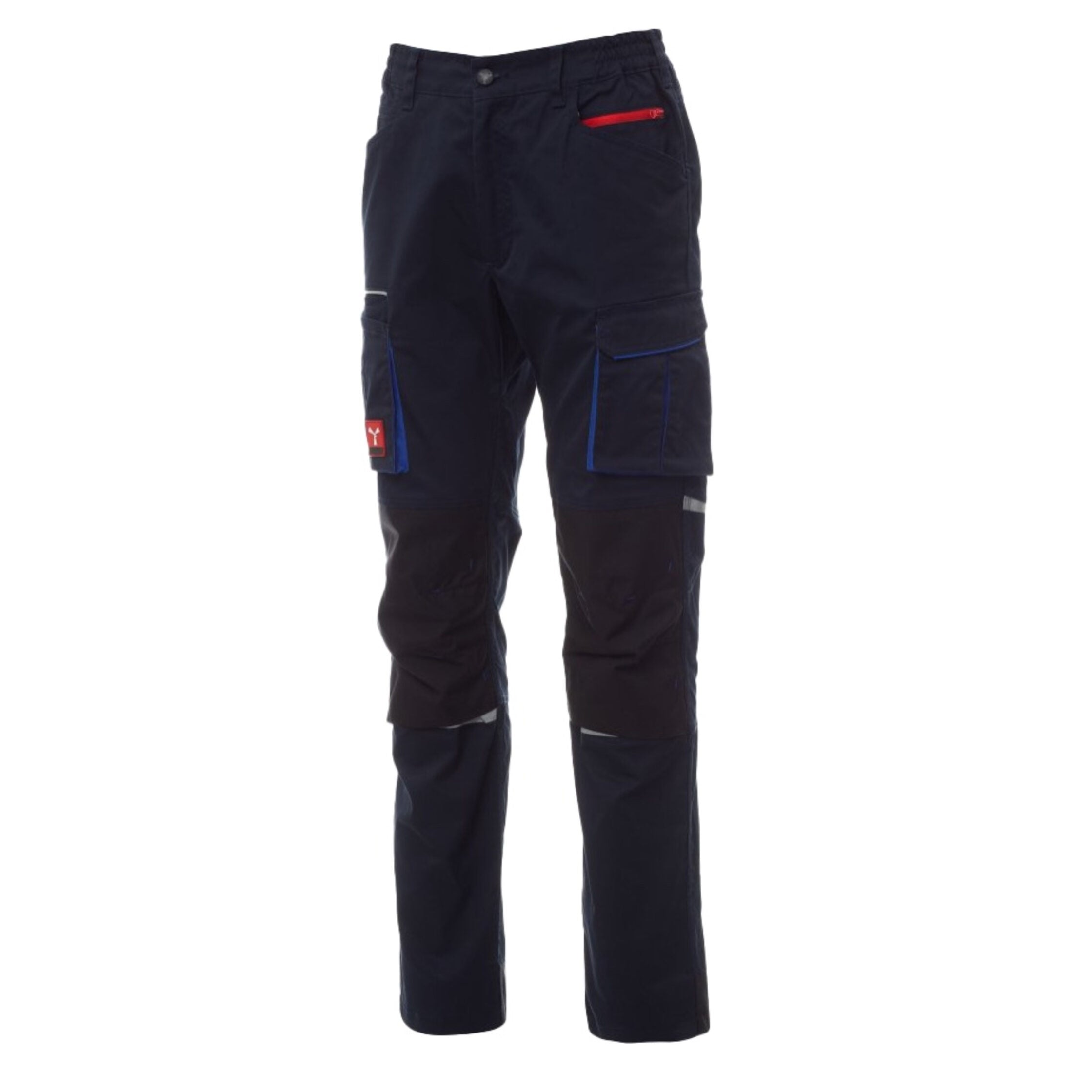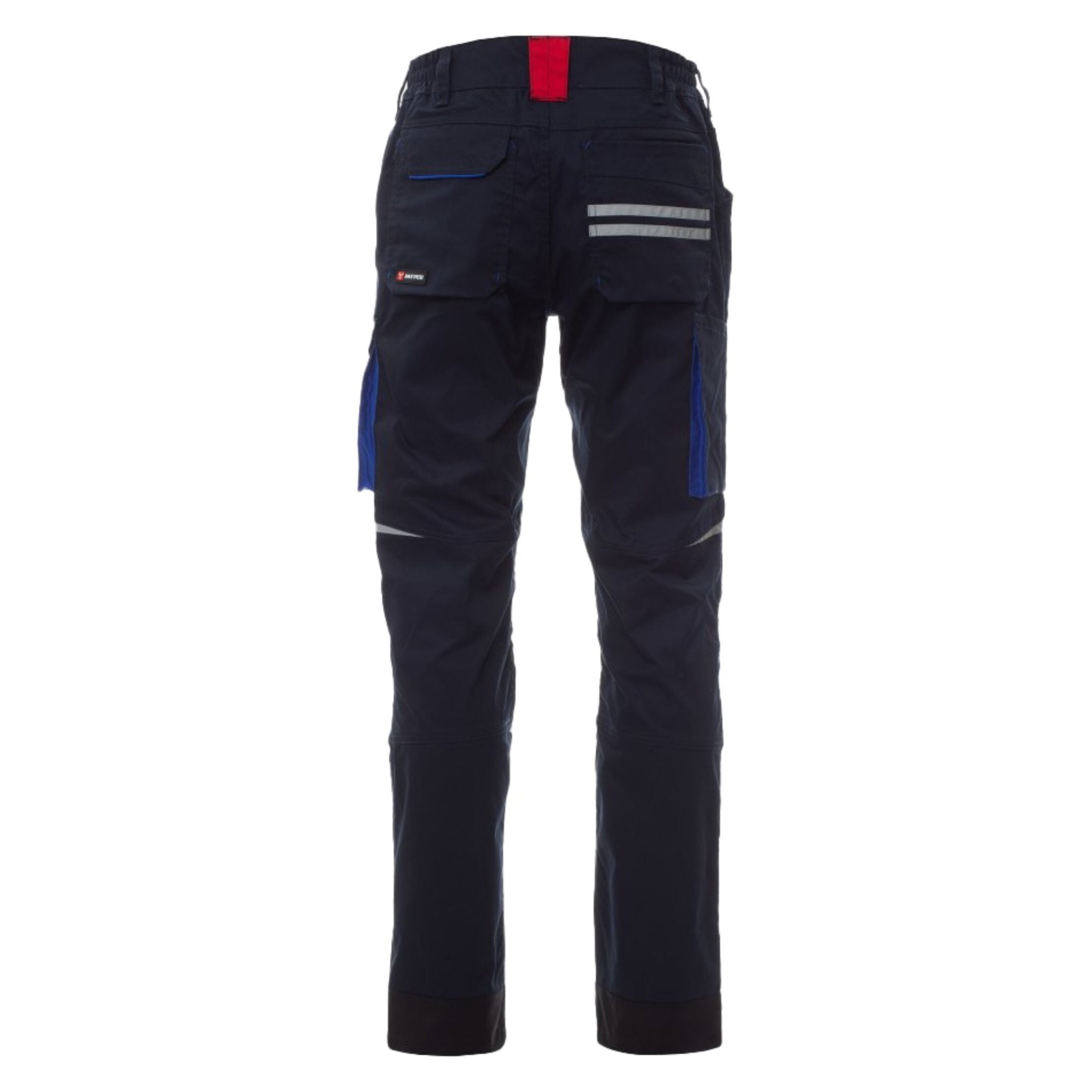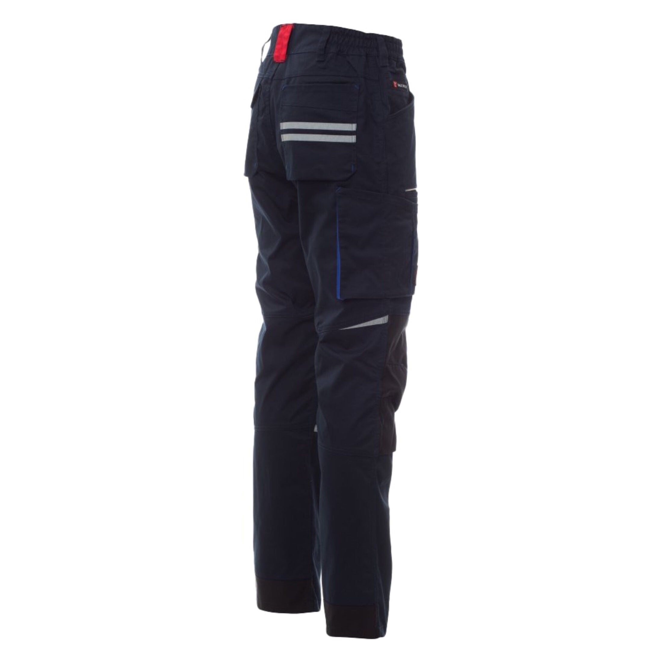 Pantalone unisex multistagione in tessuto stretch, progettato per offrire massima libertà di movimento e comfort. Dotato di elastici laterali, passanti in vita, chiusura con zip e bottone personalizzato. Ideale per ambienti professionali come edilizia, logistica e industria, è ricco di dettagli funzionali e rinforzi strategici.