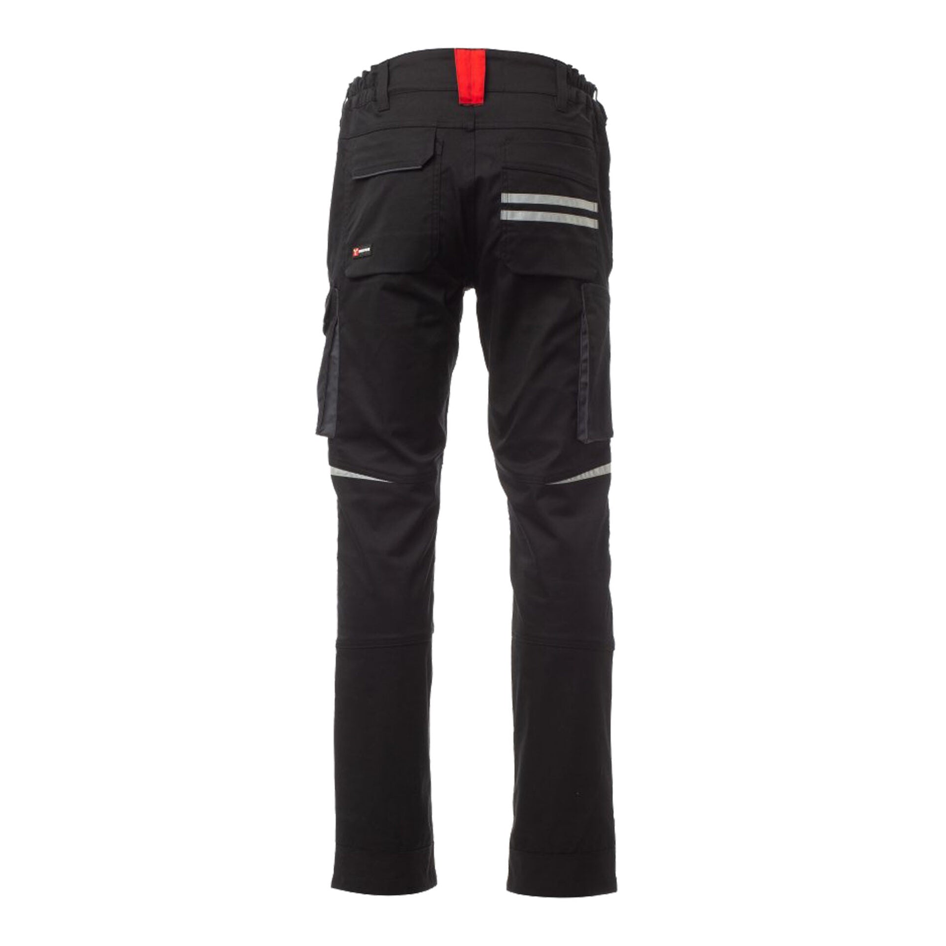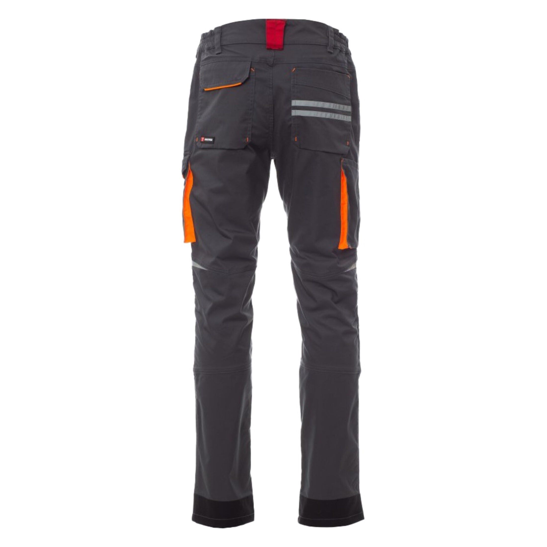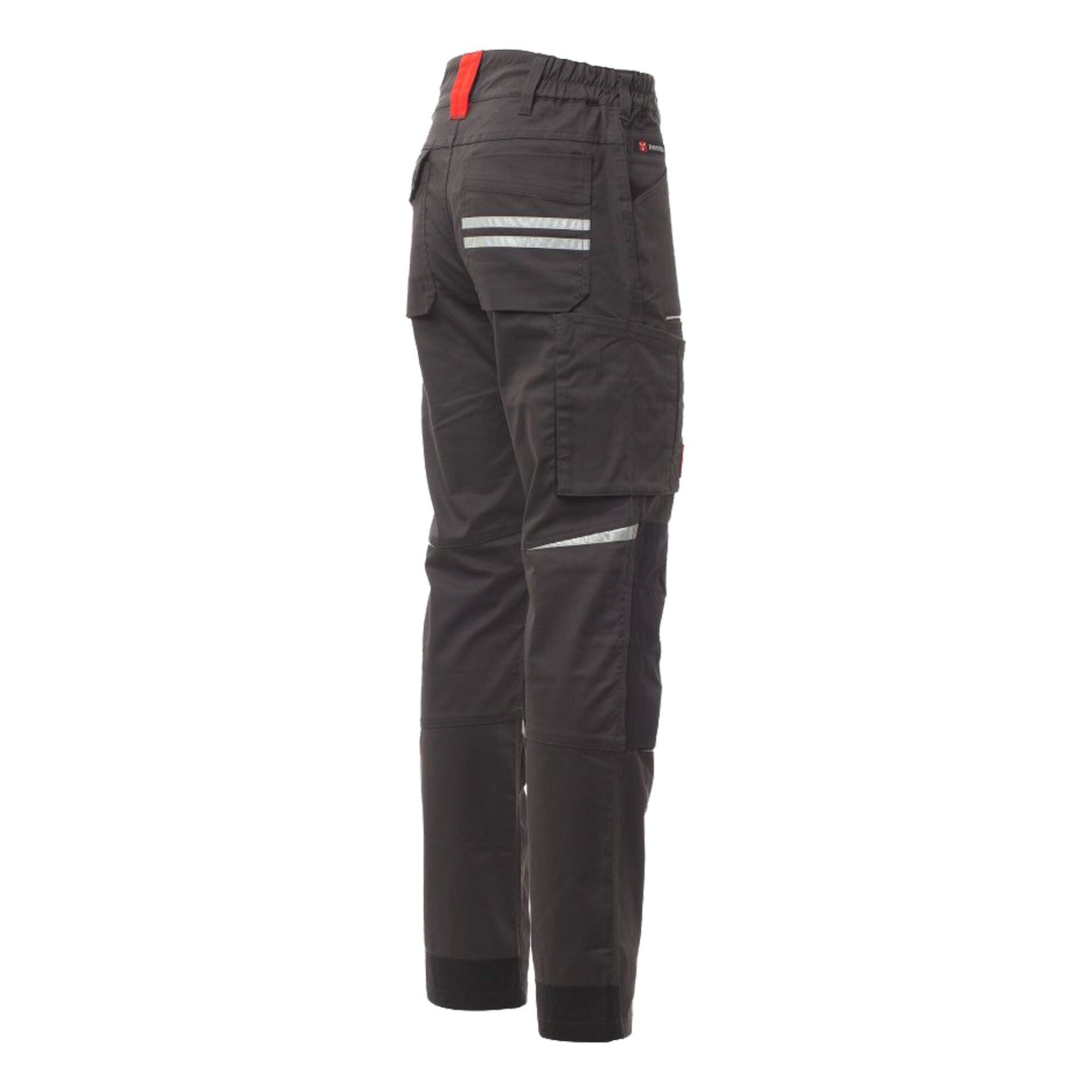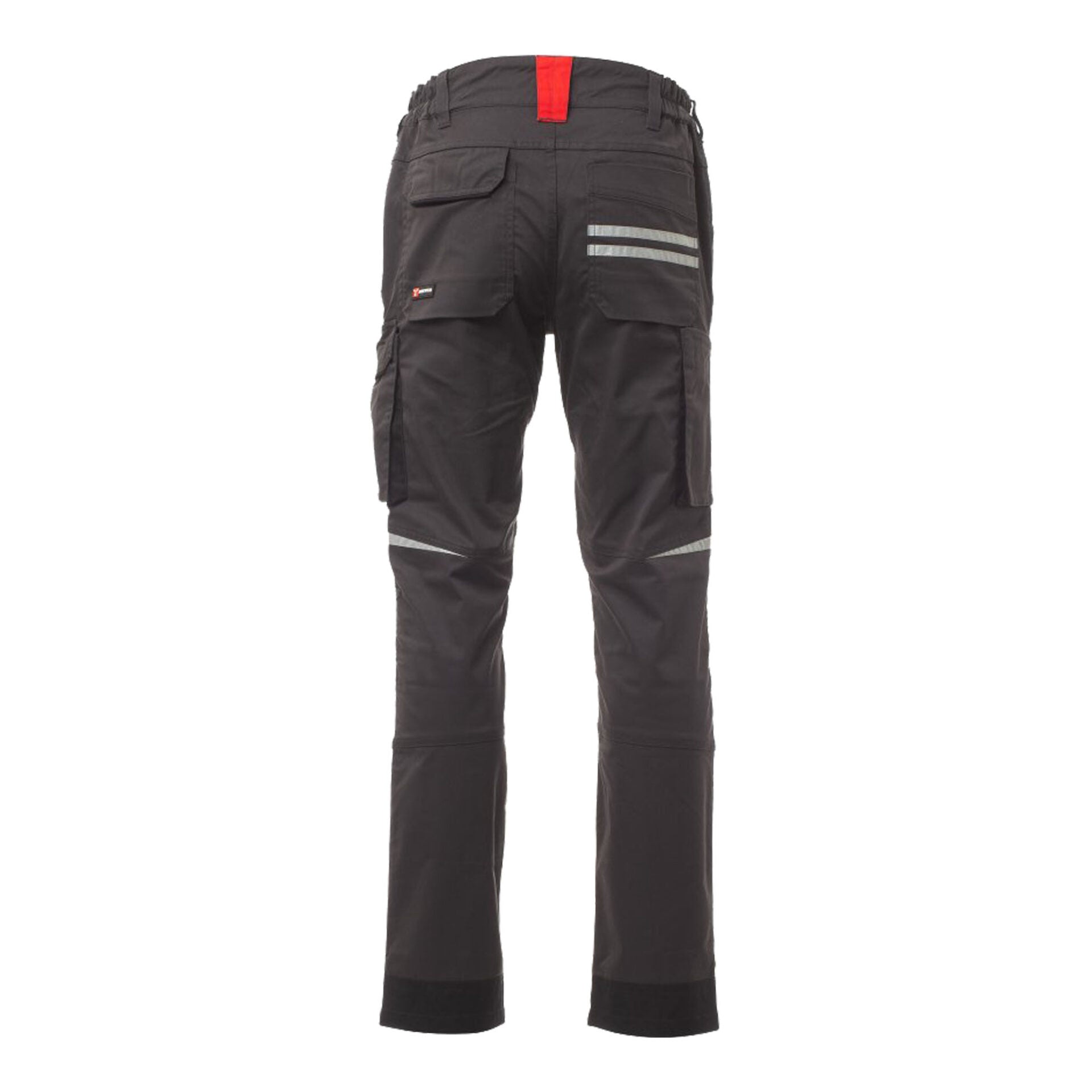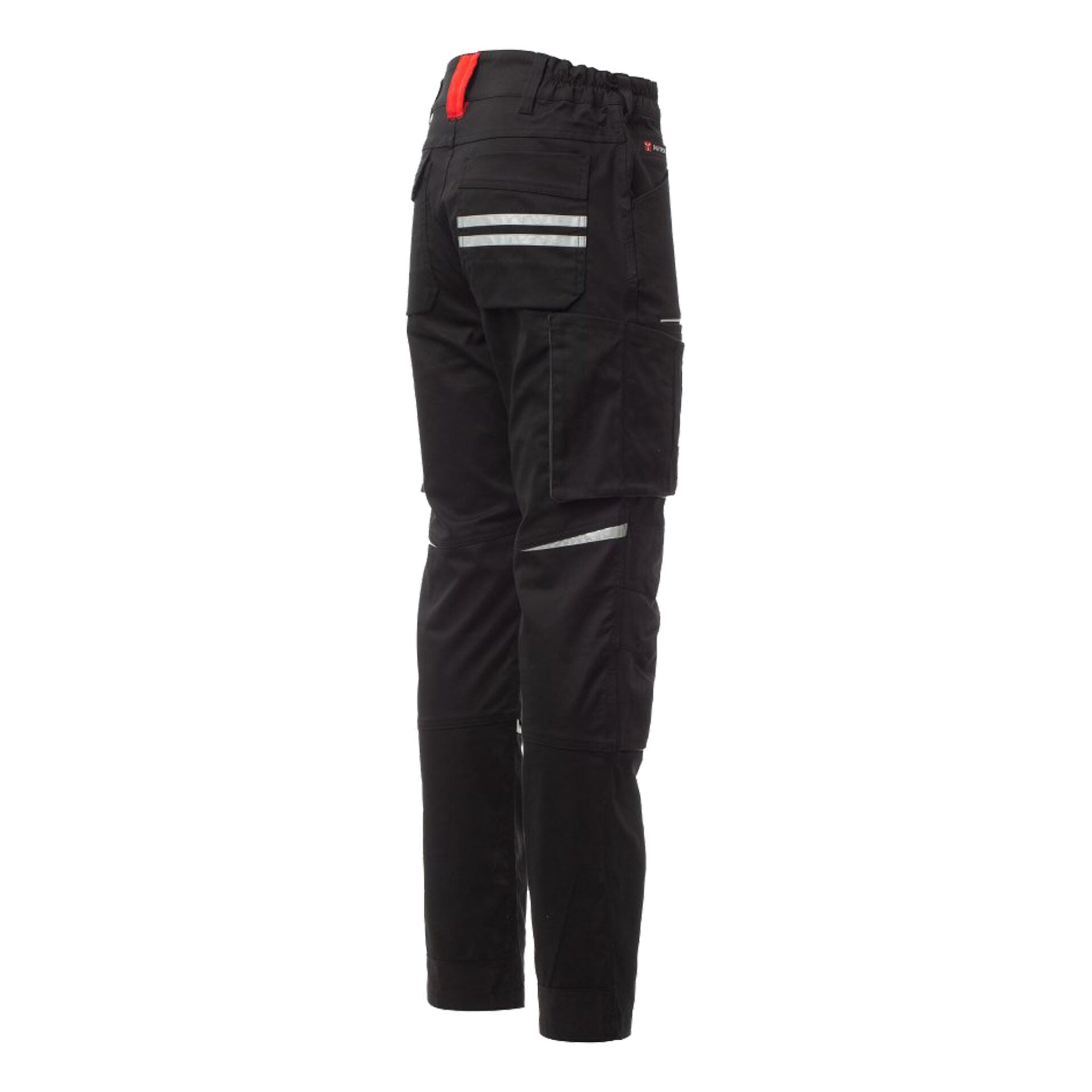Pantalone unisex multistagione in tessuto stretch, progettato per offrire massima libertà di movimento e comfort. Dotato di elastici laterali, passanti in vita, chiusura con zip e bottone personalizzato. Ideale per ambienti professionali come edilizia, logistica e industria, è ricco di dettagli funzionali e rinforzi strategici.