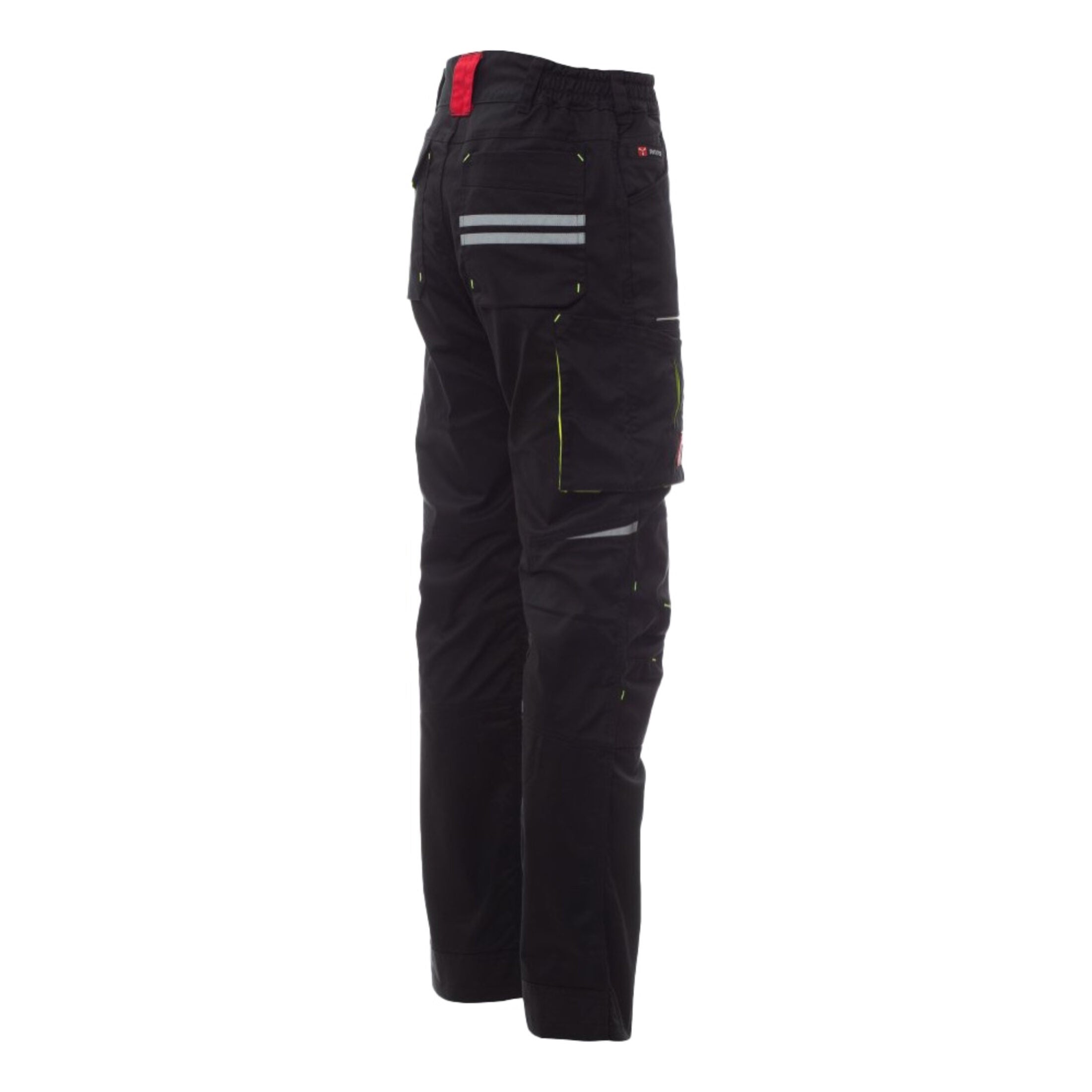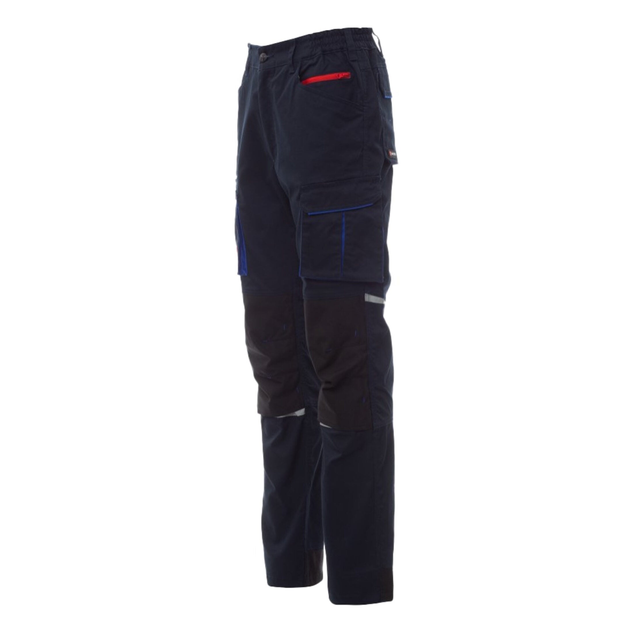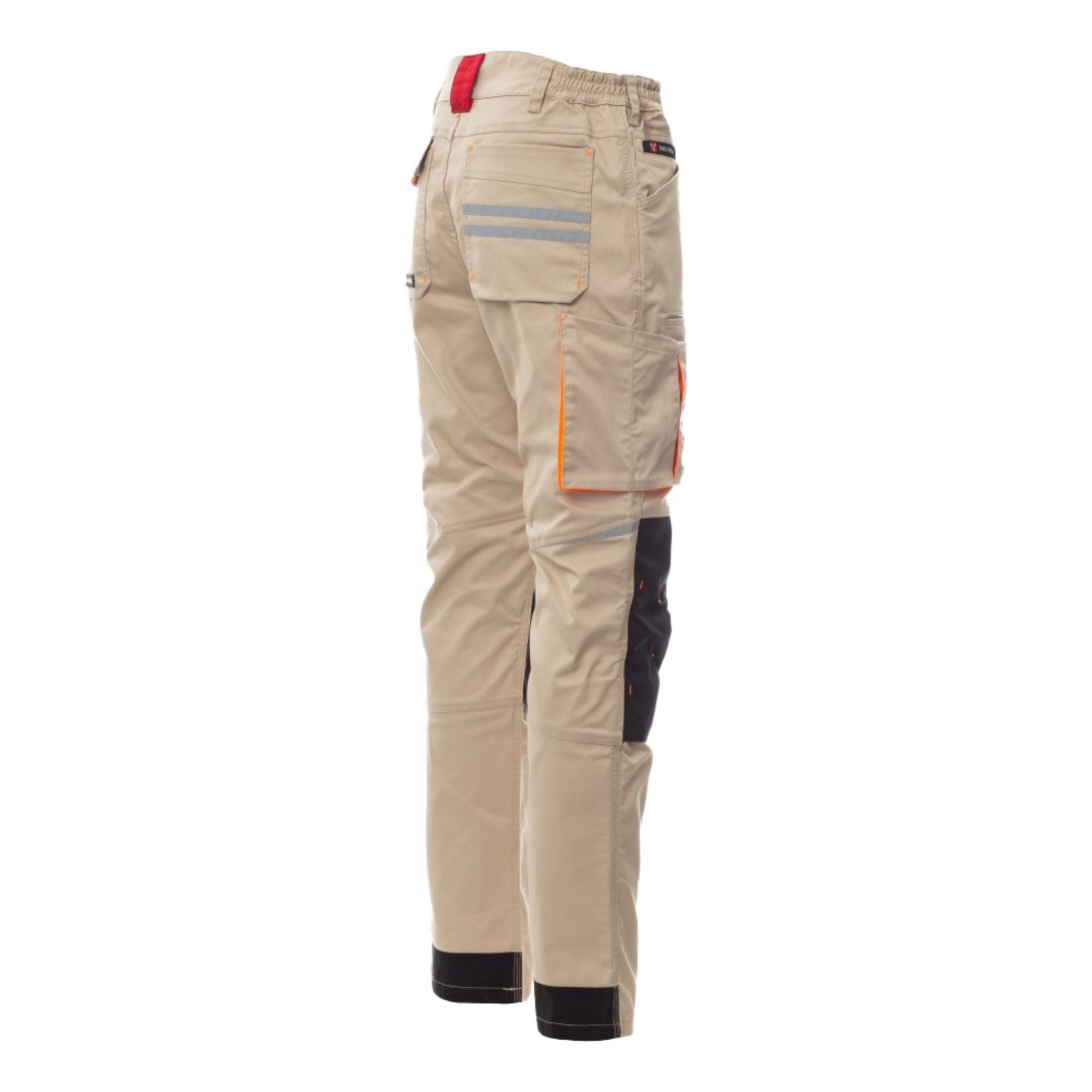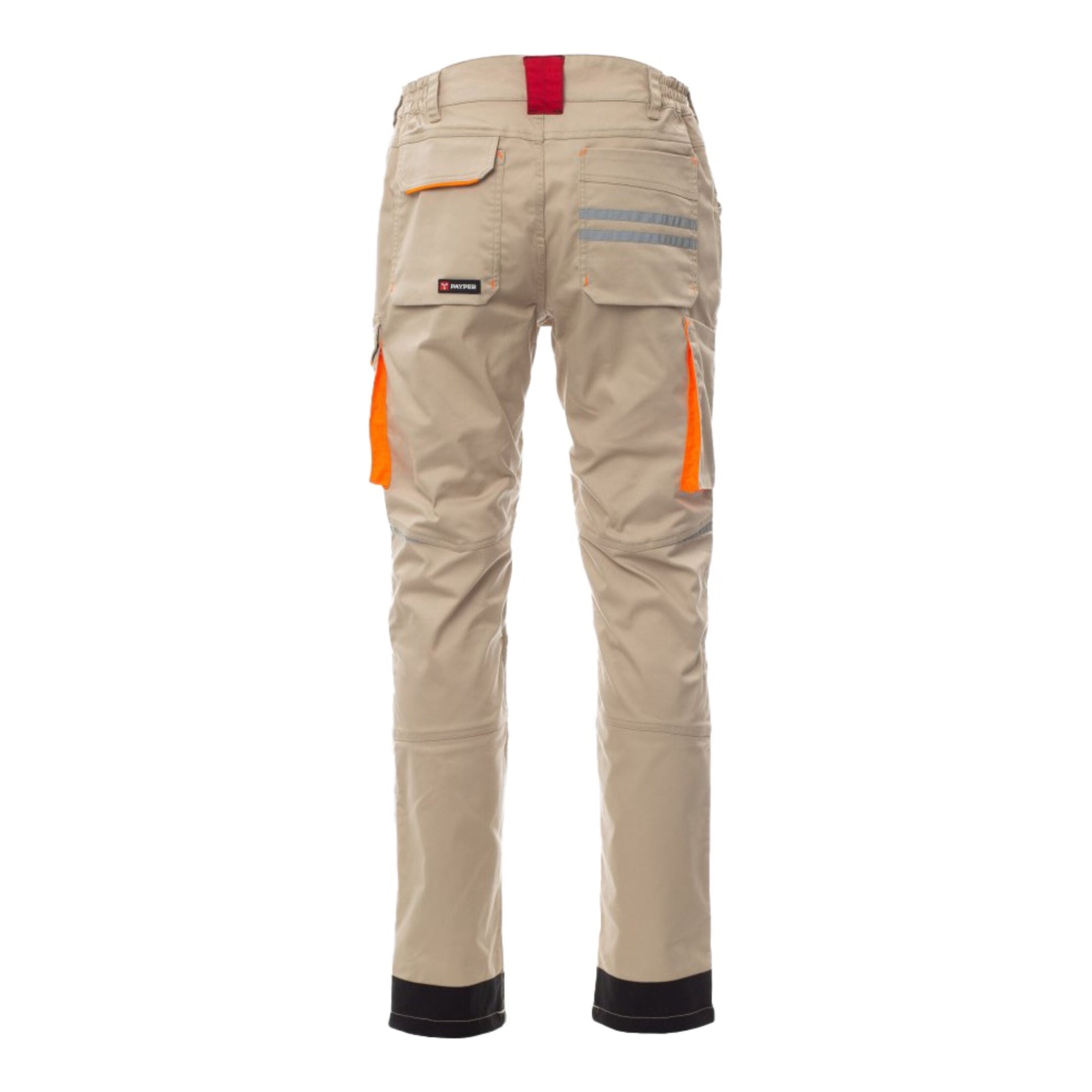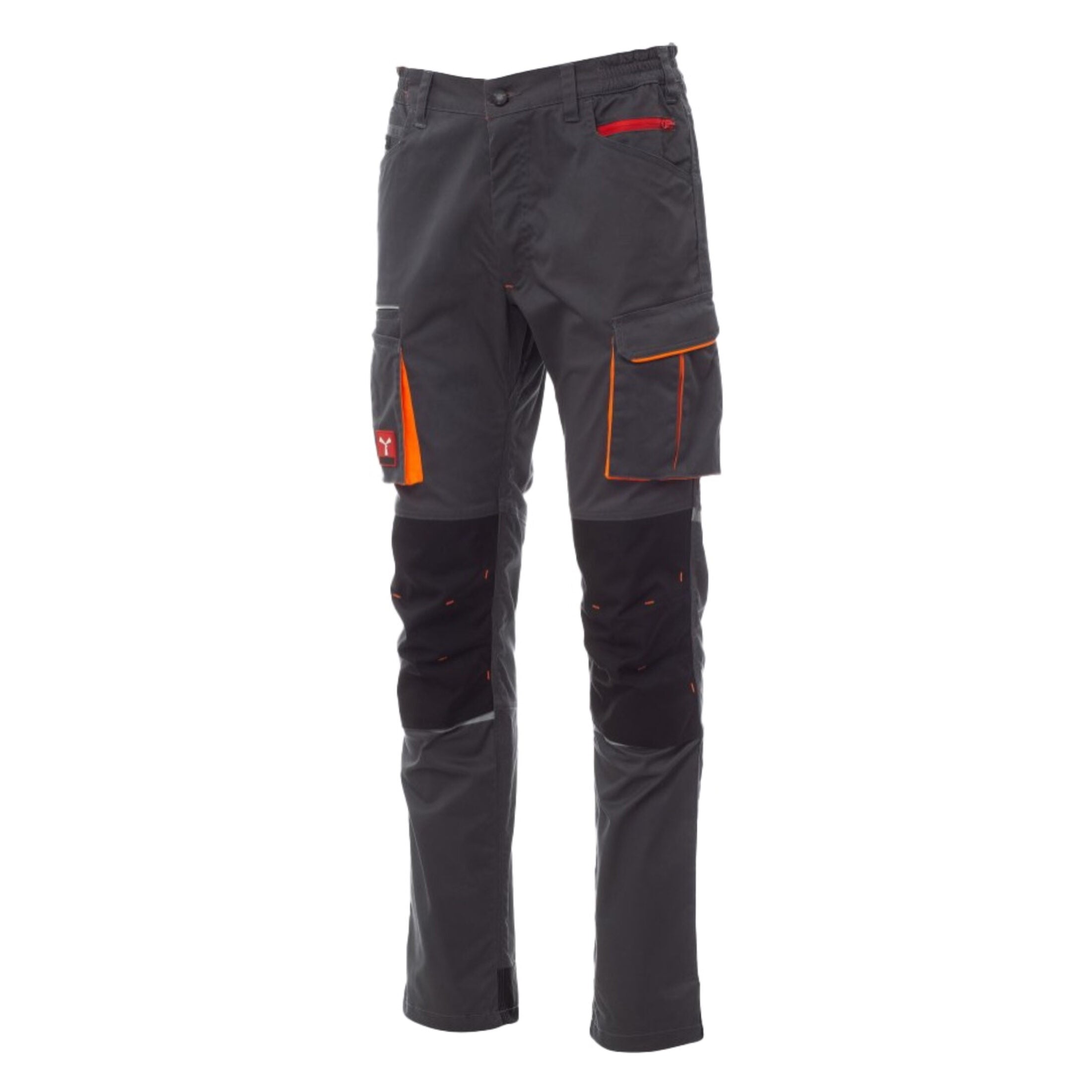 Pantalone unisex multistagione in tessuto stretch, progettato per offrire massima libertà di movimento e comfort. Dotato di elastici laterali, passanti in vita, chiusura con zip e bottone personalizzato. Ideale per ambienti professionali come edilizia, logistica e industria, è ricco di dettagli funzionali e rinforzi strategici.
