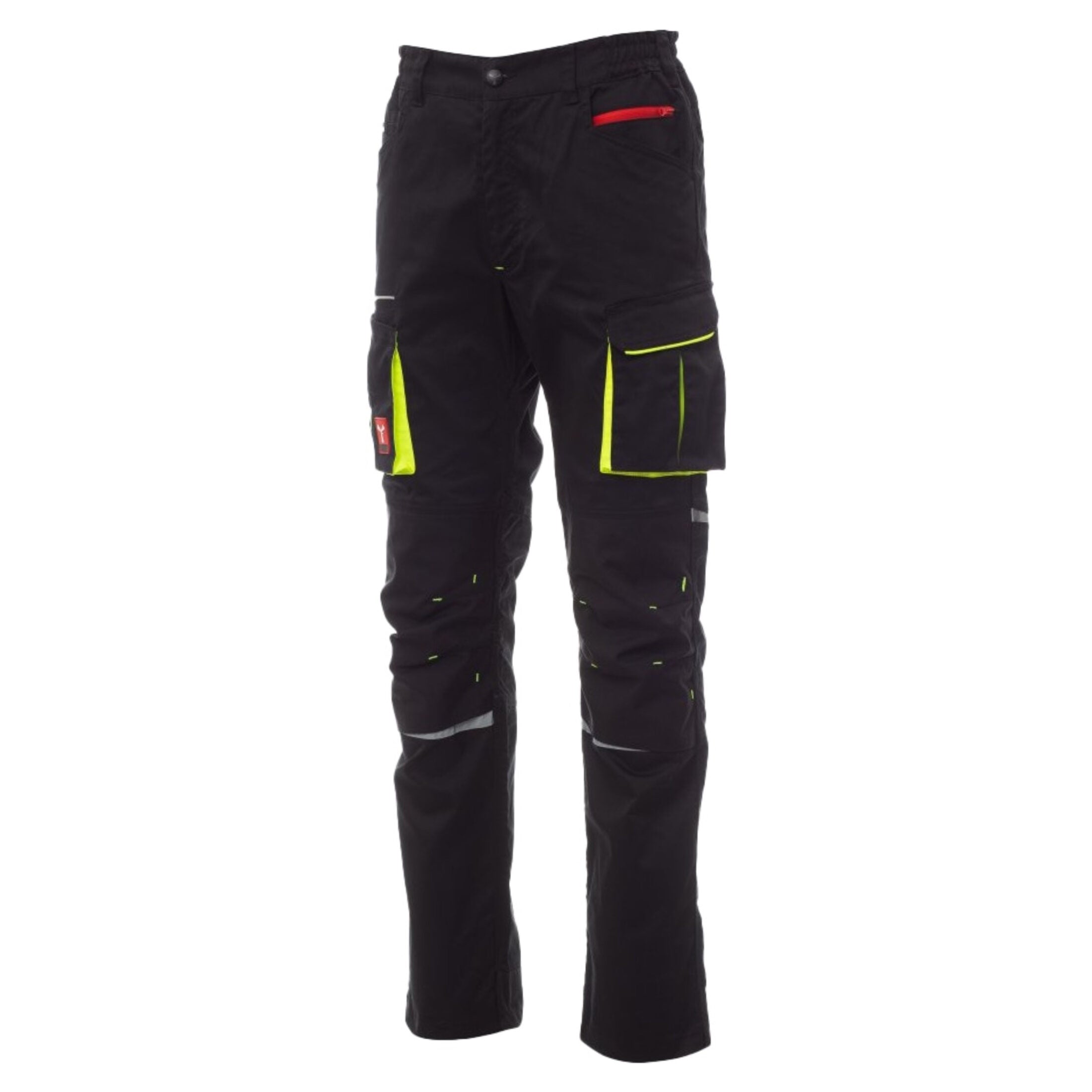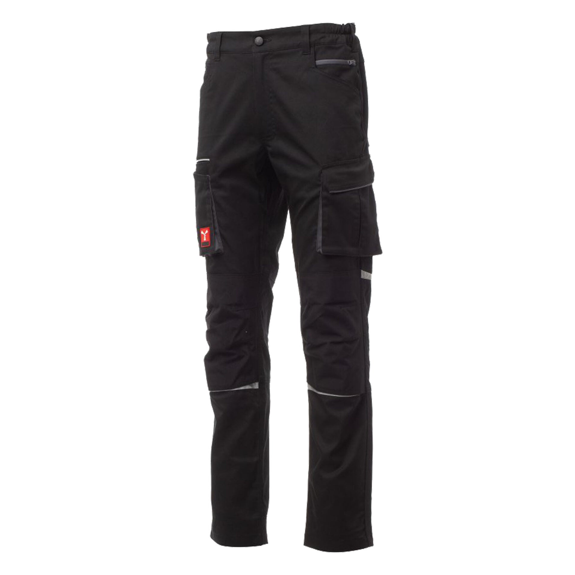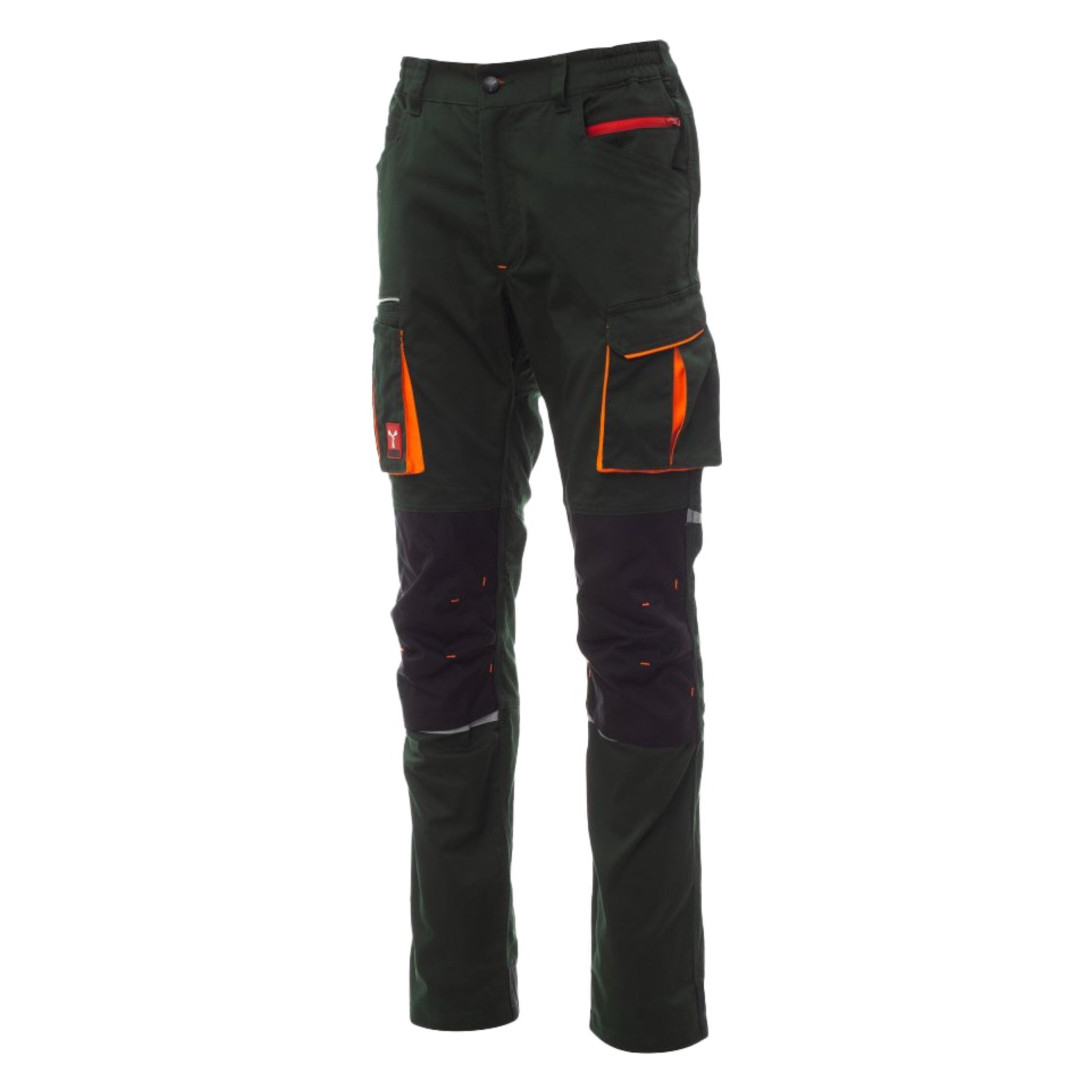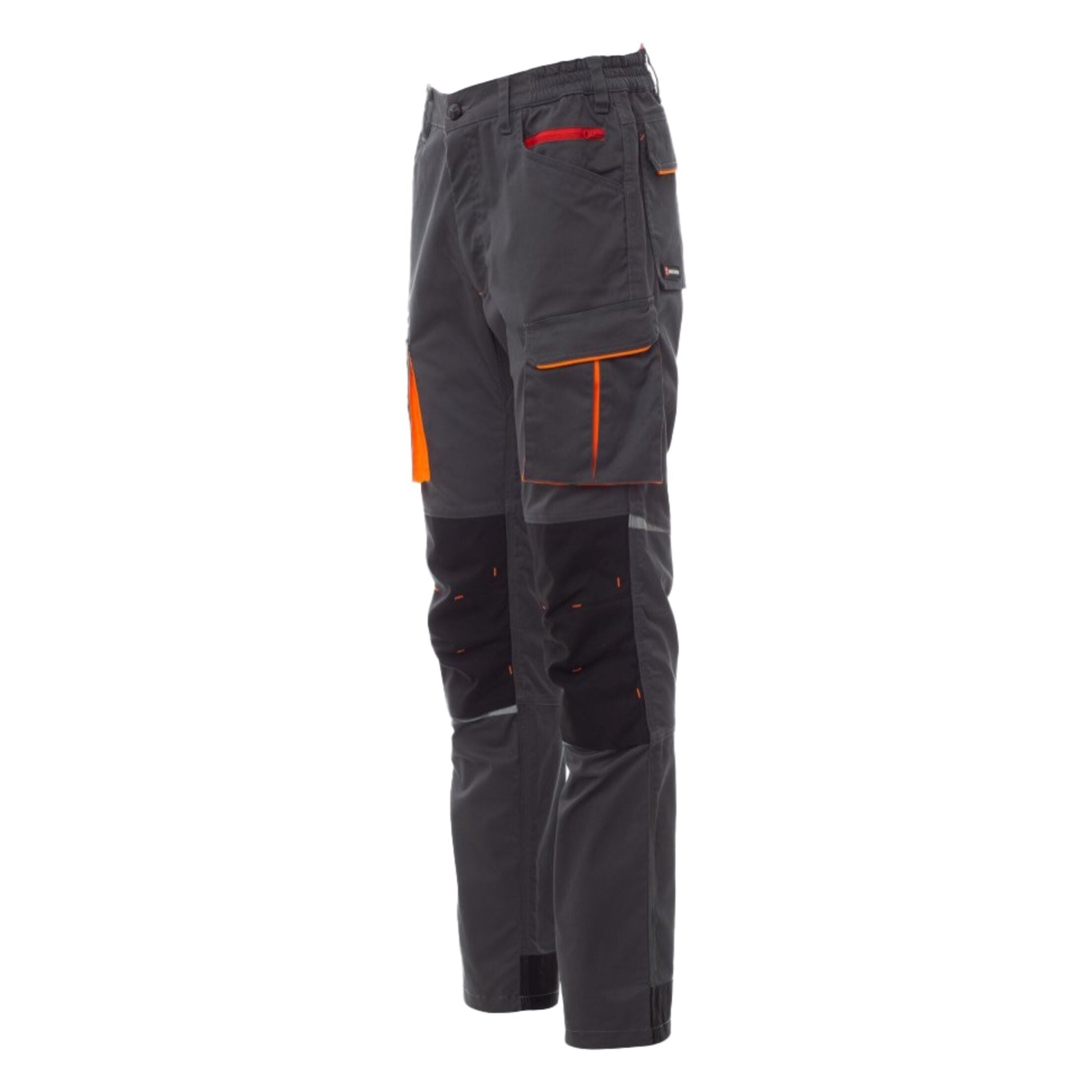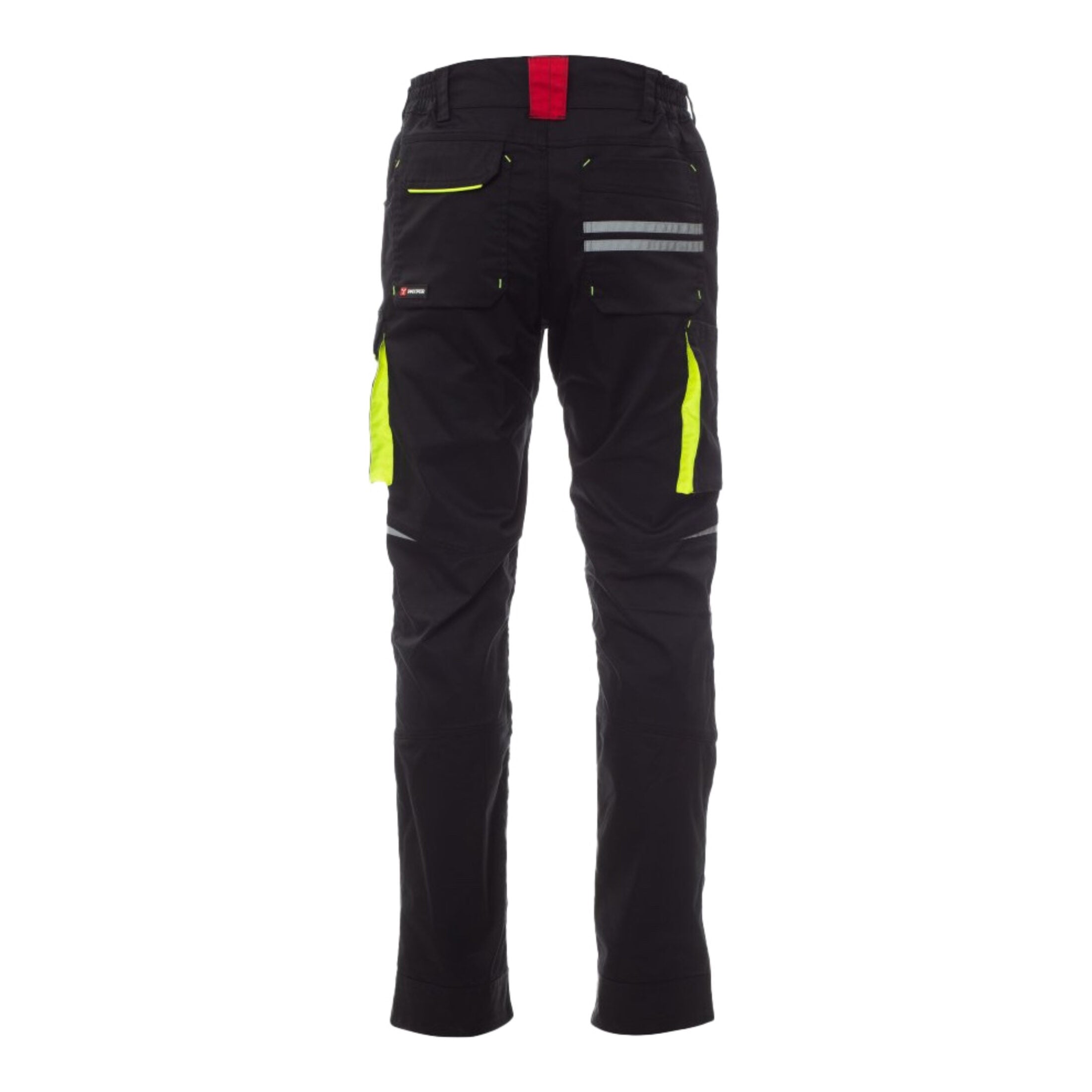 Pantalone unisex multistagione in tessuto stretch, progettato per offrire massima libertà di movimento e comfort. Dotato di elastici laterali, passanti in vita, chiusura con zip e bottone personalizzato. Ideale per ambienti professionali come edilizia, logistica e industria, è ricco di dettagli funzionali e rinforzi strategici.