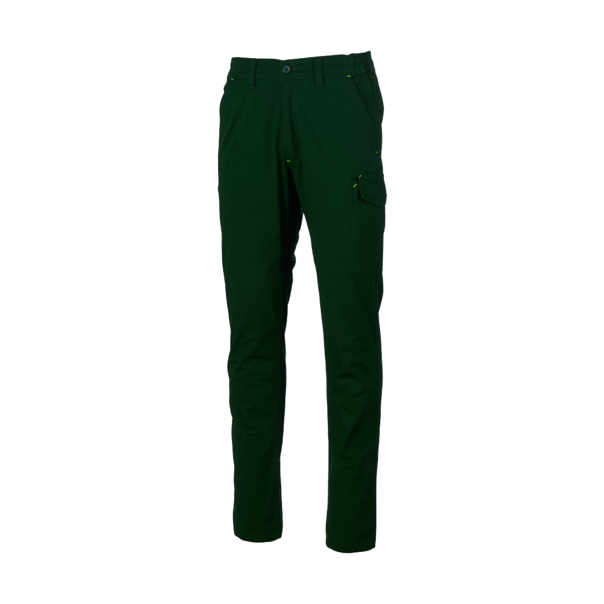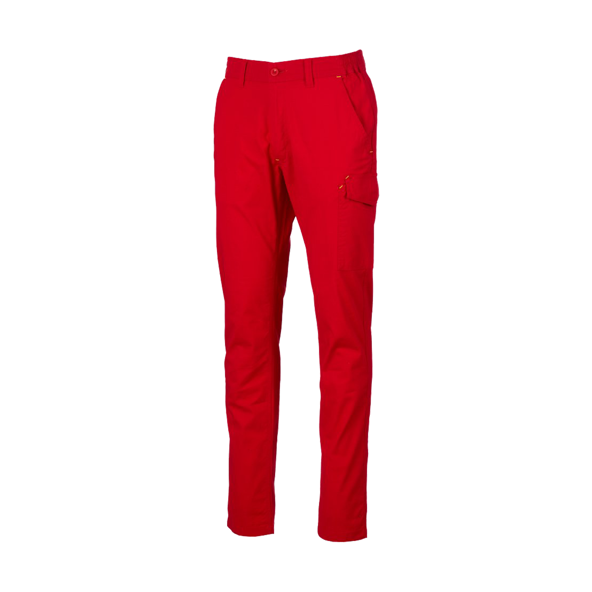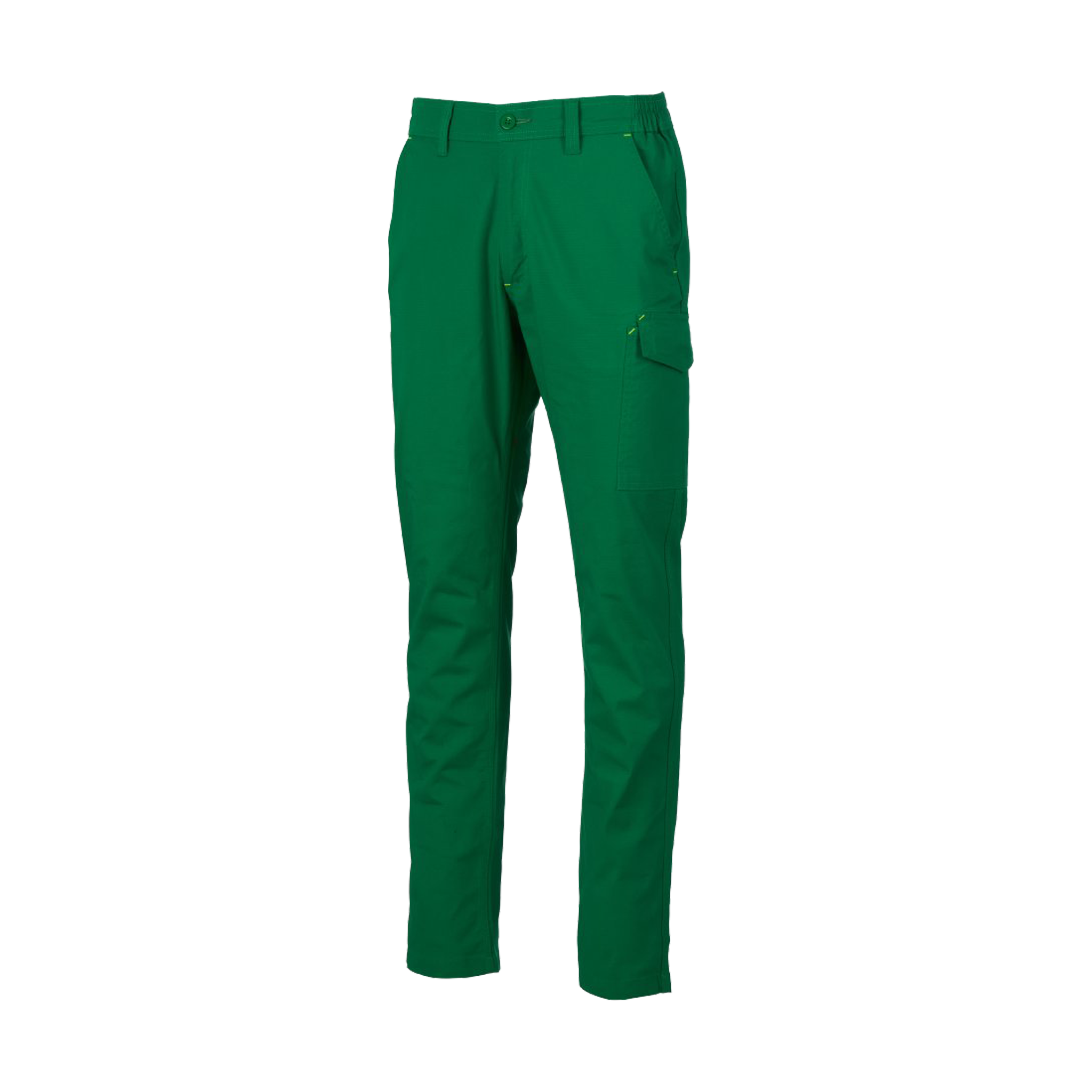 Pantalone realizzato in tessuto ripstop stretch, leggero, con passanti ed elastico in vita. Chiusura con zip e bottone in cintura. Cuciture rinforzate nel cavallo, interno gamba a triplo ago e cuciture fianco a doppio ago. Tasche anteriori a taglio classico, con taschino porta monete nella tasca destra e un porta metro laterale. Tasca laterale sinistra con patta di chiusura LOCK SYSTEM. Due tasche posteriori, di cui una con patta e velcro.