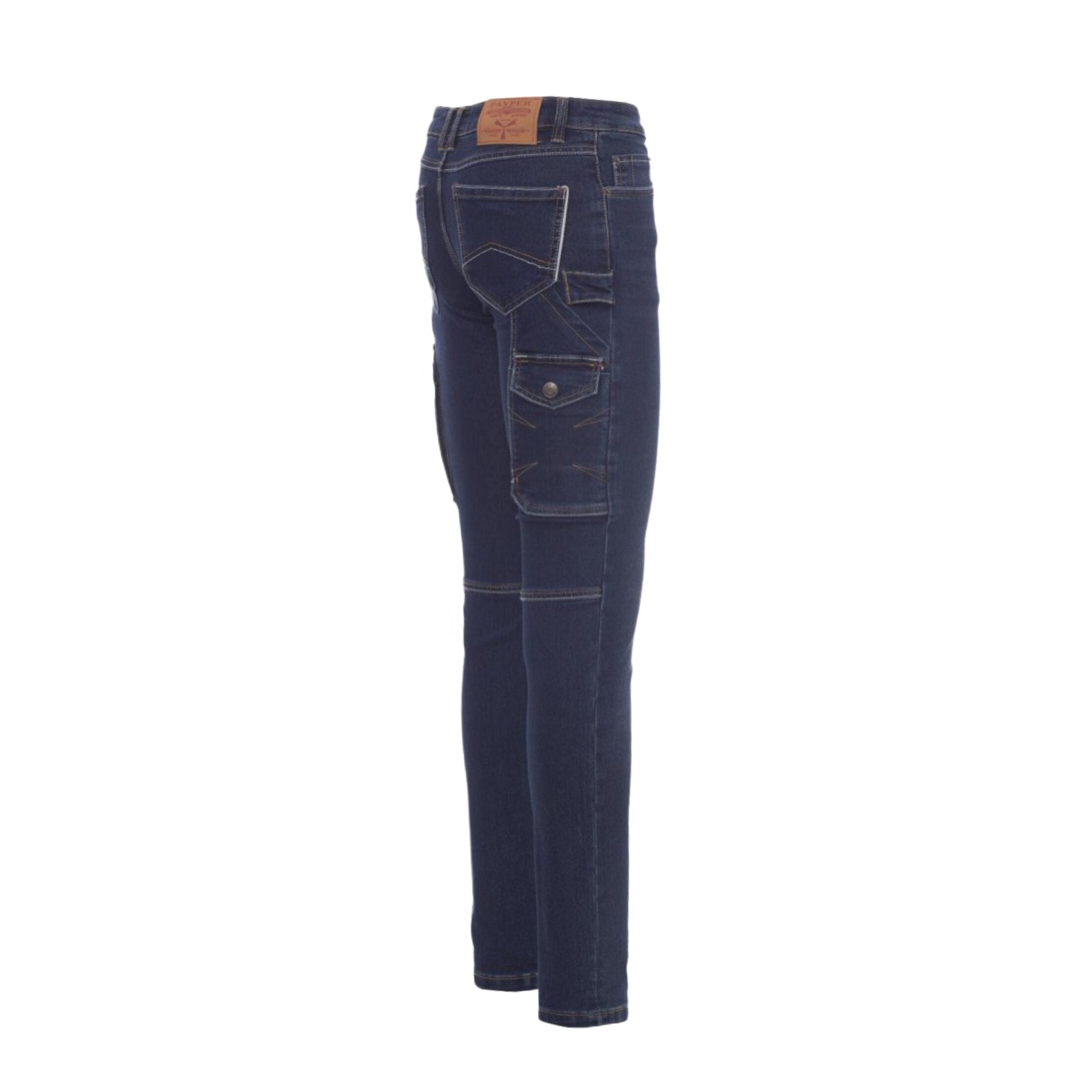 Pantalone multitasche da donna con taglio jeans a cinque tasche e finitura stone wash effetto consumato. Il capo è dotato di chiusura con zip in metallo e bottone, passanti in vita e gamba a tubo. Le cuciture sono rinforzate con filo grosso a contrasto e triplo ago sull’interno gamba. Il tessuto in denim stretch garantisce comfort e libertà di movimento.