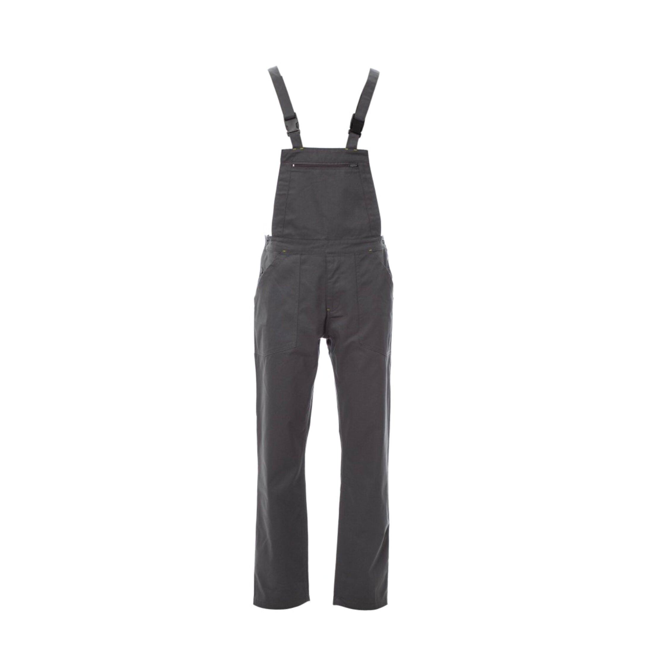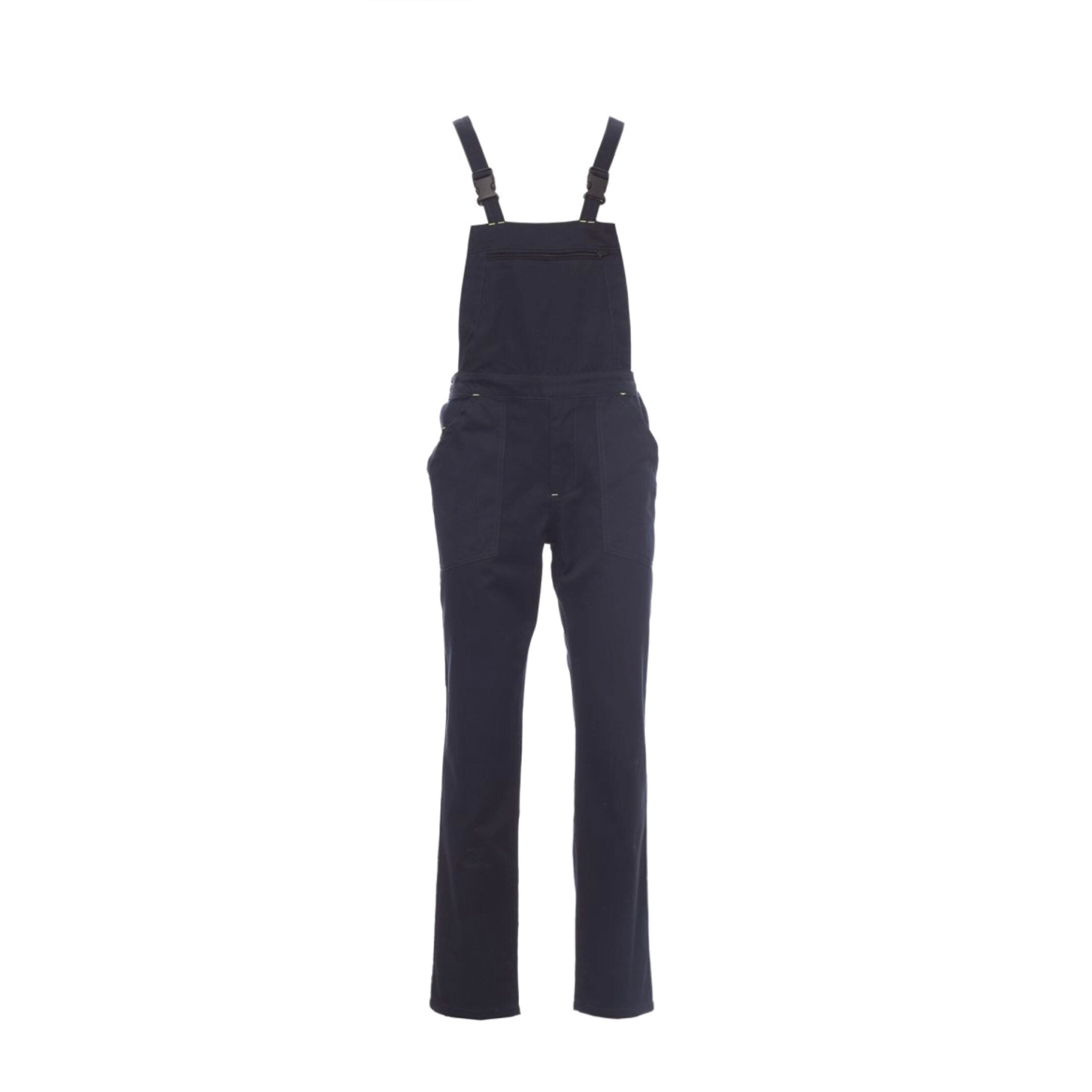 Pettorina con ampia protezione lombare, bretelle elasticizzate e fibbia con chiusura automatica. Presenta apertura laterale con bottoni e patta con zip. Elastico in vita per maggiore comfort e cuciture a doppio ago su cavallo e interno gamba per una resistenza superiore.