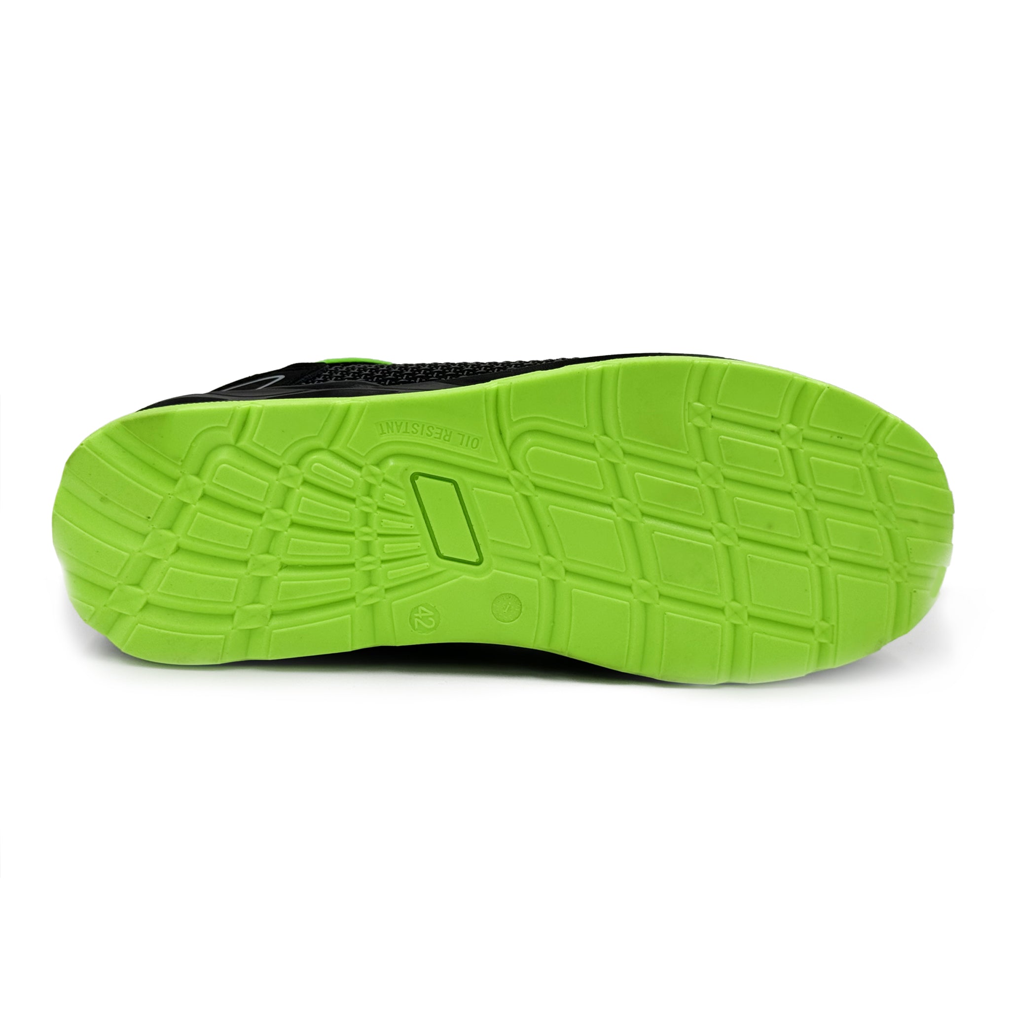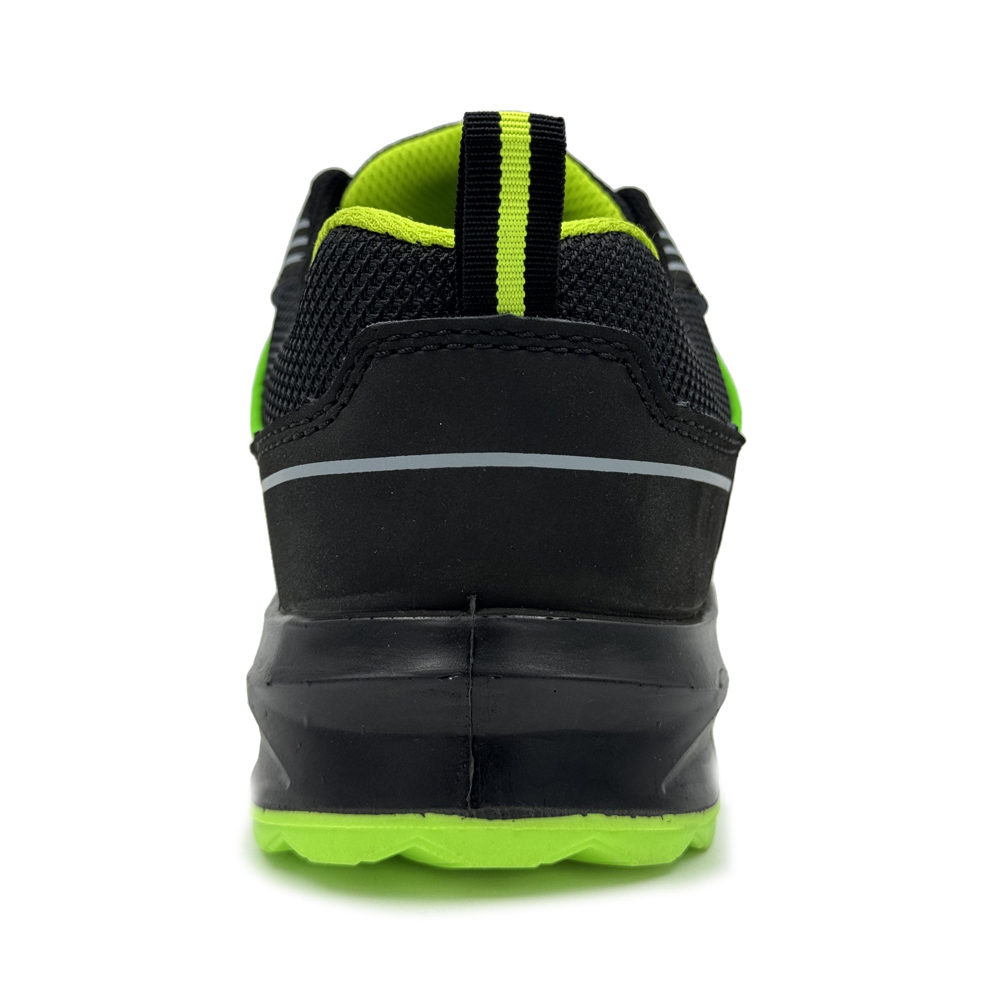 Scarpe antinfortunistiche leggere e versatili, adatte per uomo e donna. Il design moderno in nero con dettagli verde fluo le rende ideali per ambienti professionali dinamici e dallo stile tecnico. Perfette in tutte le stagioni, garantiscono protezione, traspirabilità e comfort prolungato.