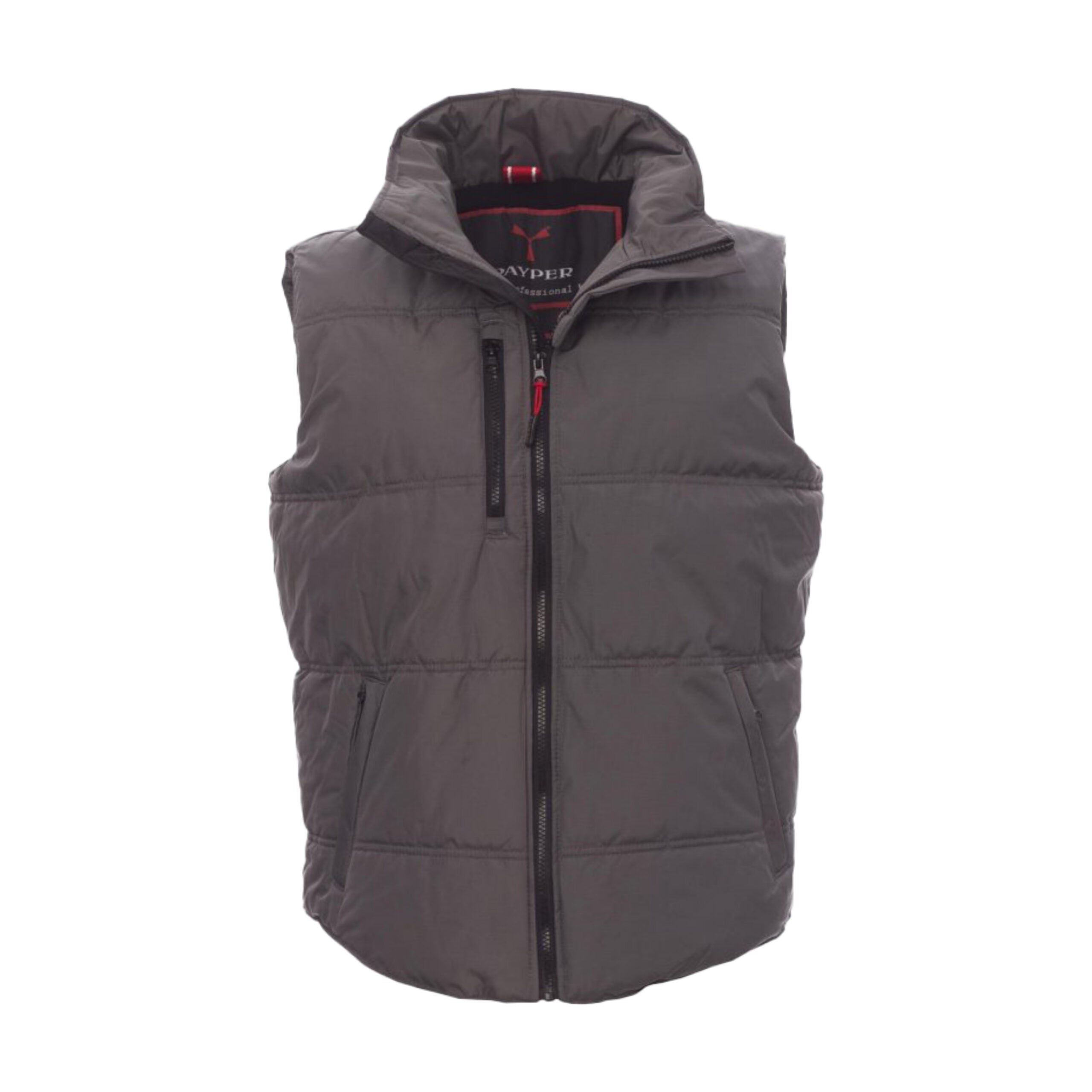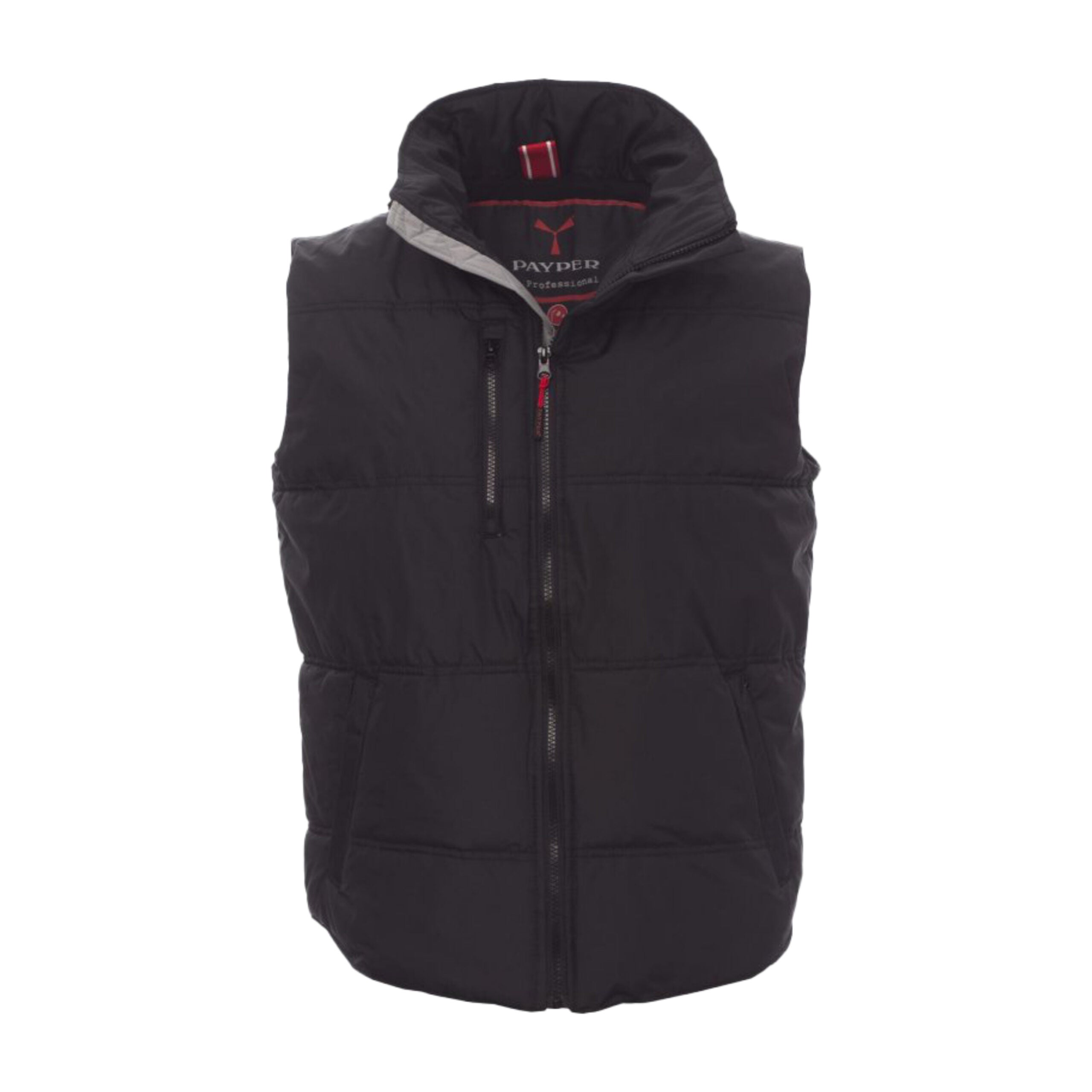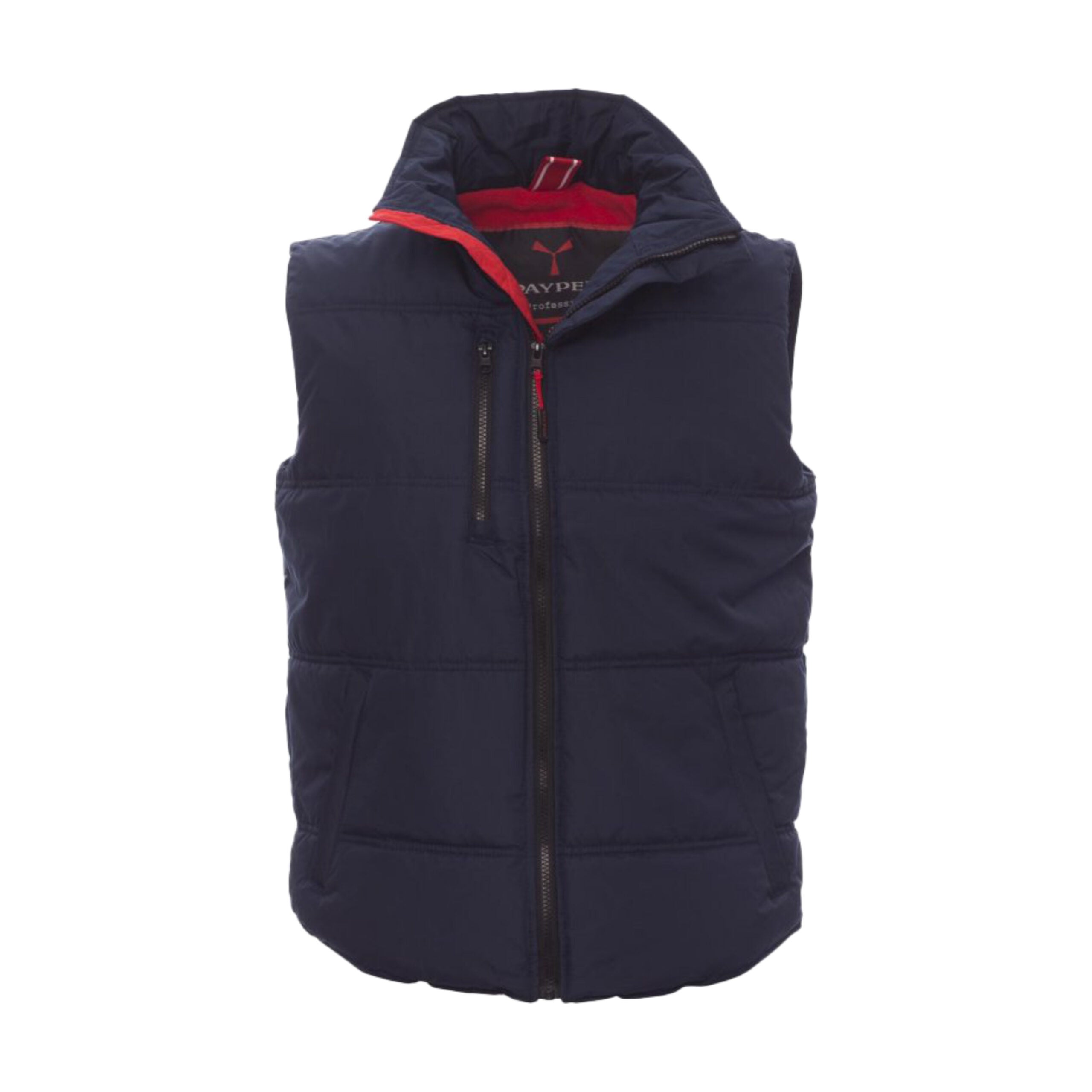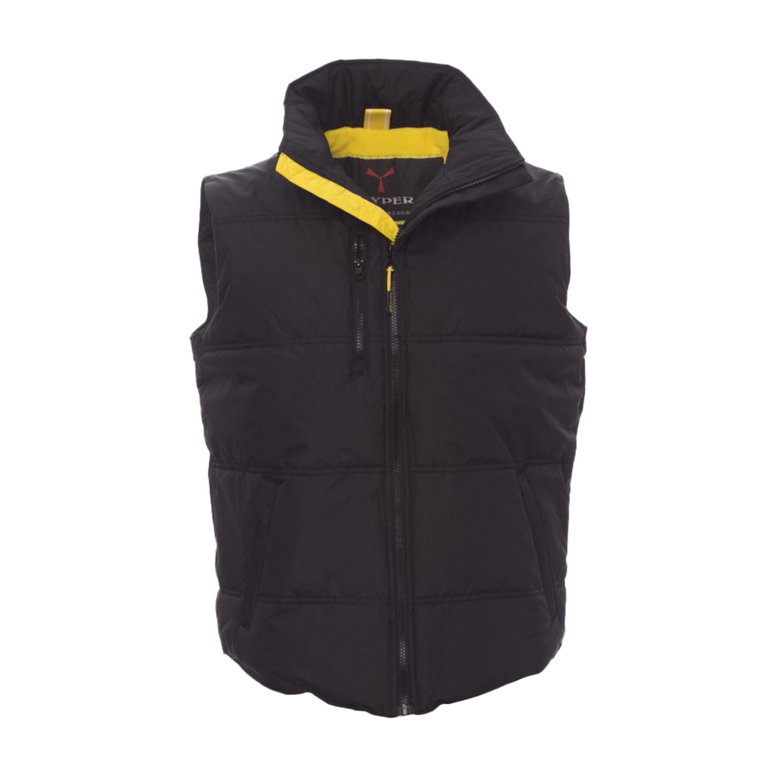 Gilet unisex con zip frontale da 8 mm in plastica e cursore in metallo. Dotato di due tasche laterali con chiusura a zip e una tasca al petto. Interno imbottito in micropile a contrasto per maggiore comfort termico.