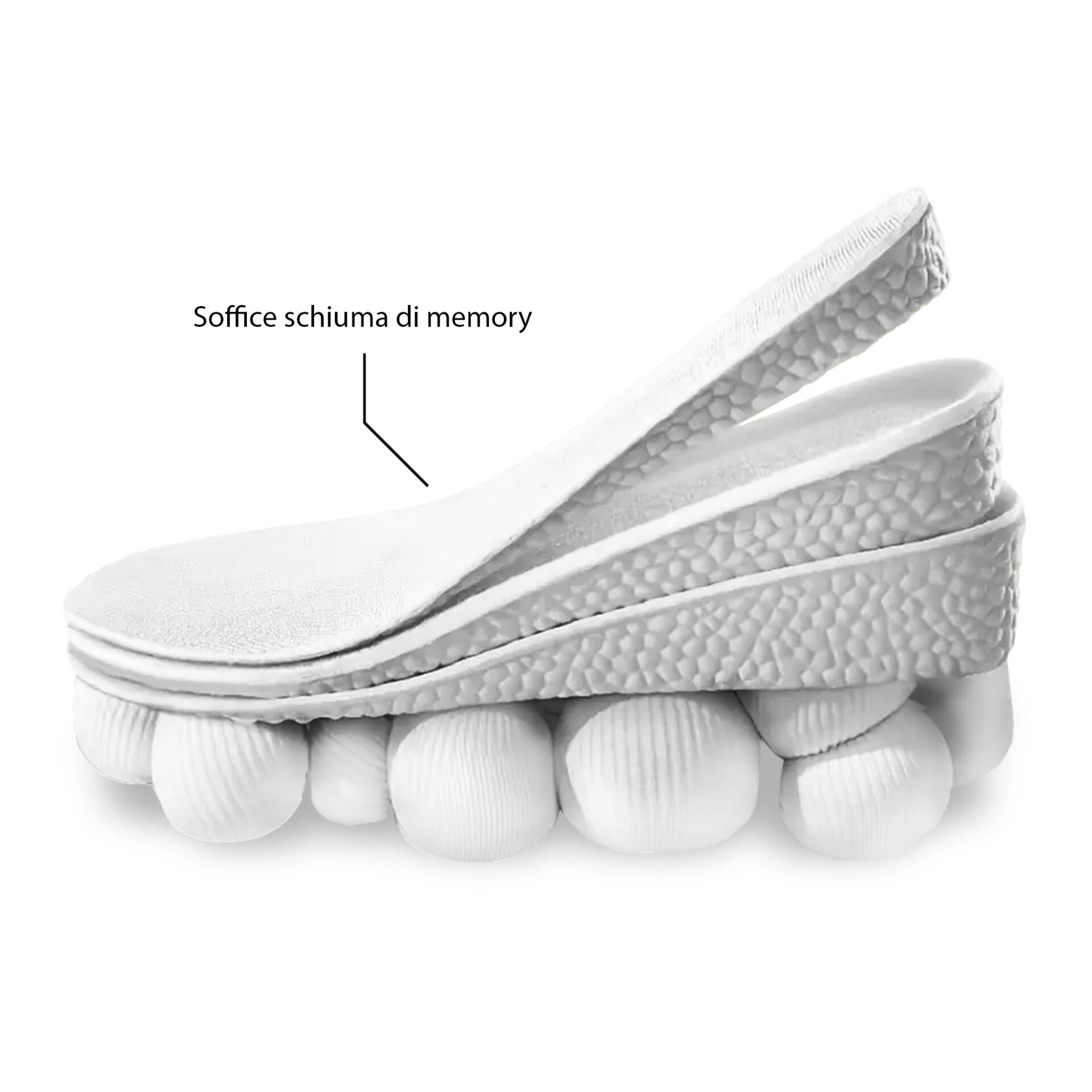 Solette sportive da lavoro e corsa in Memory Foam, pensate per offrire comfort e ammortizzazione ottimali durante tutta la giornata, sia in ambito professionale che sportivo.