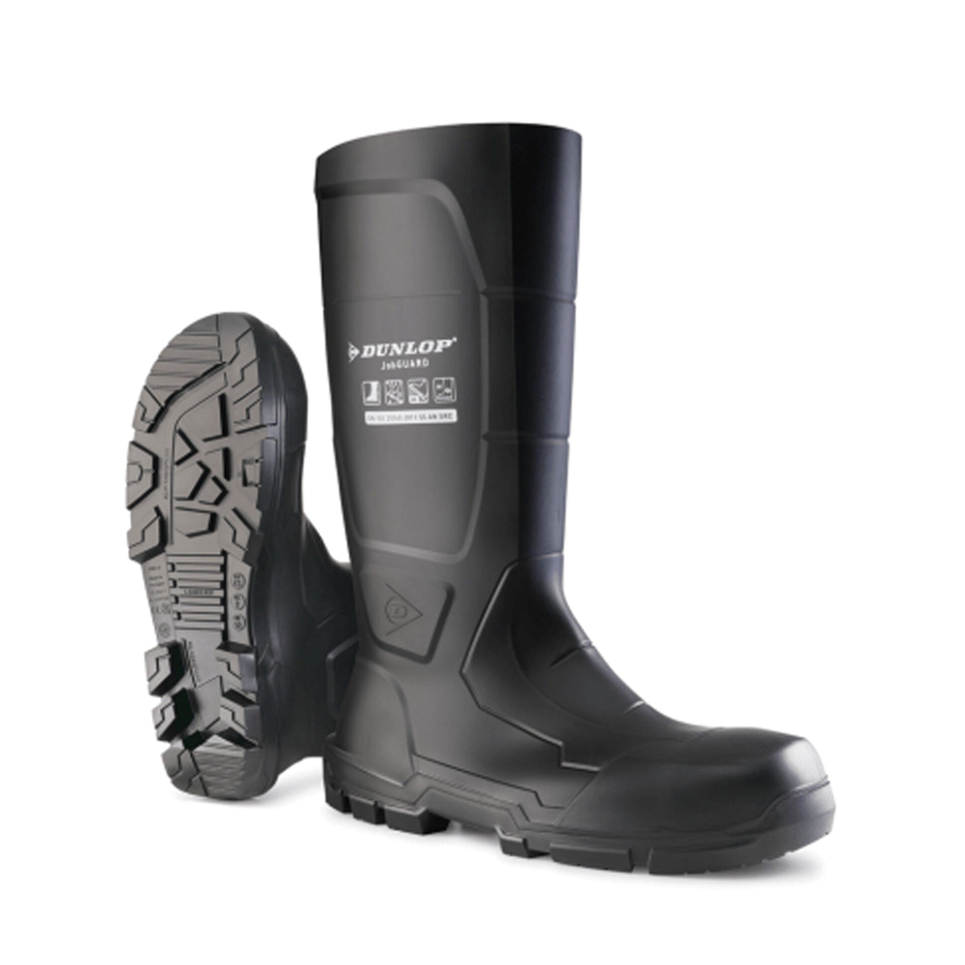 Stivali professionali Dunlop JobGUARD NA2HD01 S5 in Acifort®, ideali per ambienti pesanti come edilizia, industria chimica, agricoltura e logistica.