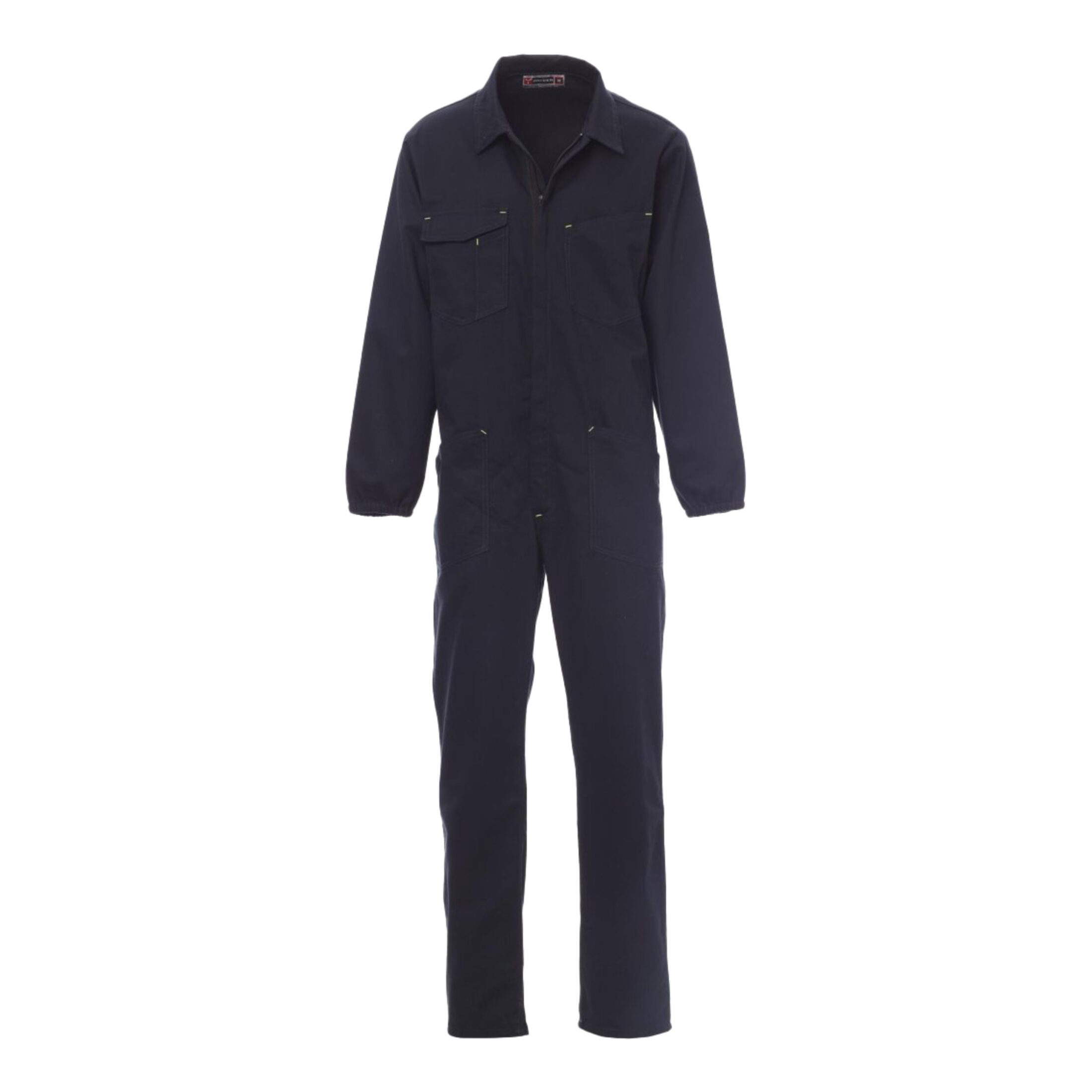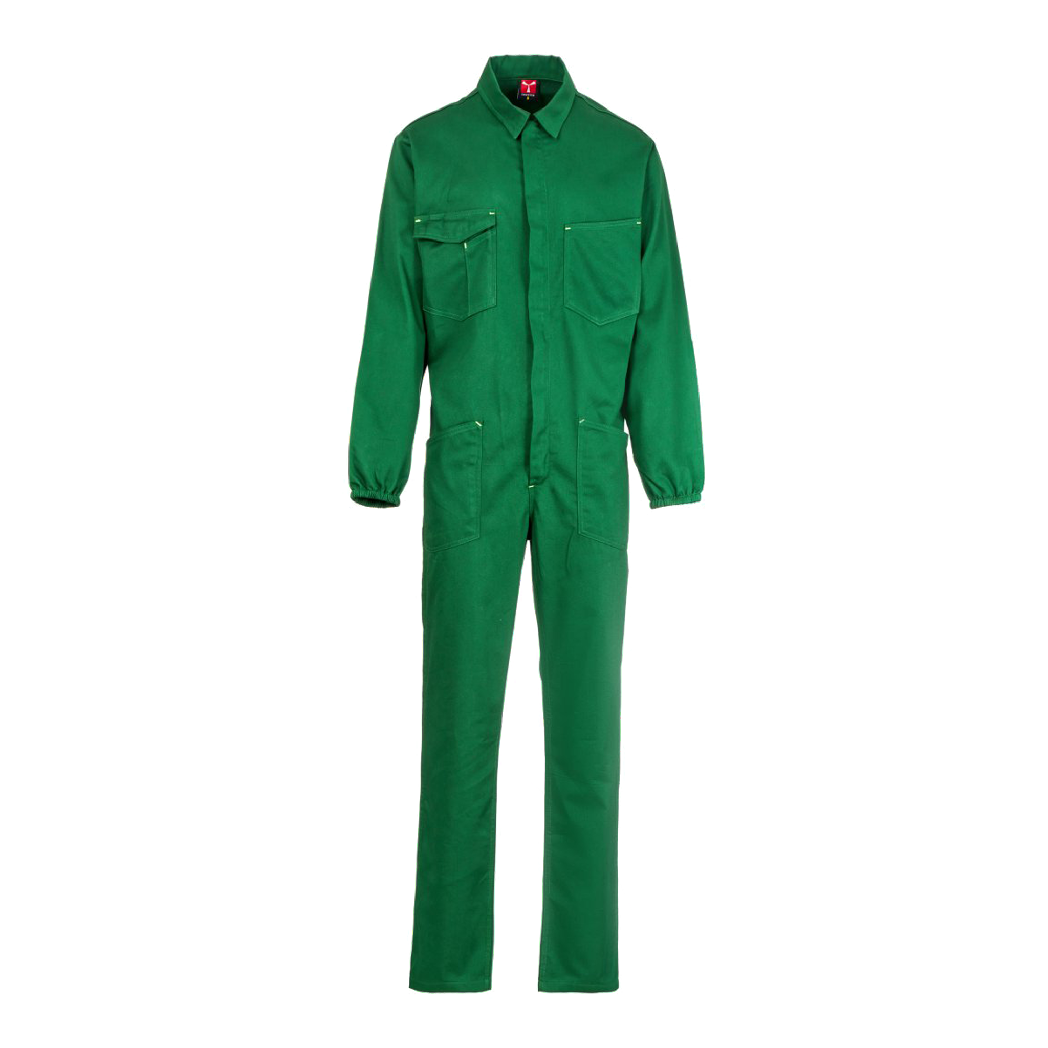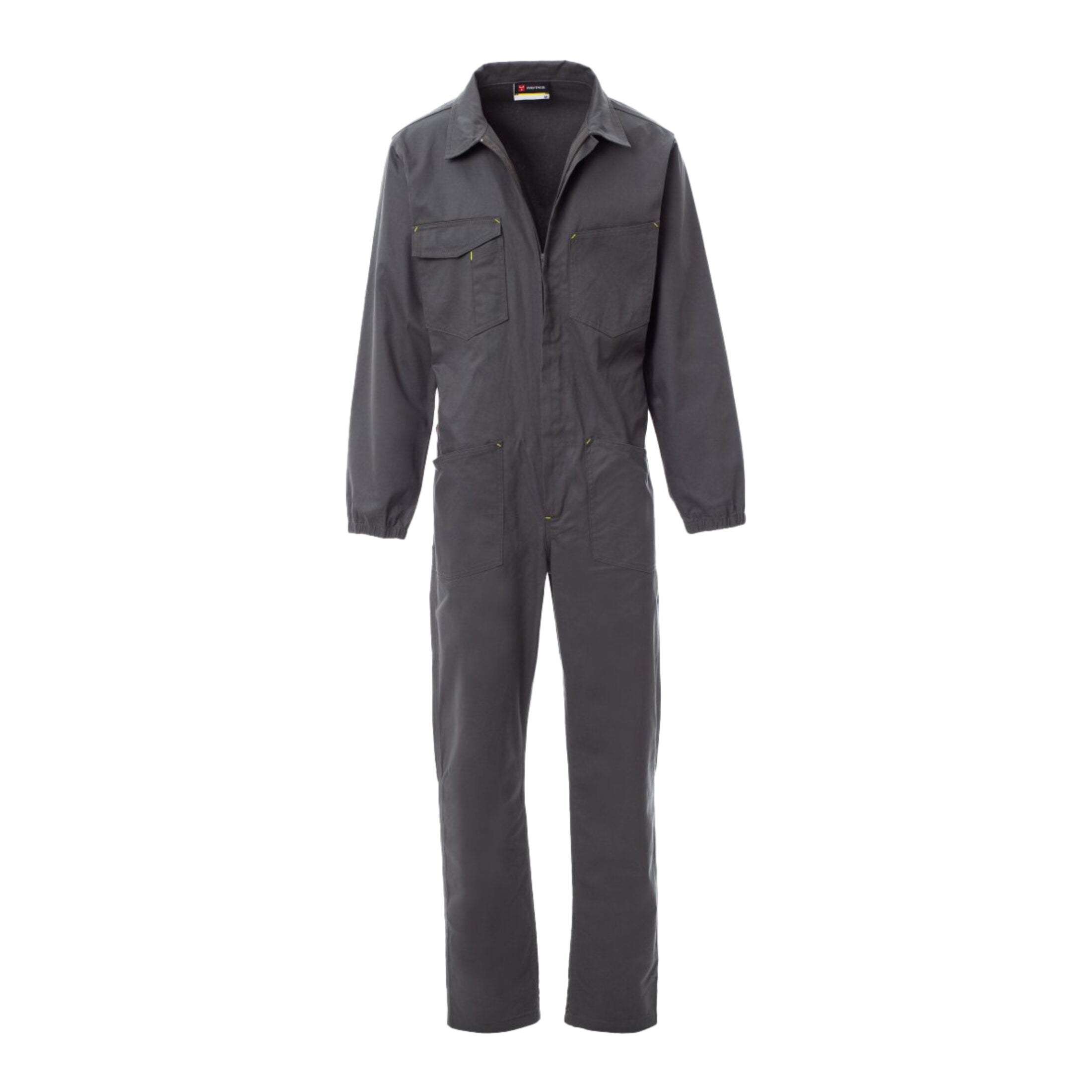 Tuta da lavoro unisex realizzata in 100% cotone, con chiusura centrale a doppio cursore coperta. Dotata di elastici ai polsi e nella parte posteriore della vita per un maggiore comfort. Le cuciture rinforzate su cavallo e interno gamba assicurano una lunga durata anche in condizioni di lavoro intense.